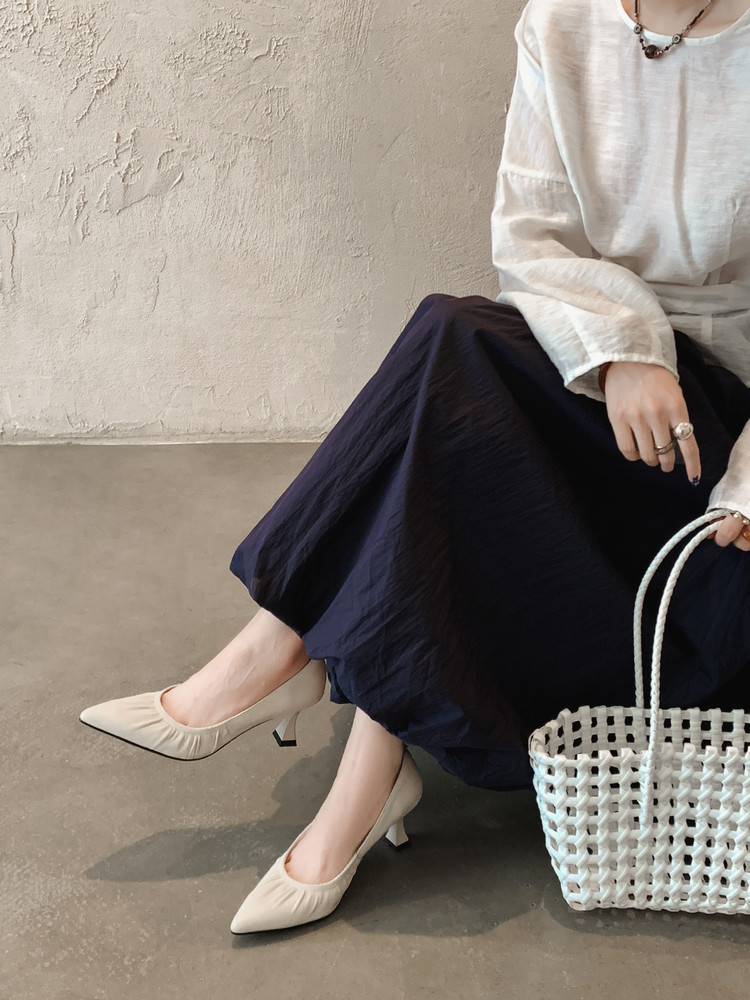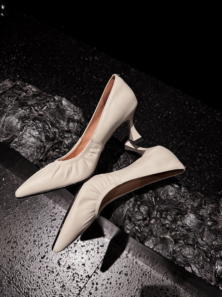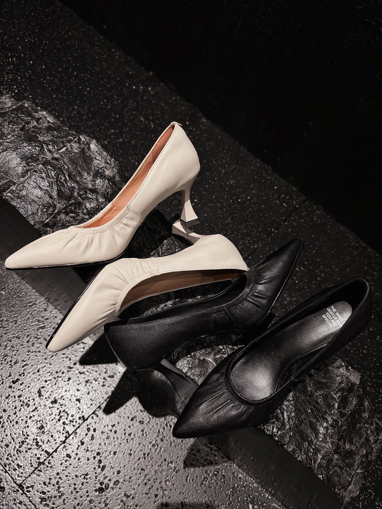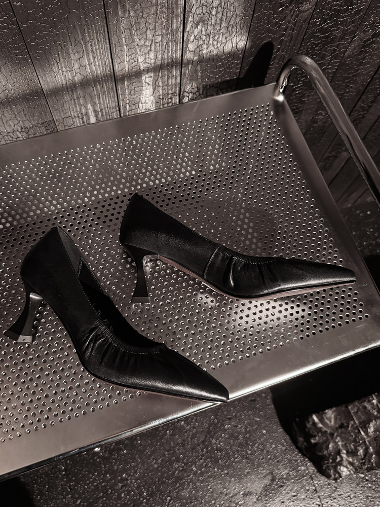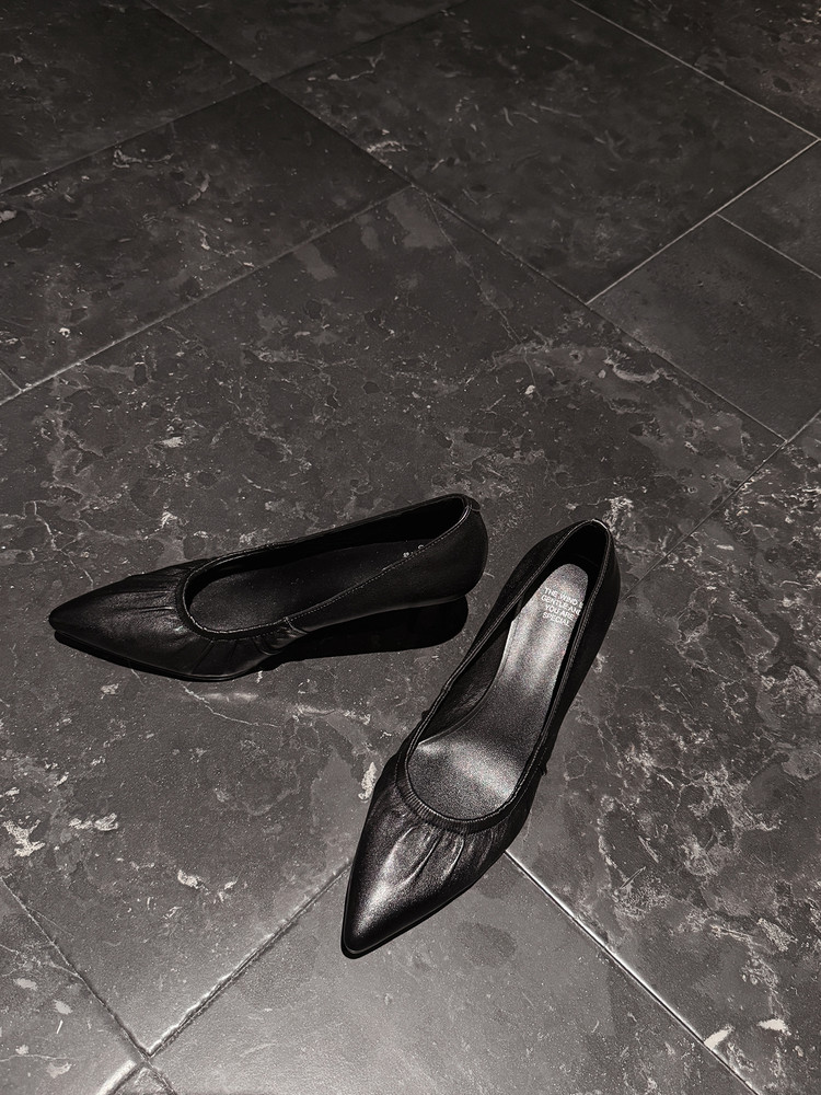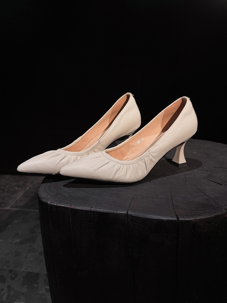 【预售5天】通勤细跟黑色工作鞋秋新款巨软牛皮尖头褶皱高跟鞋DYJ&CX7999-1