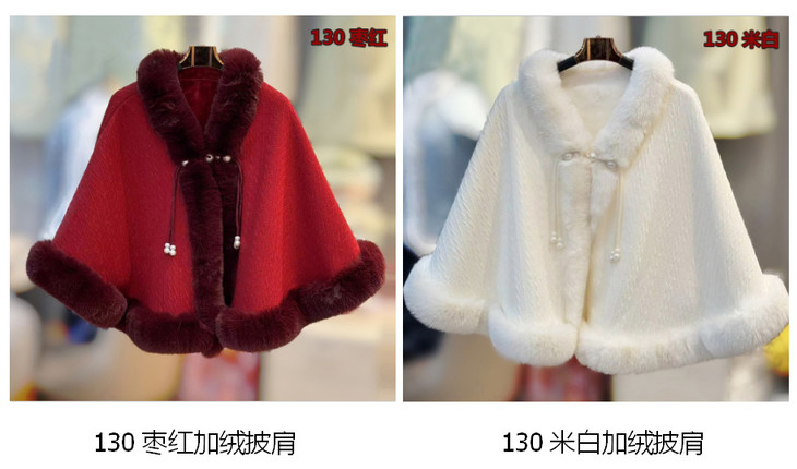 加绒加厚新款秋冬百搭披风外搭毛领保暖氛围毛披肩MLS130