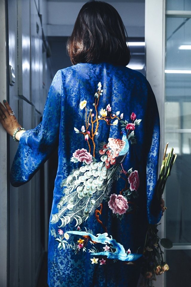 星币刺绣 香云纱蕾丝孔雀手绣刺绣外套