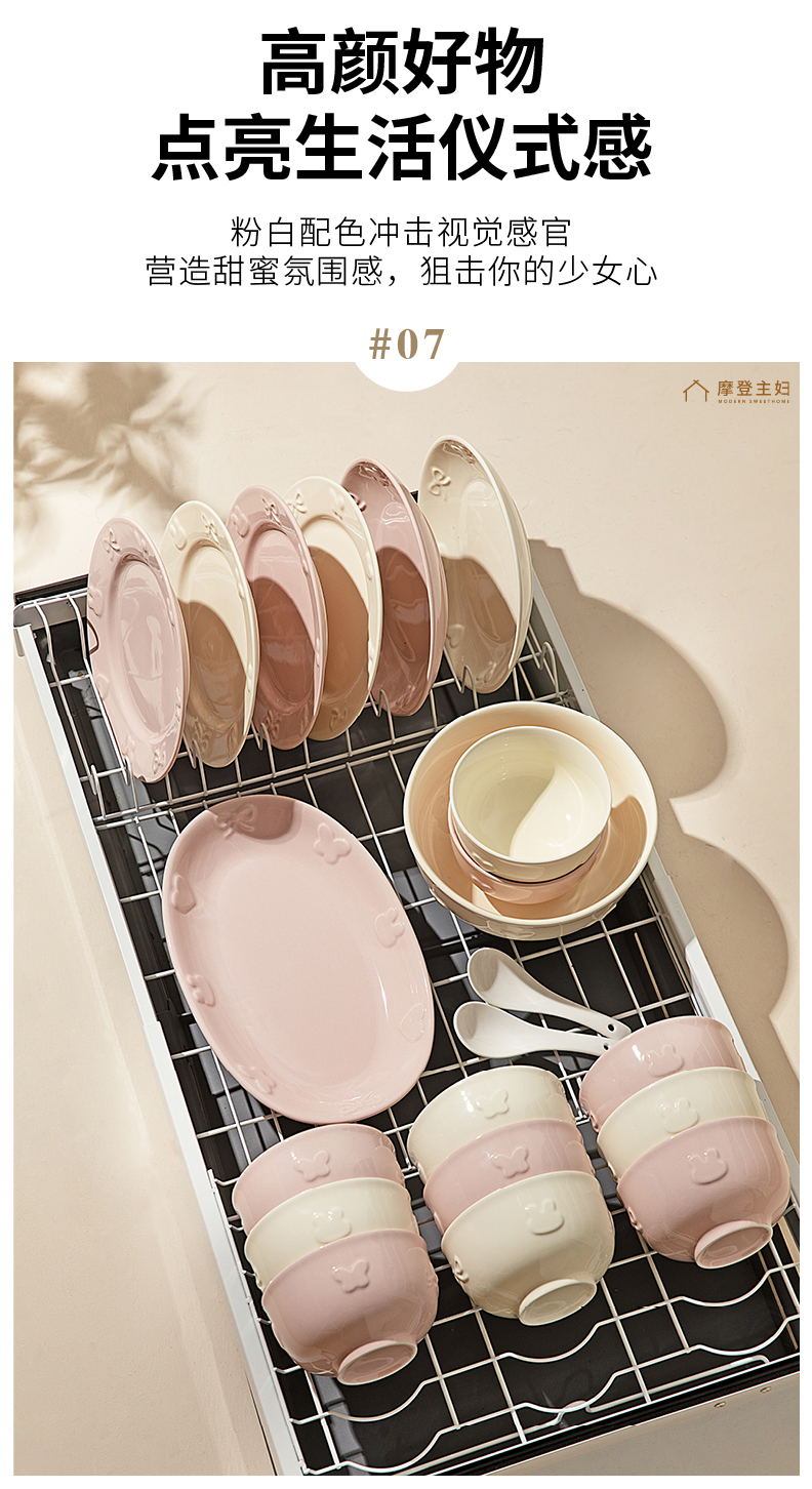 摩登主妇高颜值餐具碗碟家用2024新款碗具陶瓷米饭碗汤碗盘子菜盘