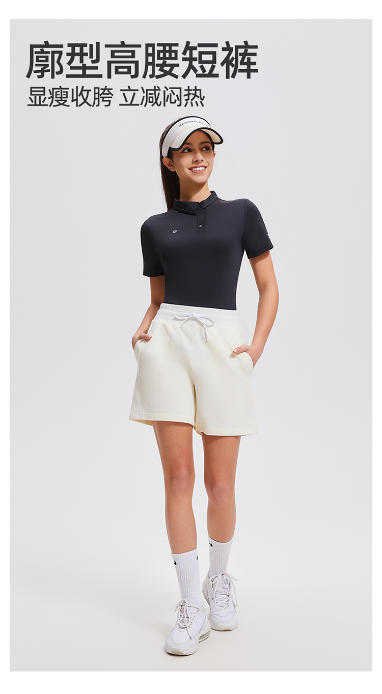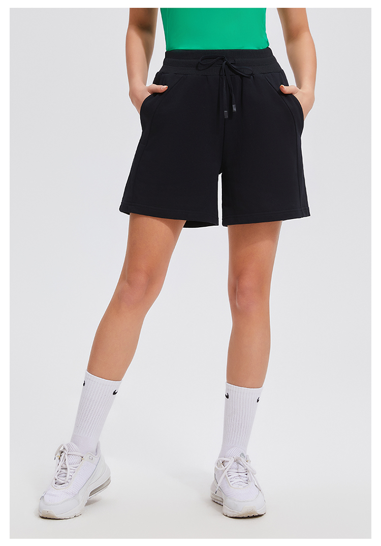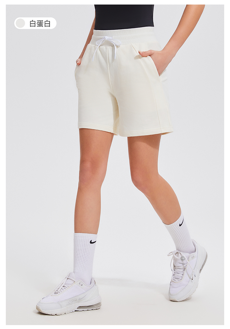男女同款五分裤新款抽绳跑步运动宽松休闲松紧腰口袋高腰短裤A字裤外穿