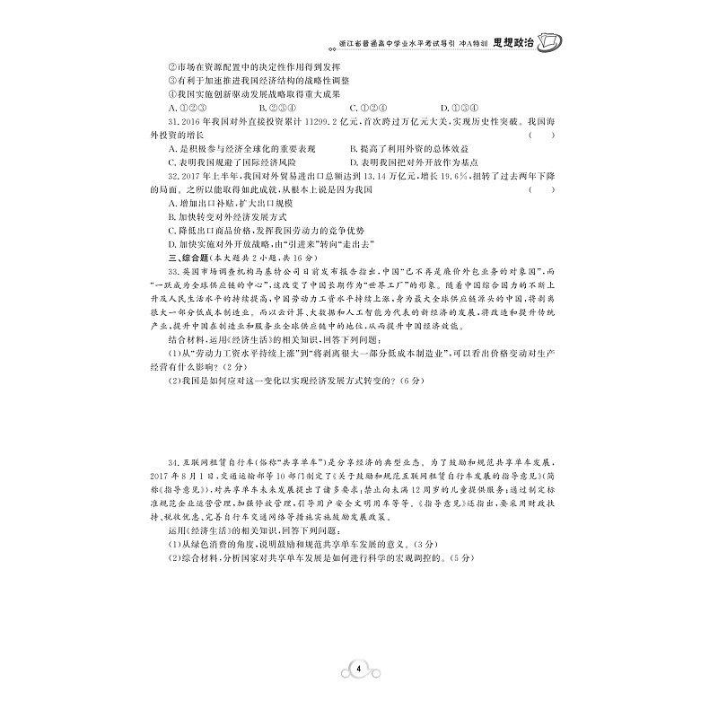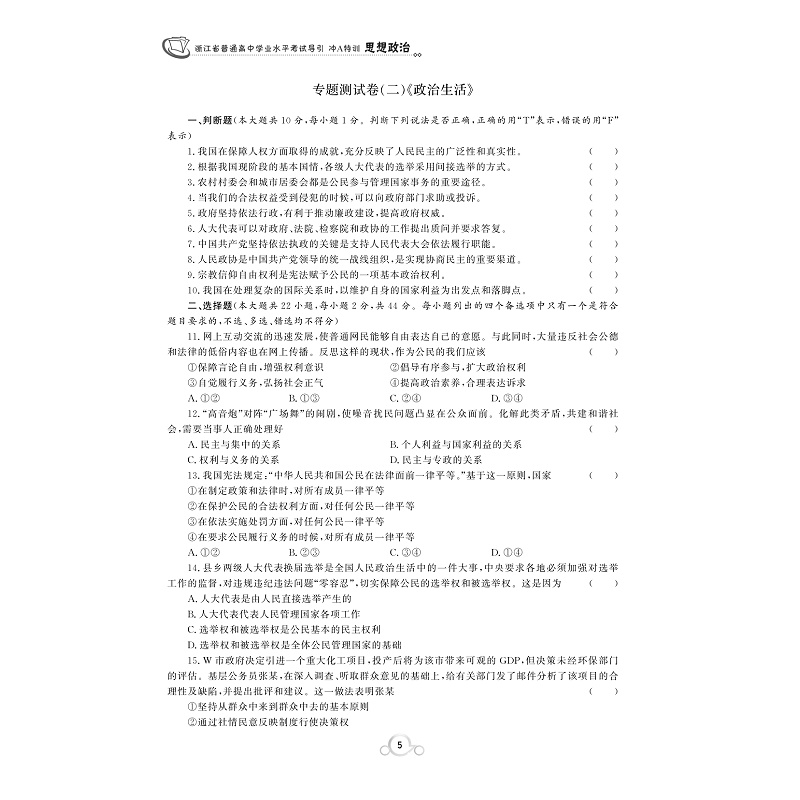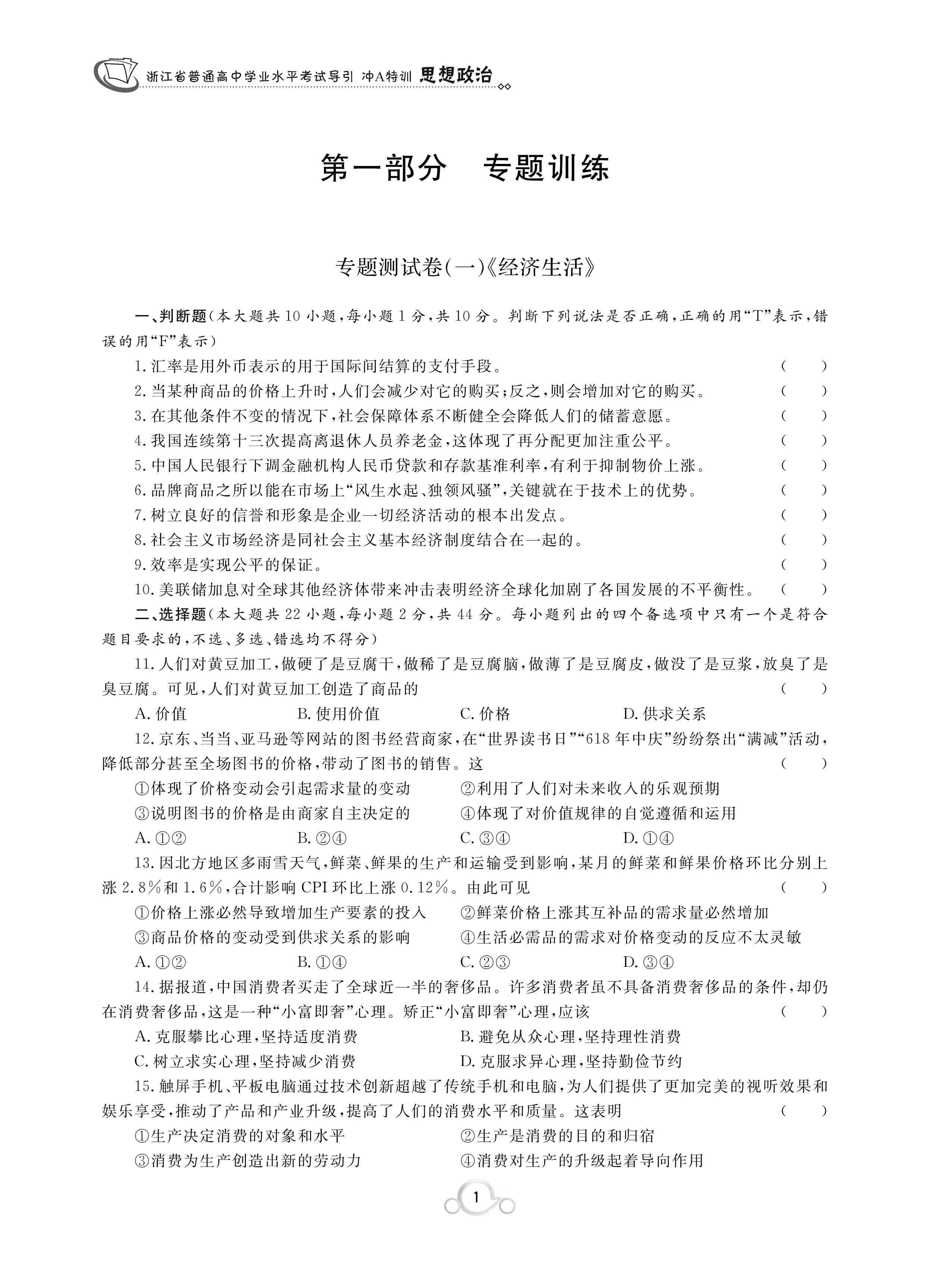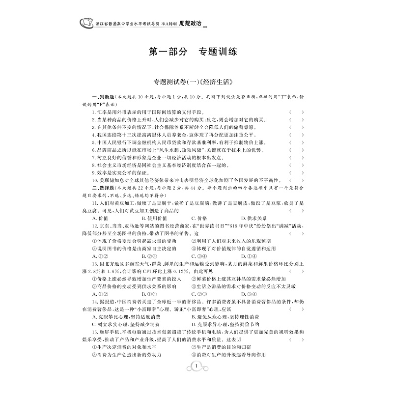 书名:浙江省普通高中学业水平考试导引 冲A特训 思想政治