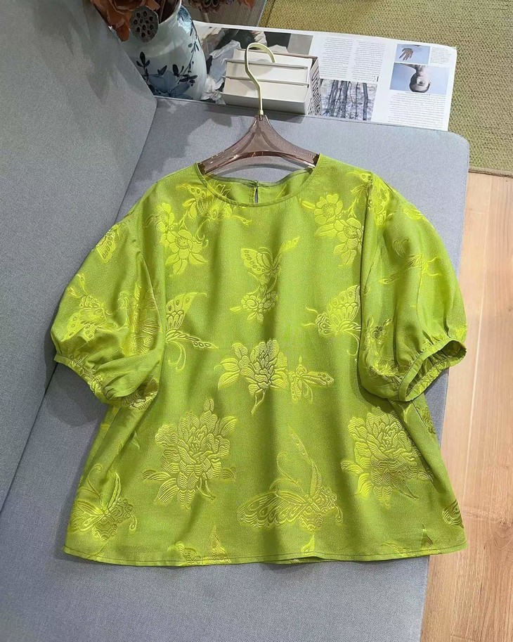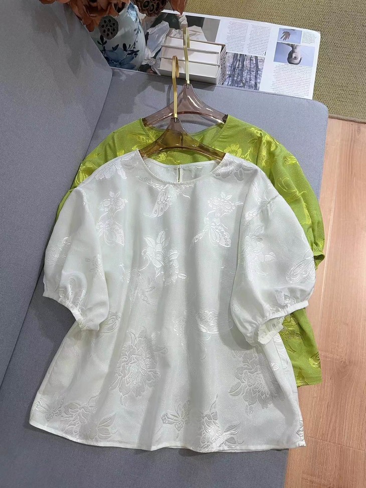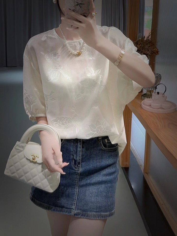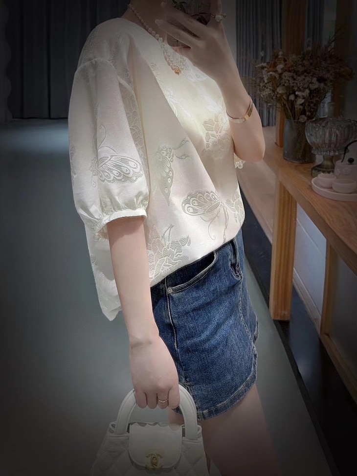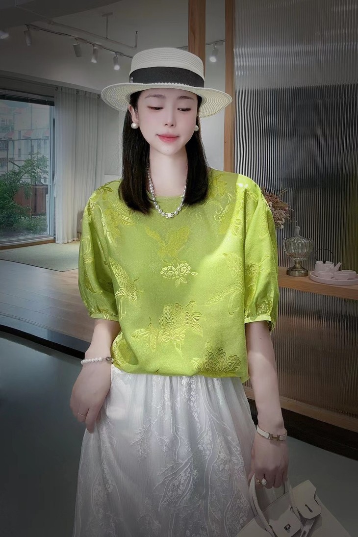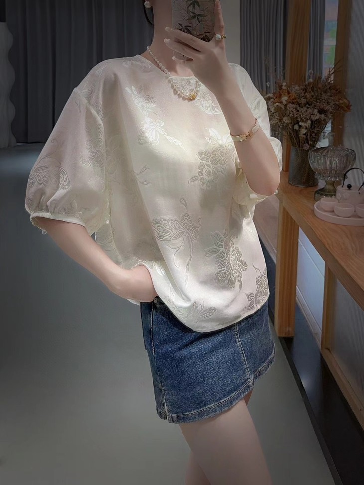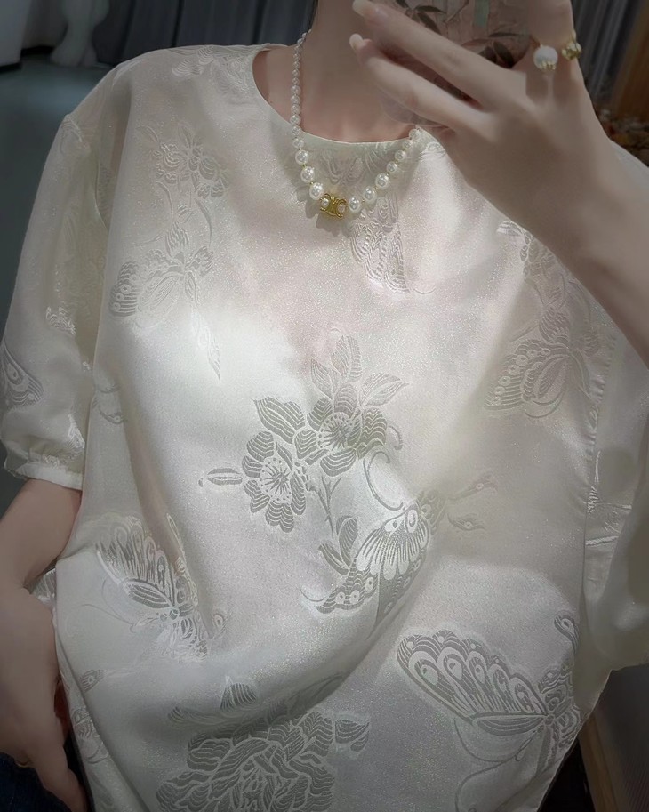 DNO新中式国风真丝剪花上衣轻奢高档女装夏季新款宽松透气高级感T恤 商品图0
