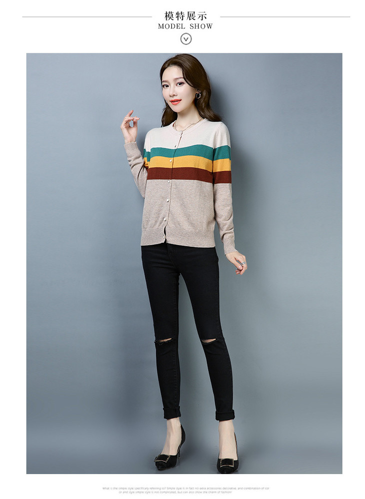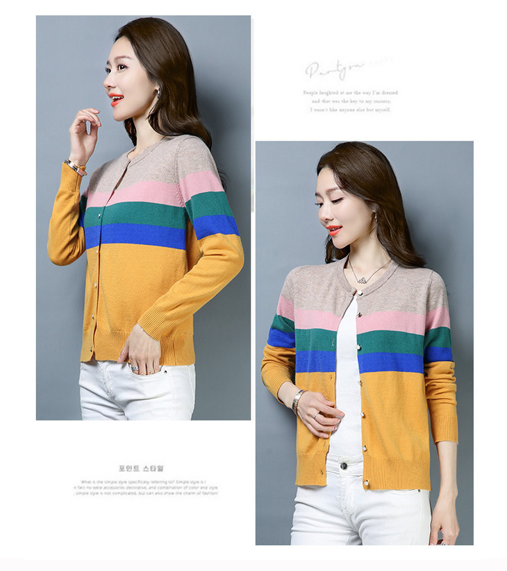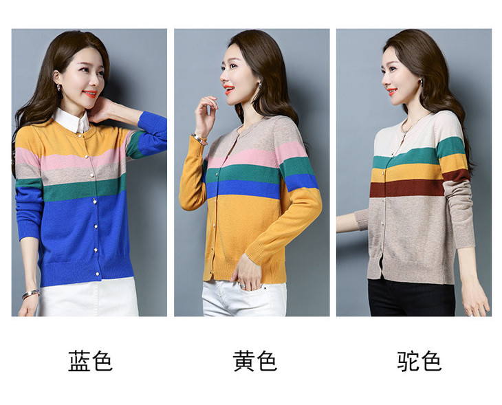 QY9731羊毛衫 女针织开衫气质淑女拼接短款长袖短款洋气淑女纯羊毛春秋