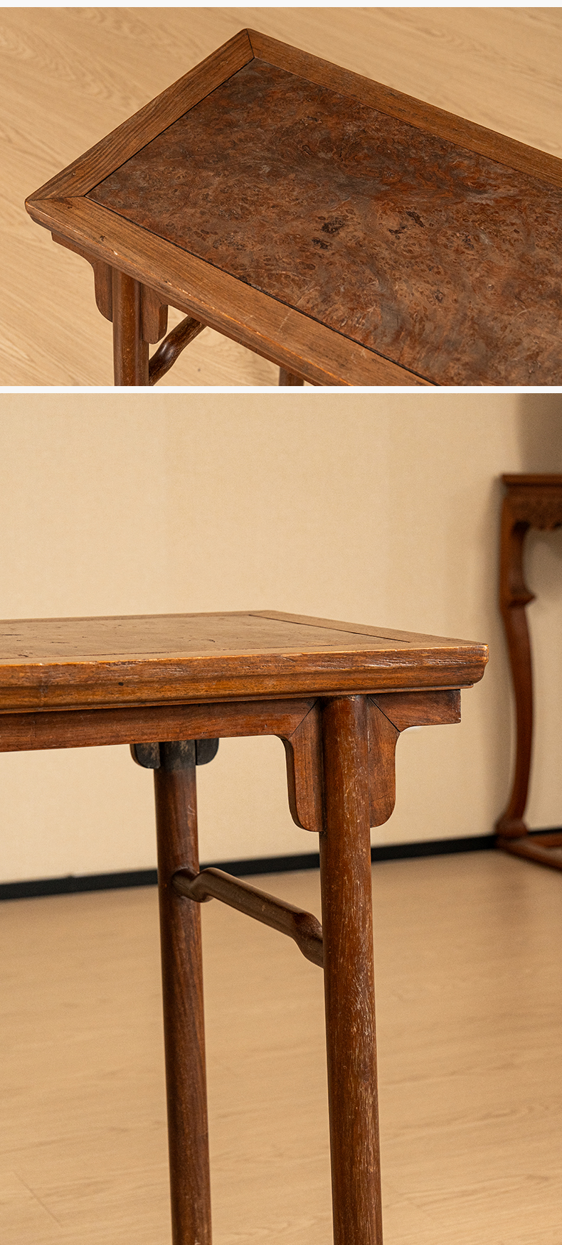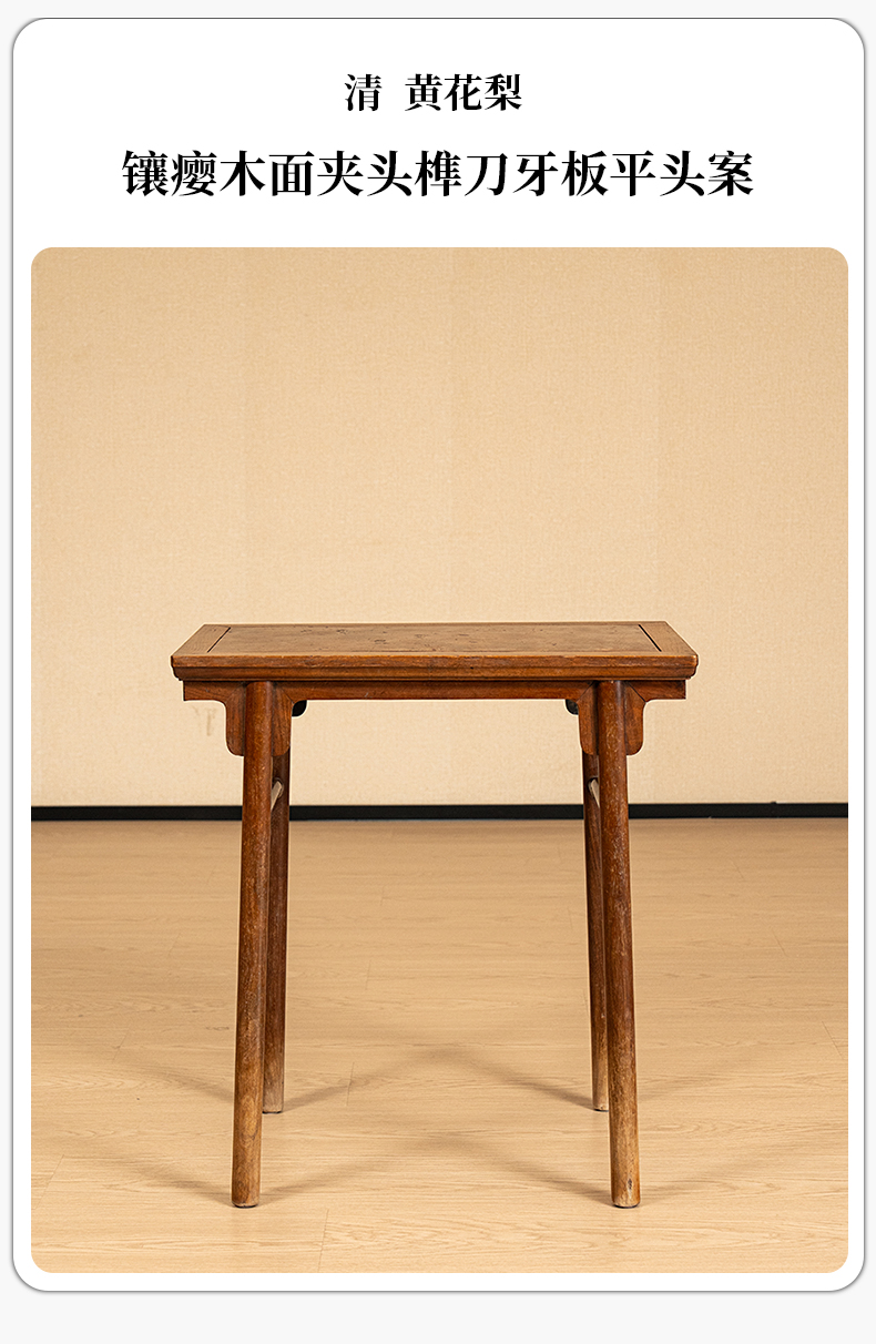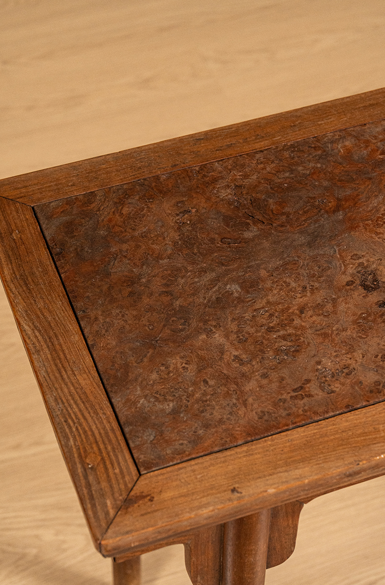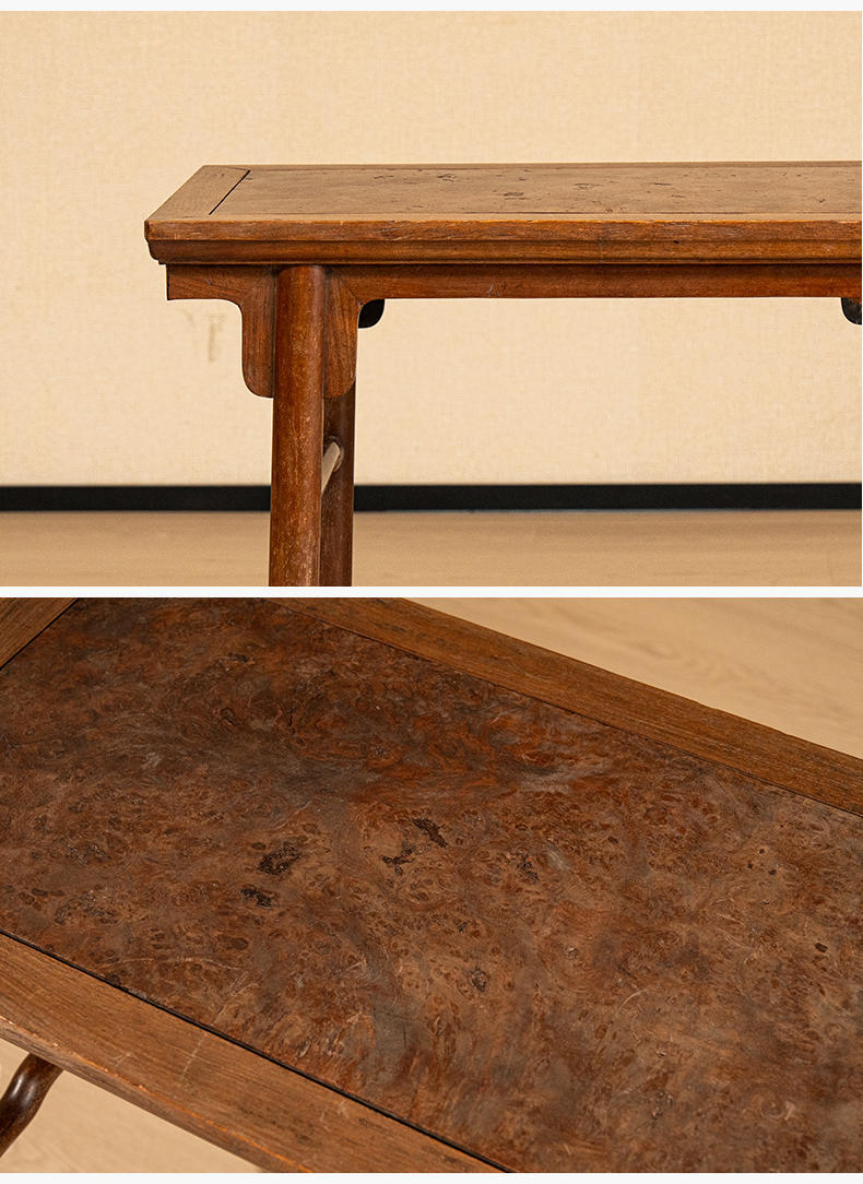 清 黄花梨镶瘿木面夹头榫刀牙板平头案