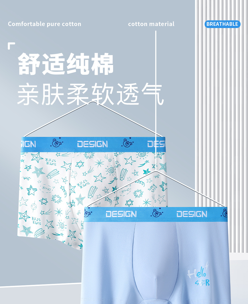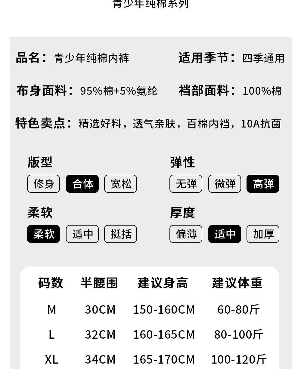 【舒适纯棉,亲肤柔软透气】青少年内裤 男童发育期 高中生初中学生 大童男生A类平角内裤-QQ