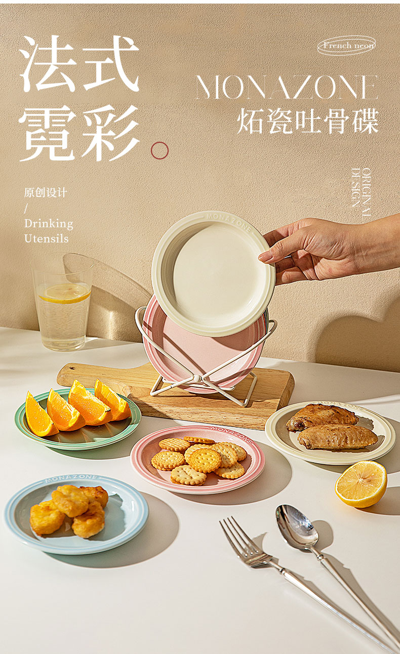 摩登主妇MONAZONE骨碟吐骨头盘碟家用食品级陶瓷盘子餐桌垃圾渣盘