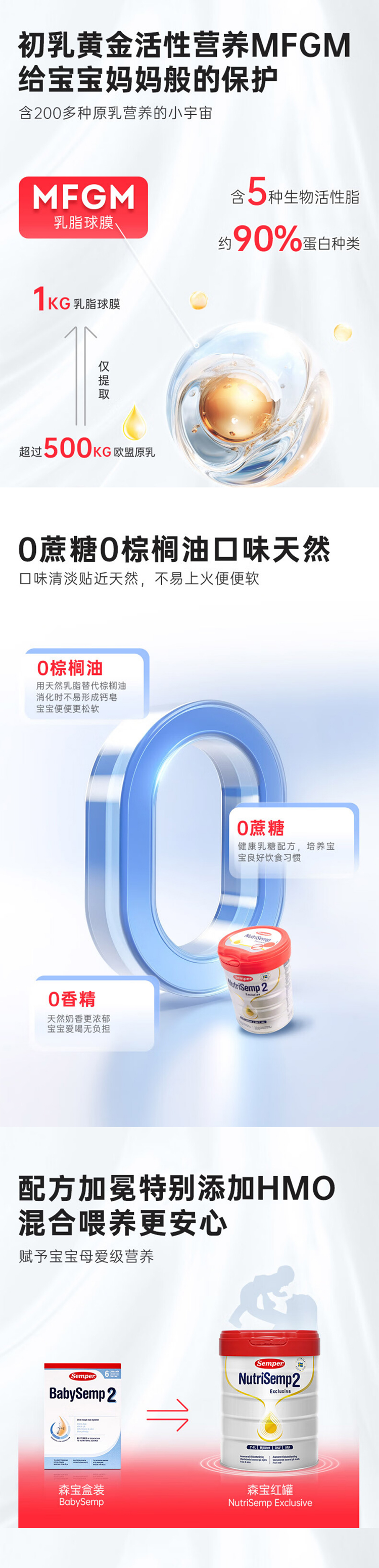 森宝(Semper)红罐白金版 婴儿配方奶粉2段(6-12个月) 800g