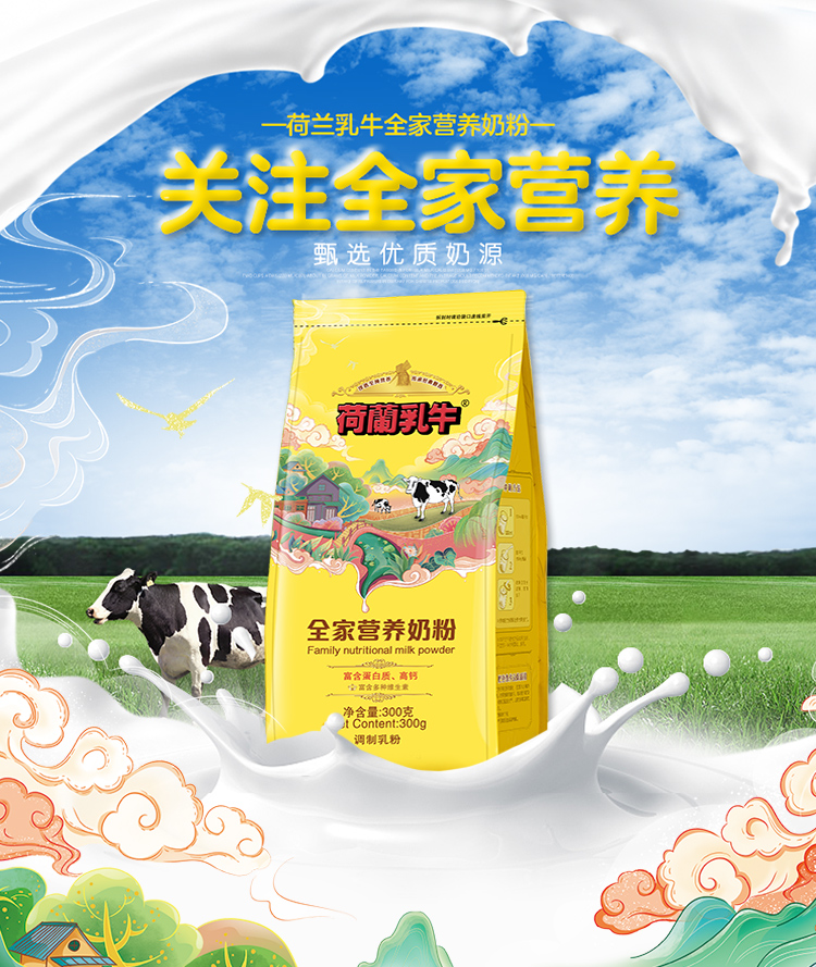 荷兰乳牛全家营养奶粉300g袋装 2025年4月产