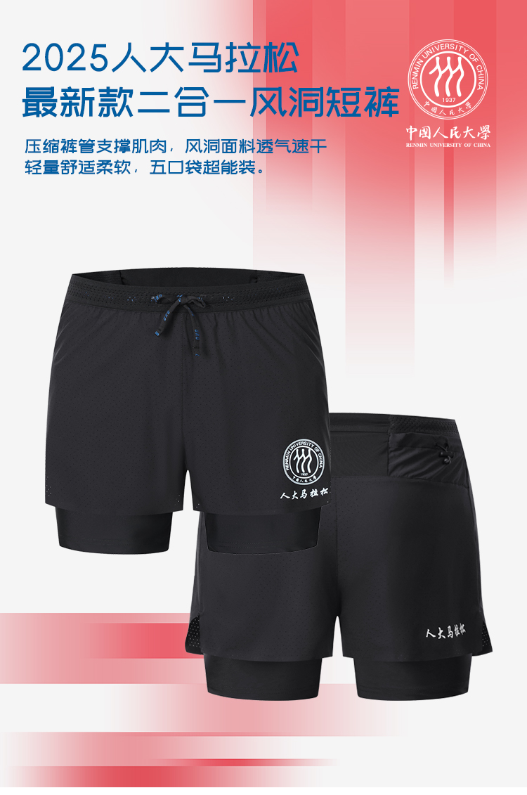 现货发售 2025人大马拉松最新款二合一风洞短裤 定制类产品,非质量问题,不退不换,敬请谅解!