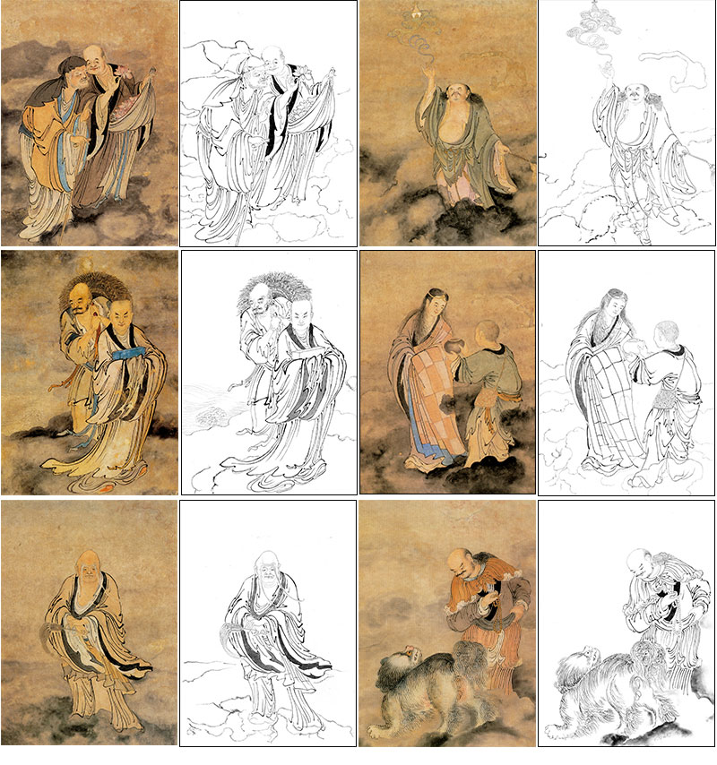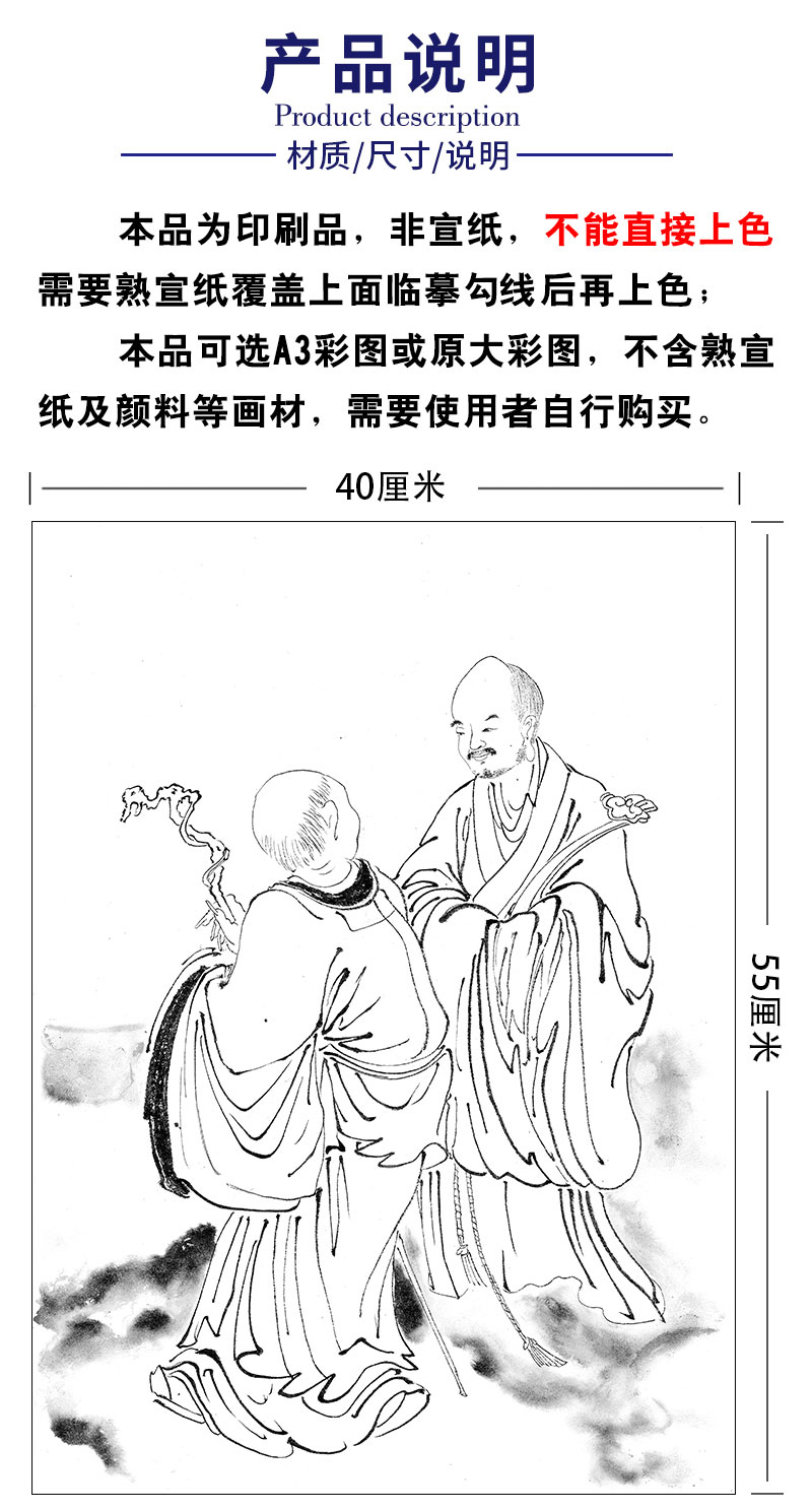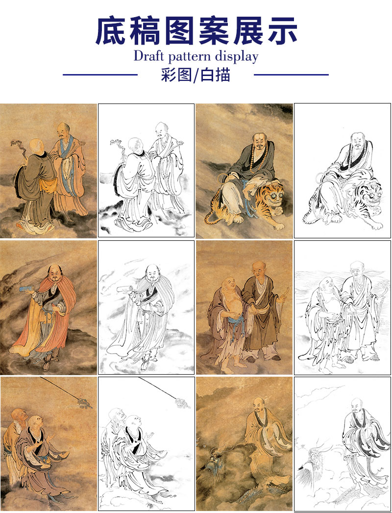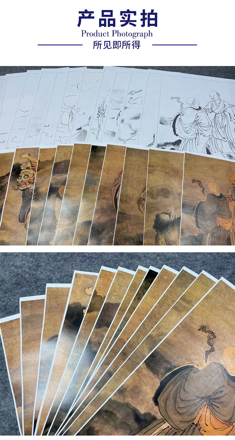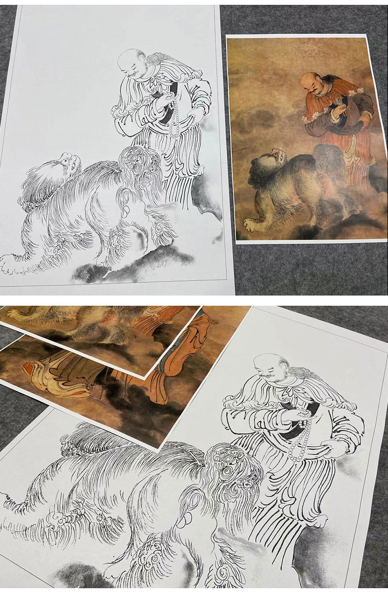 工笔传统人物画白描底稿郑重十八应真图册小品一套十二幅册页初学者尺寸40*55厘米MT25