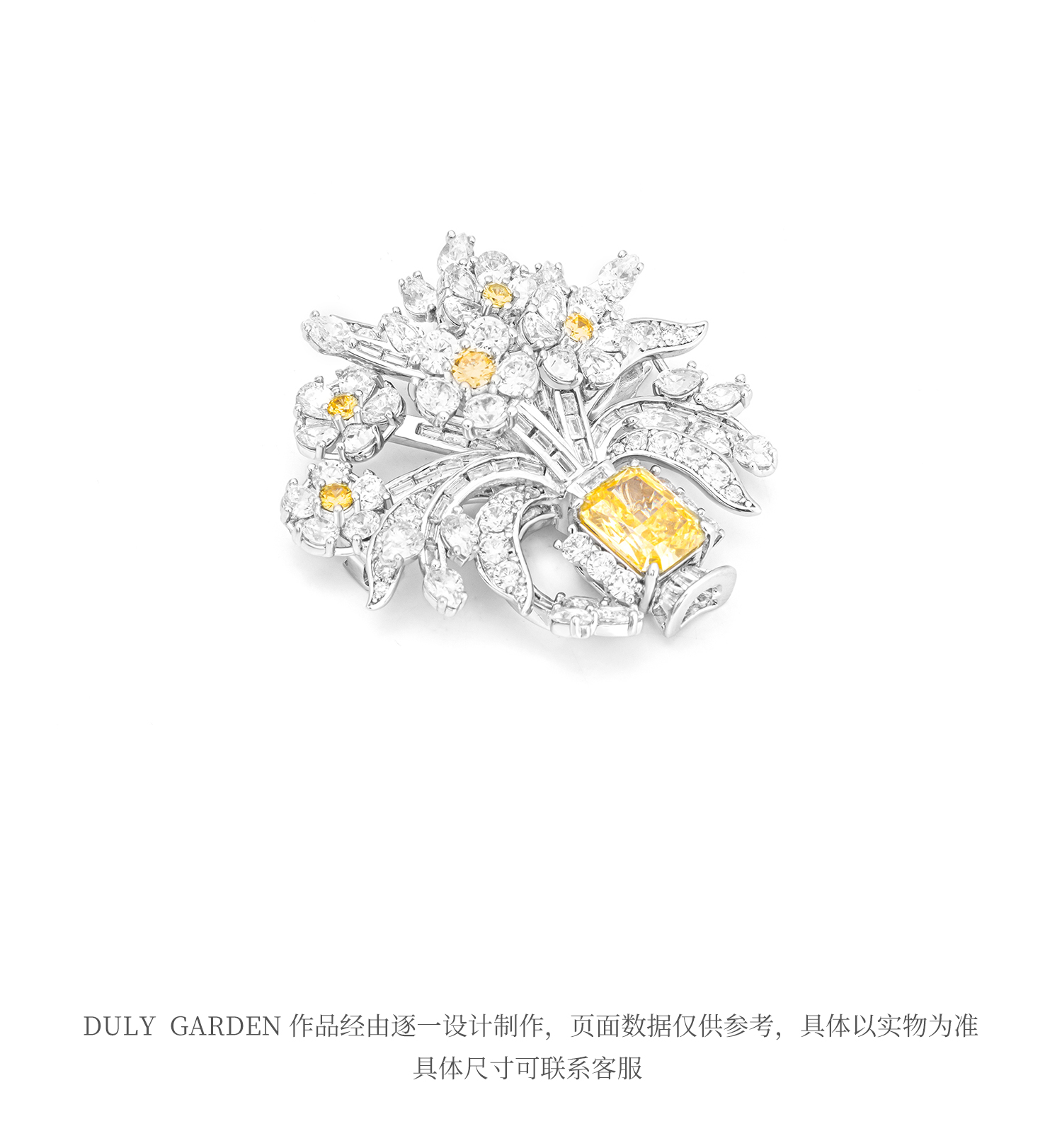 杜丽花园DULY GARDEN 法国高端设计胸针品牌黄色雏菊花瓶礼品配饰 11315ZW
