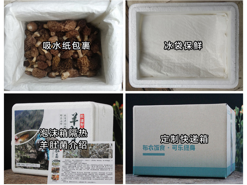 羊肚菌采摘回来当天晚上运到成都,冷藏储存。发货时羊肚菌吸水纸包裹,冰袋保鲜,泡沫箱隔热。顺丰空运送到大家手上,24-48小时冷链直达。