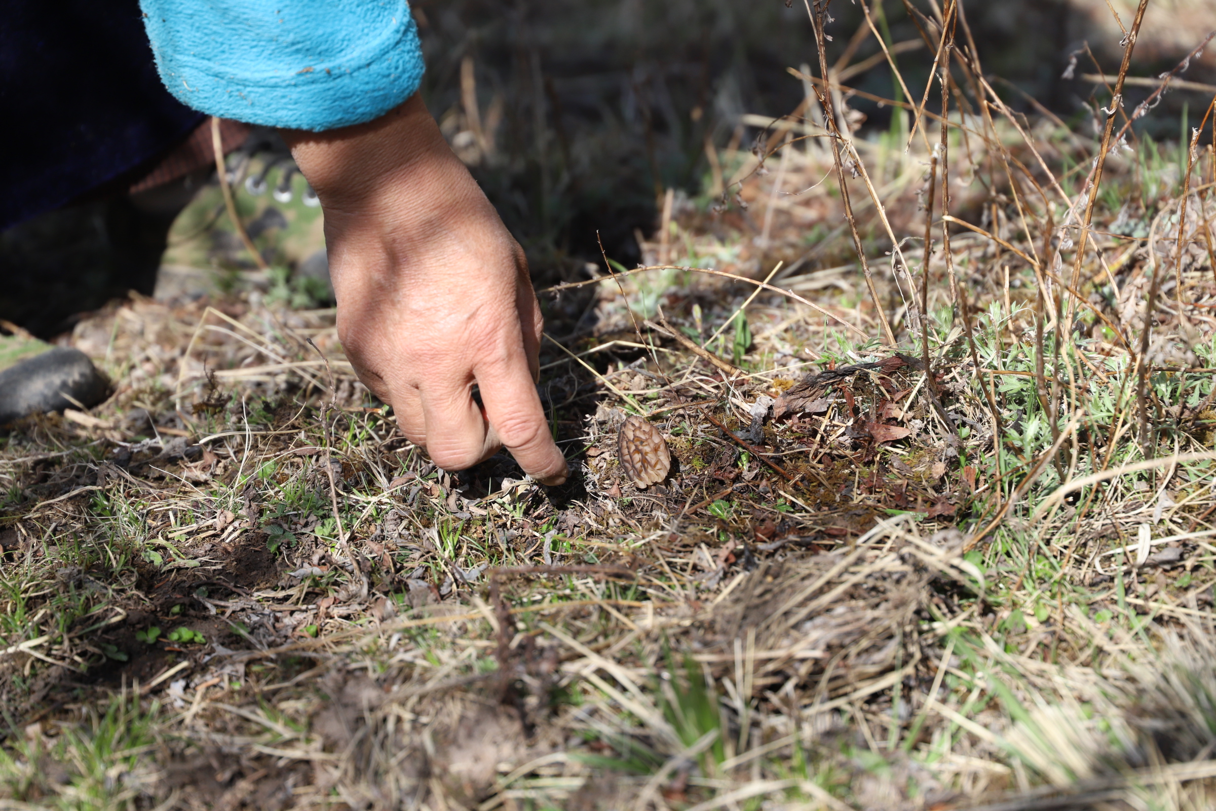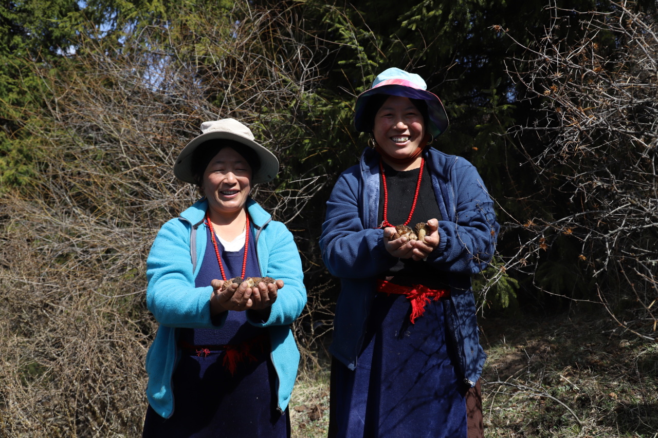 卓玛姐妹是在付永军的组织下采集羊肚菌的藏民,两姐妹在这片山里已经采摘羊肚菌23年了,产量最好的5-6月,两人一天也只能采集到2-3斤野生羊肚菌,平均每人每天只可采1斤~1斤半。
