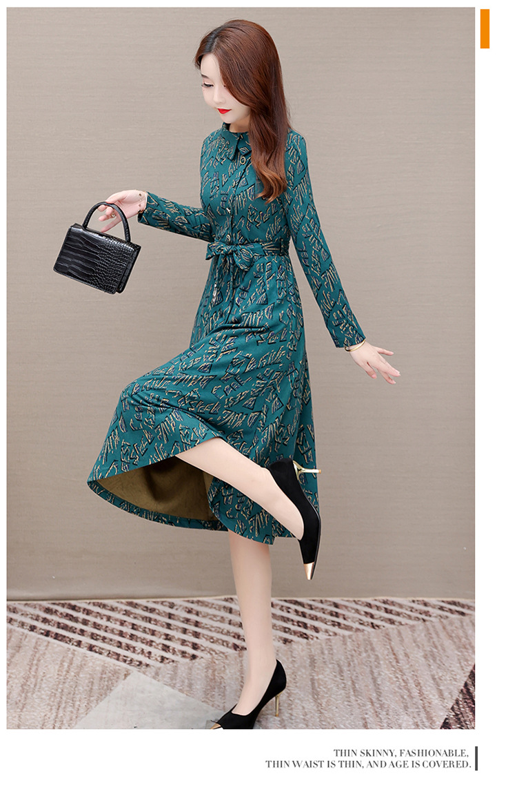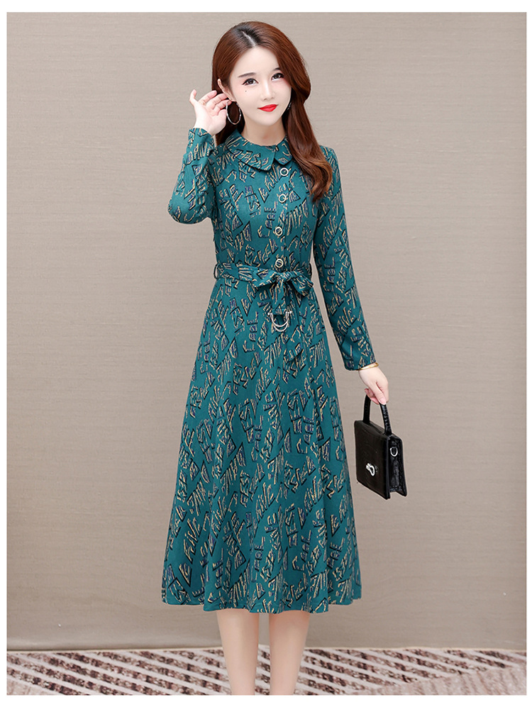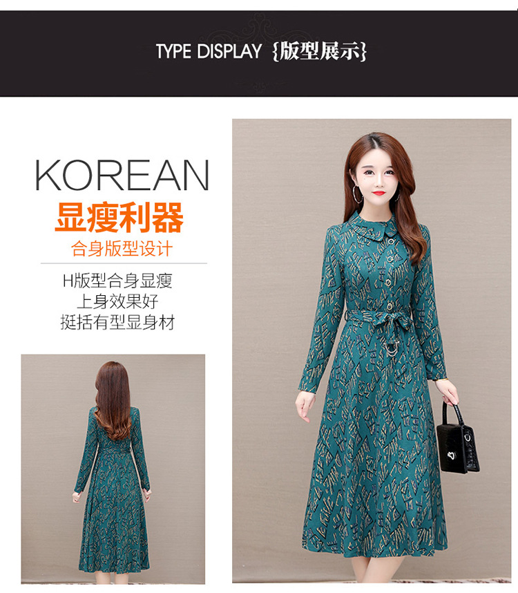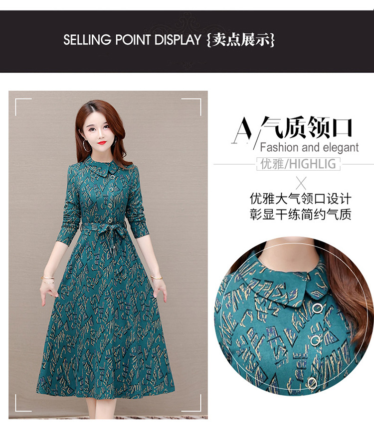 QYM 5A25-Y连衣裙收腰中长款字母花A字裙 商品图4