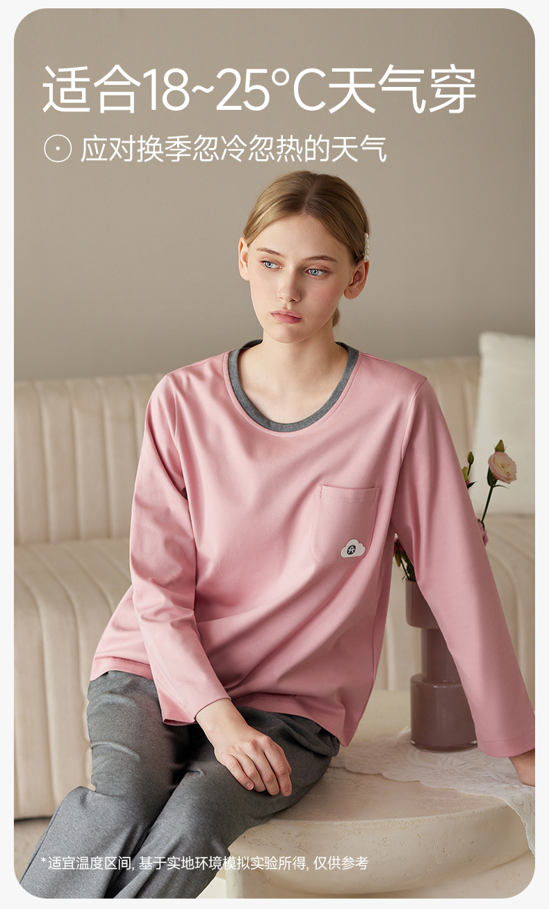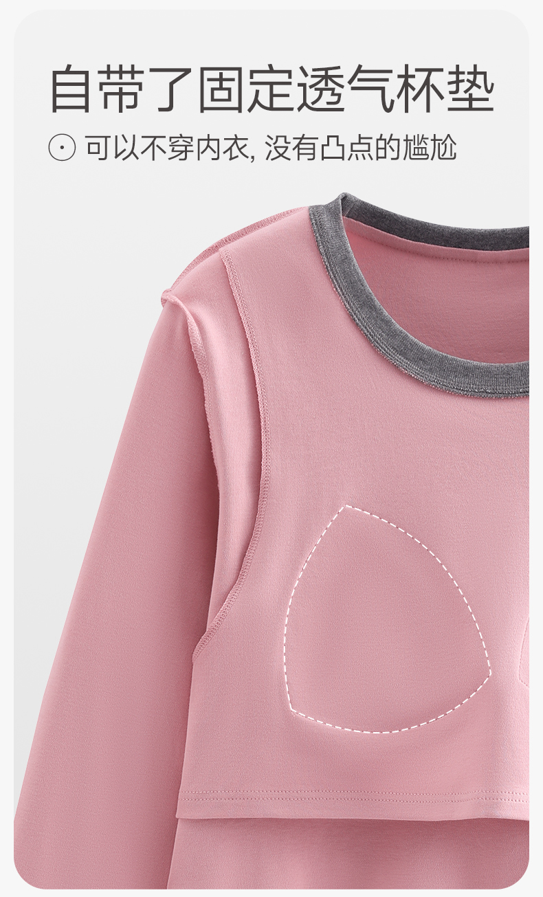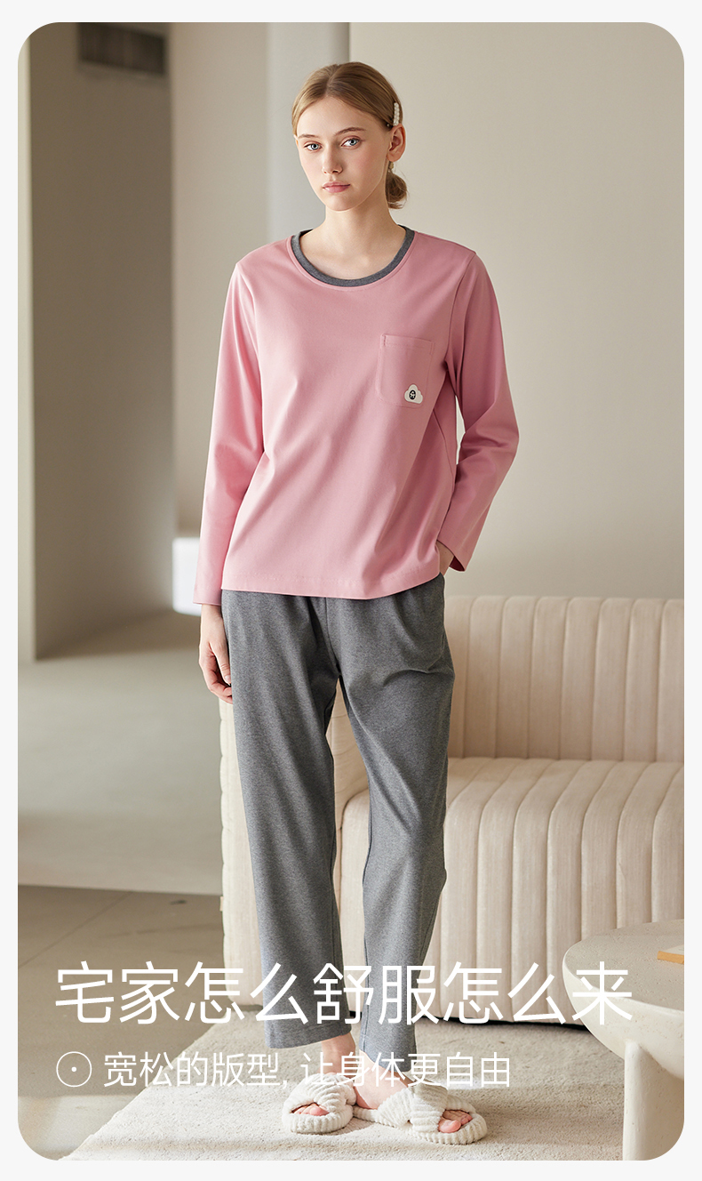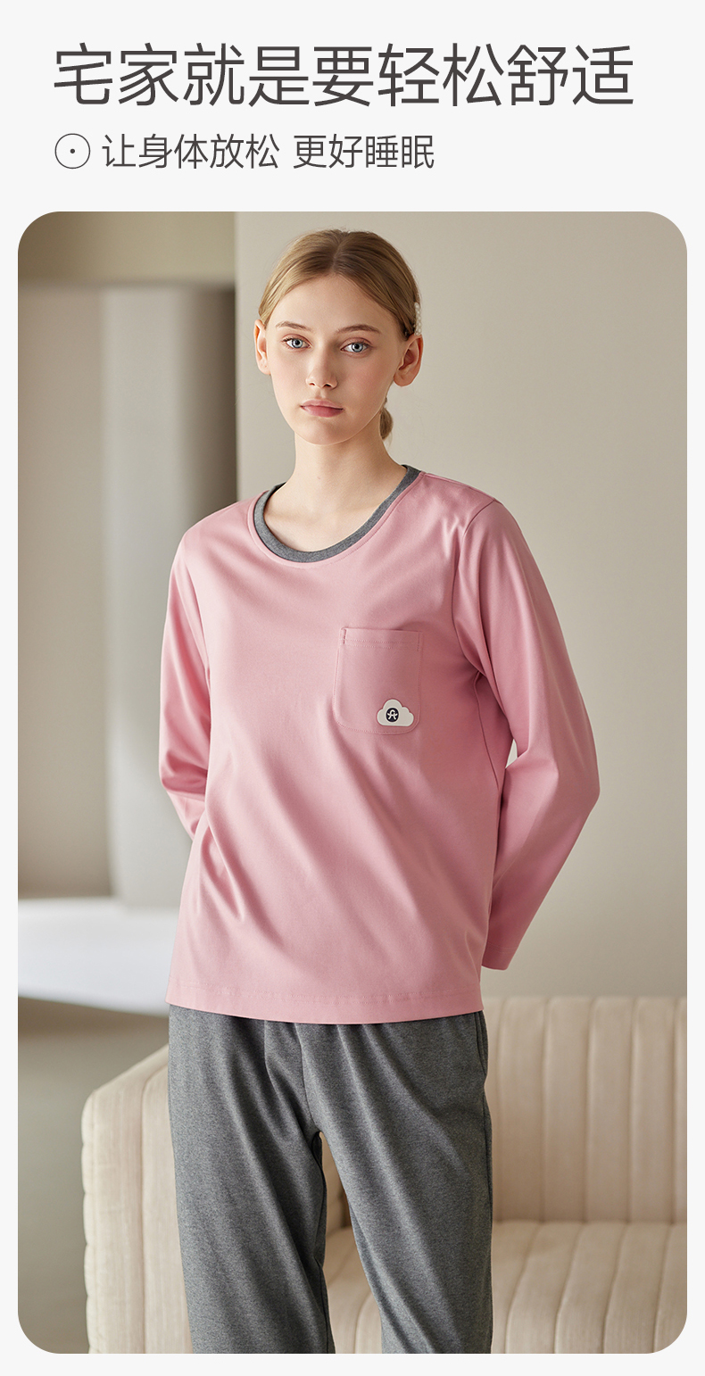 芬腾防凸点女士睡衣春秋季带胸垫纯棉长袖套装休闲加大码家居服