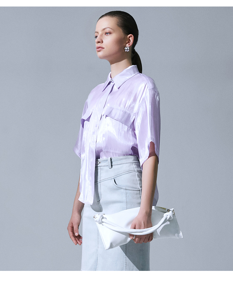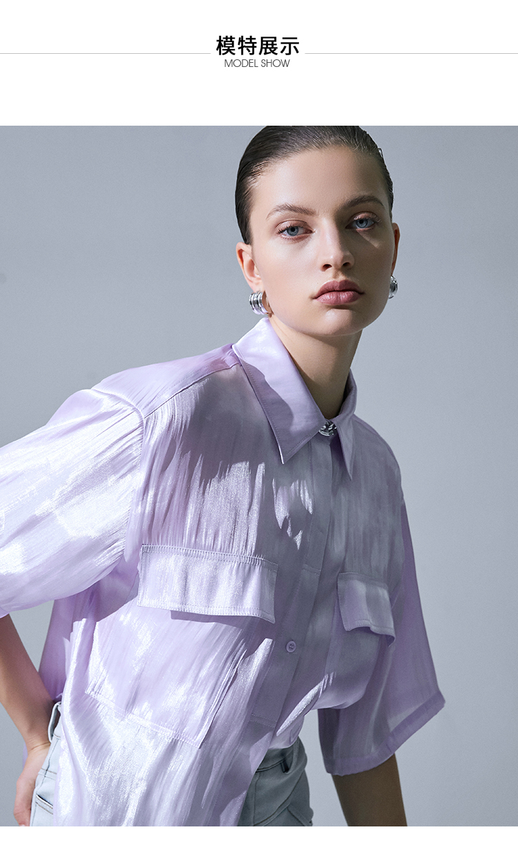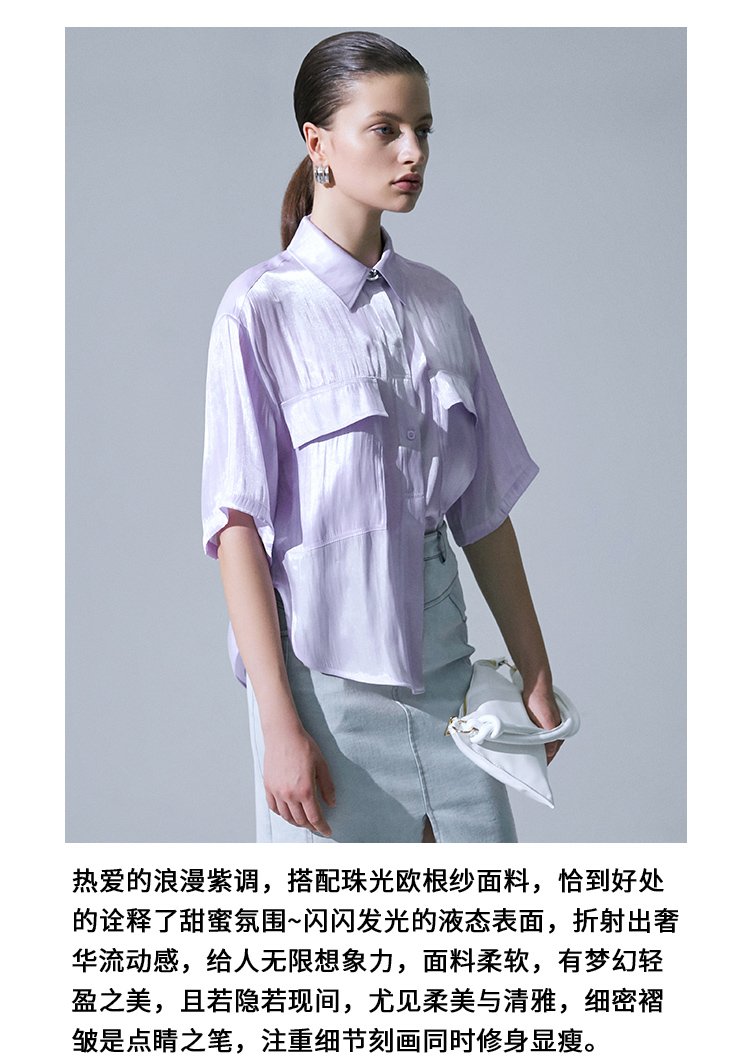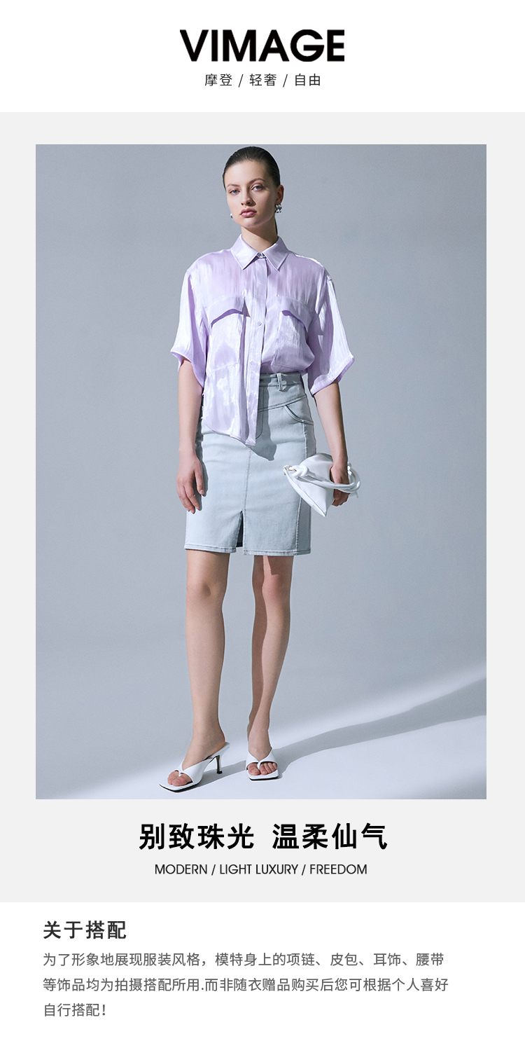 VIMAGE纬漫纪夏季新品纯色气质雪纺衬衫衬衣V1509116