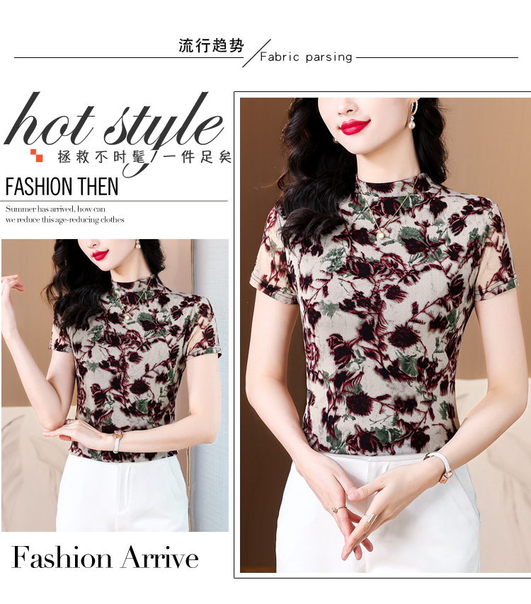 KQL350H2565印花T恤遮肉显瘦舒适透气打底小衫