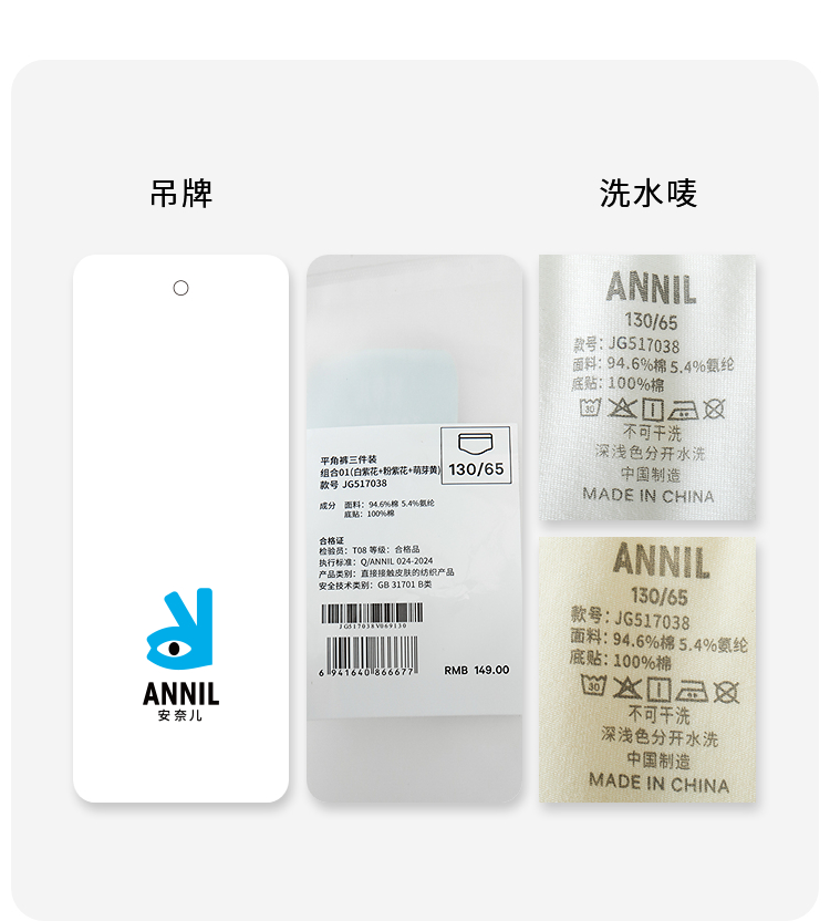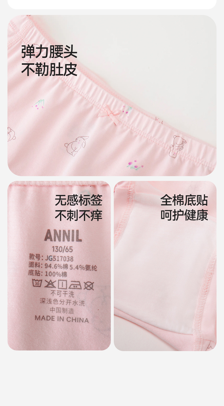 女童平角裤三件装春季新款安奈儿童装JG517038