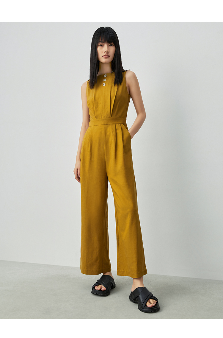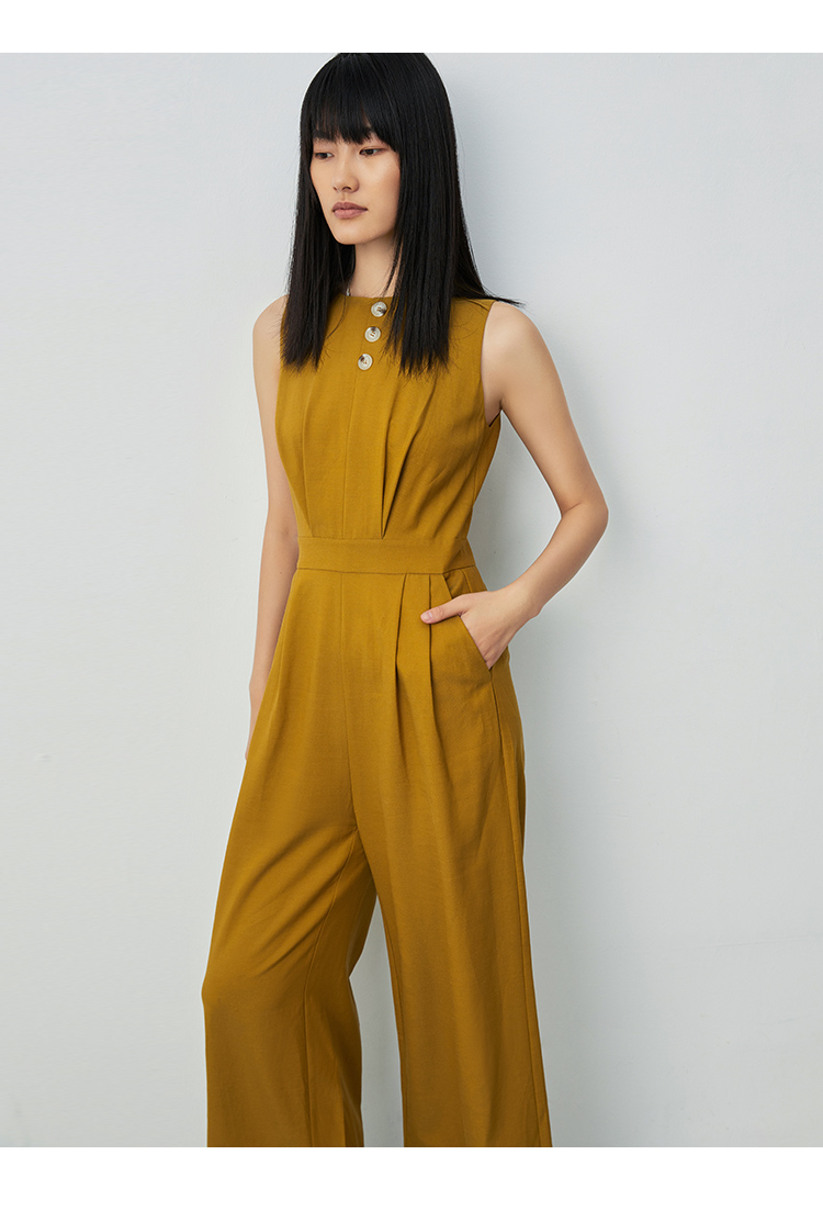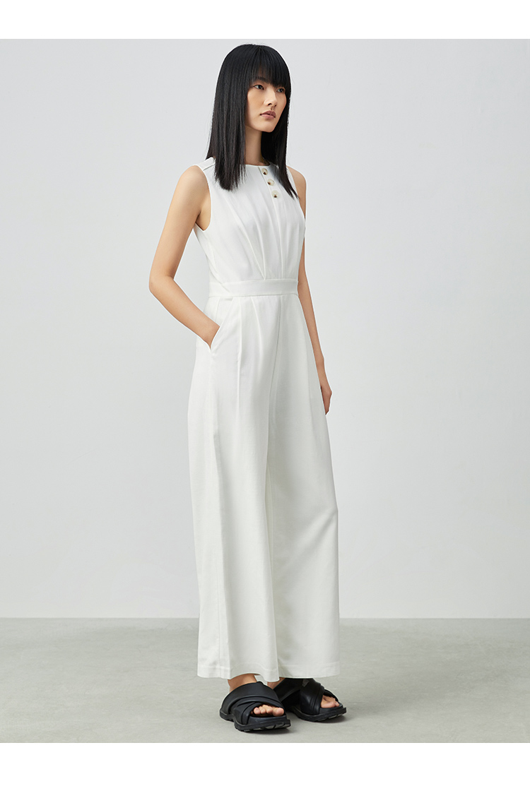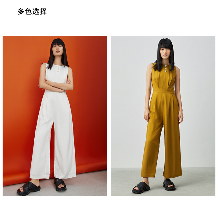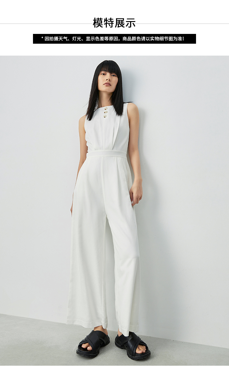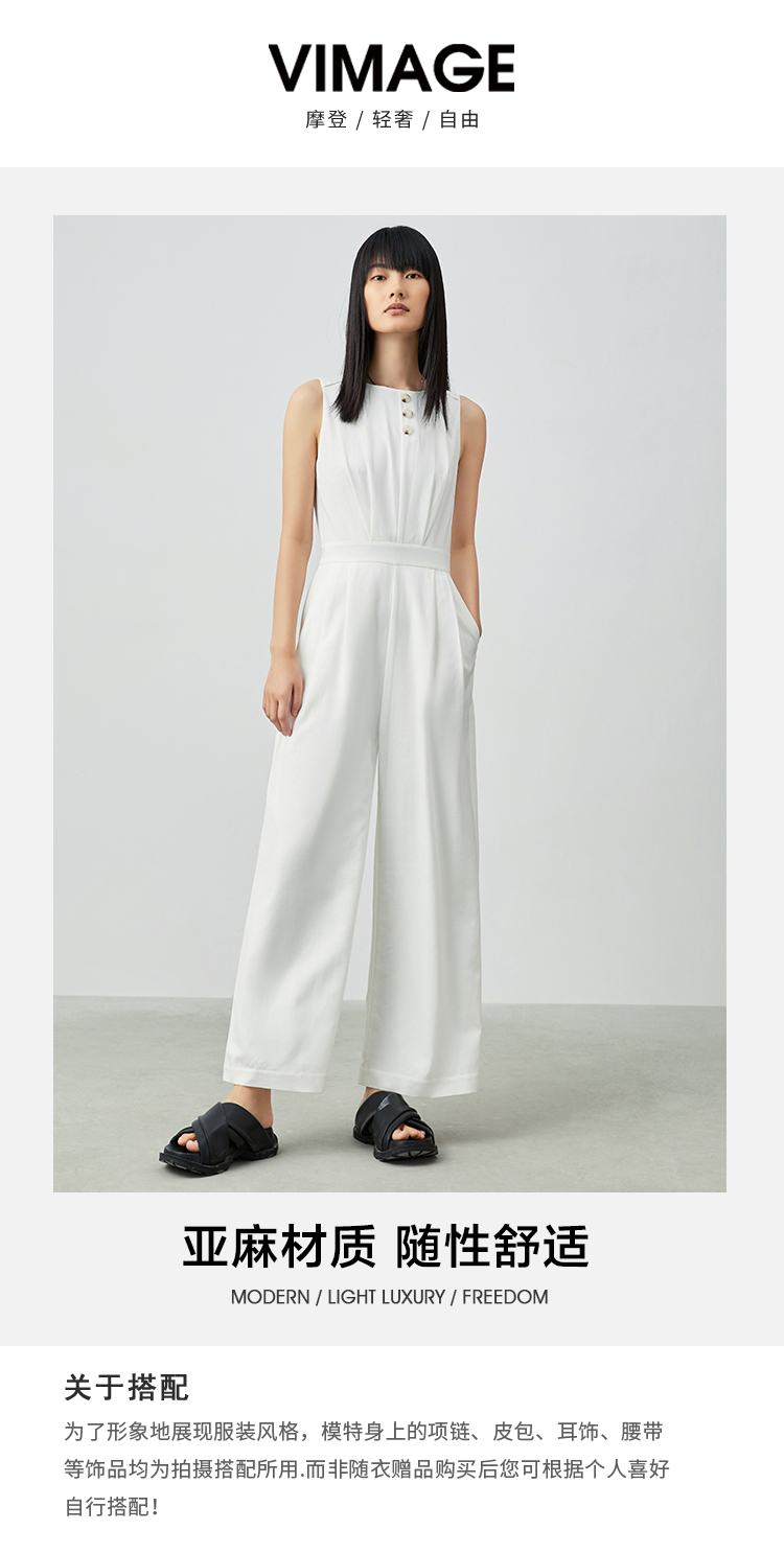 VIMAGE纬漫纪新款气质通勤时尚百搭无袖高腰阔腿连体裤女V1307918