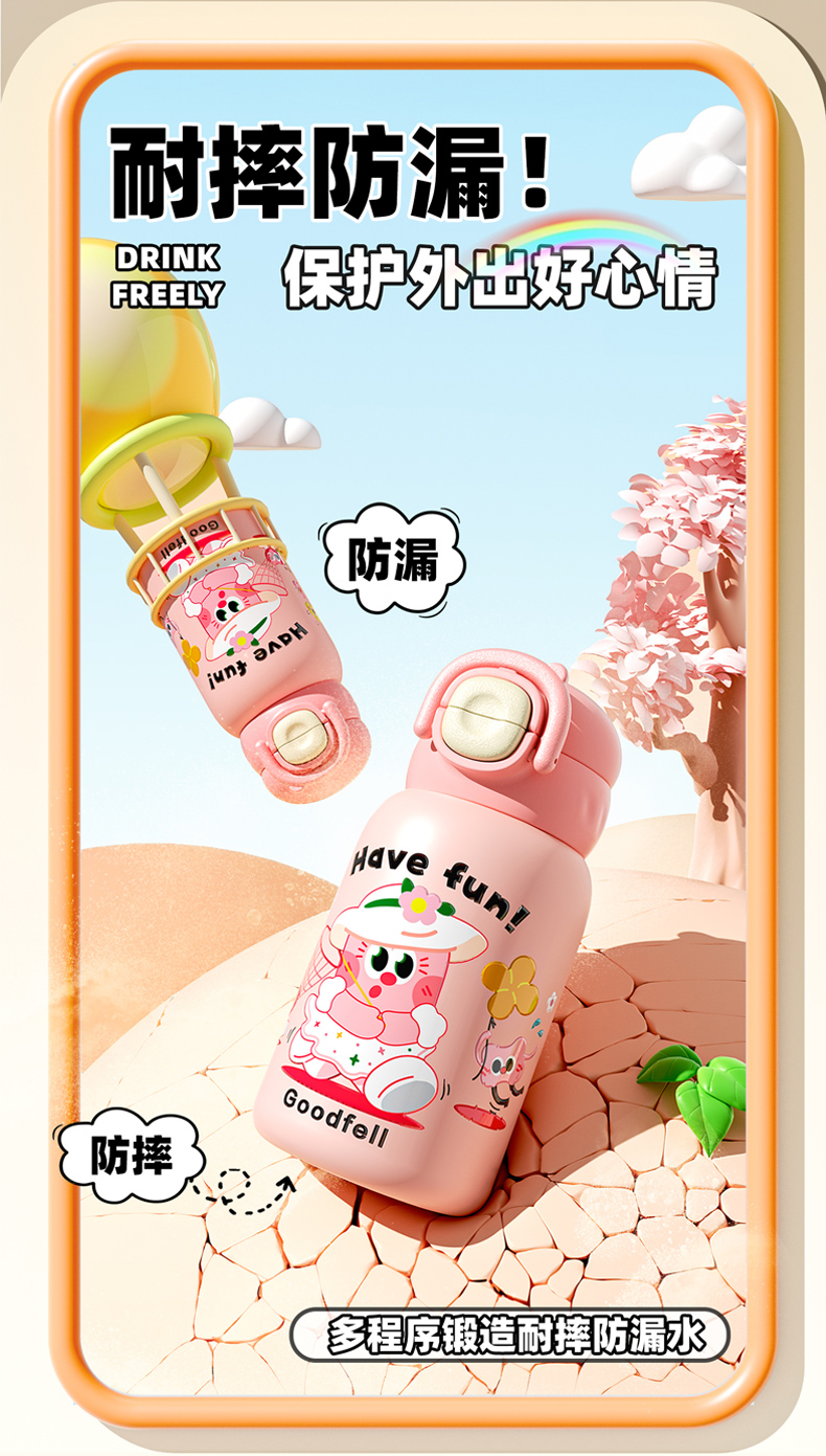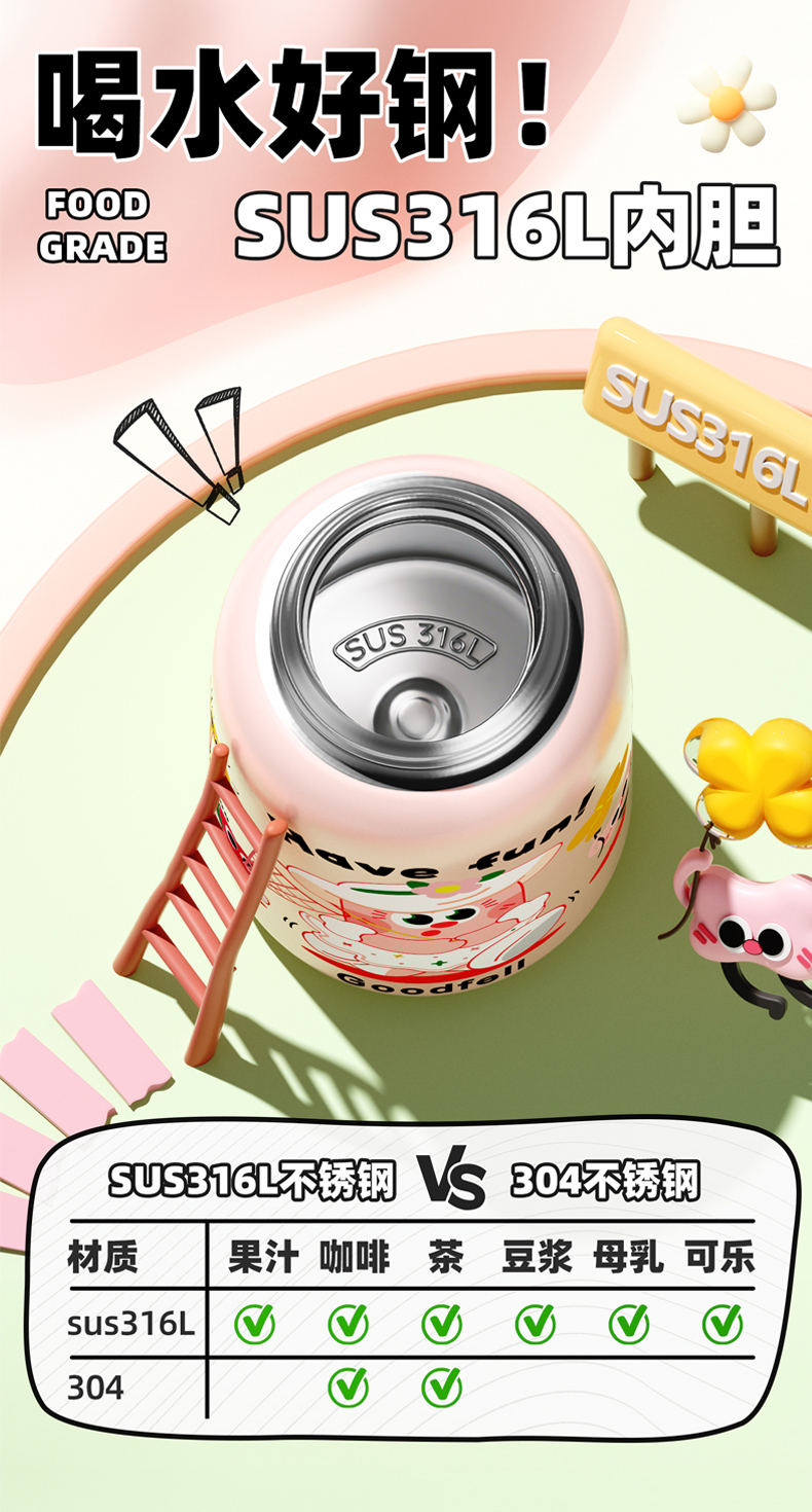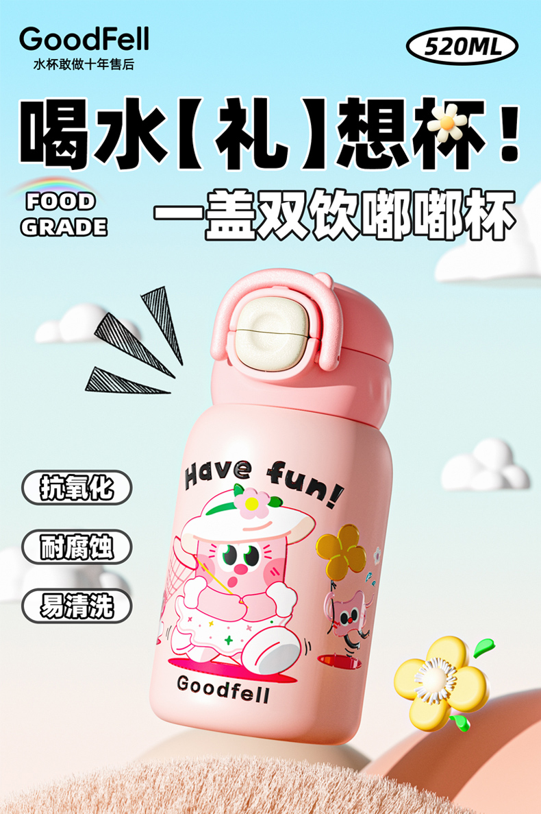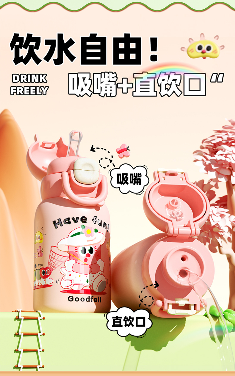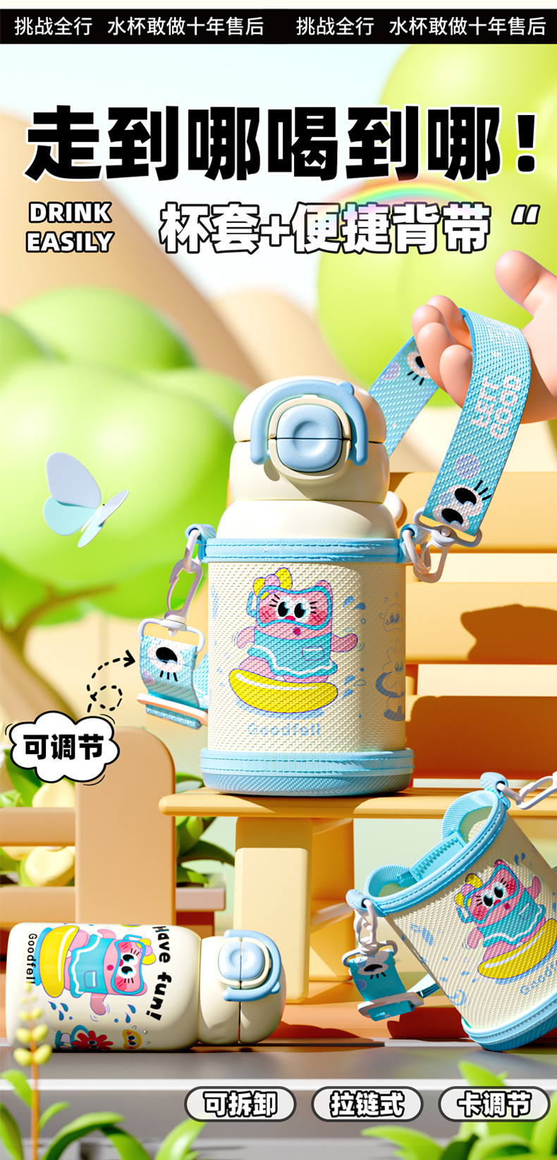 摩登主妇儿童保温杯高颜值吸管杯女便携随行杯子学生上学专用水杯