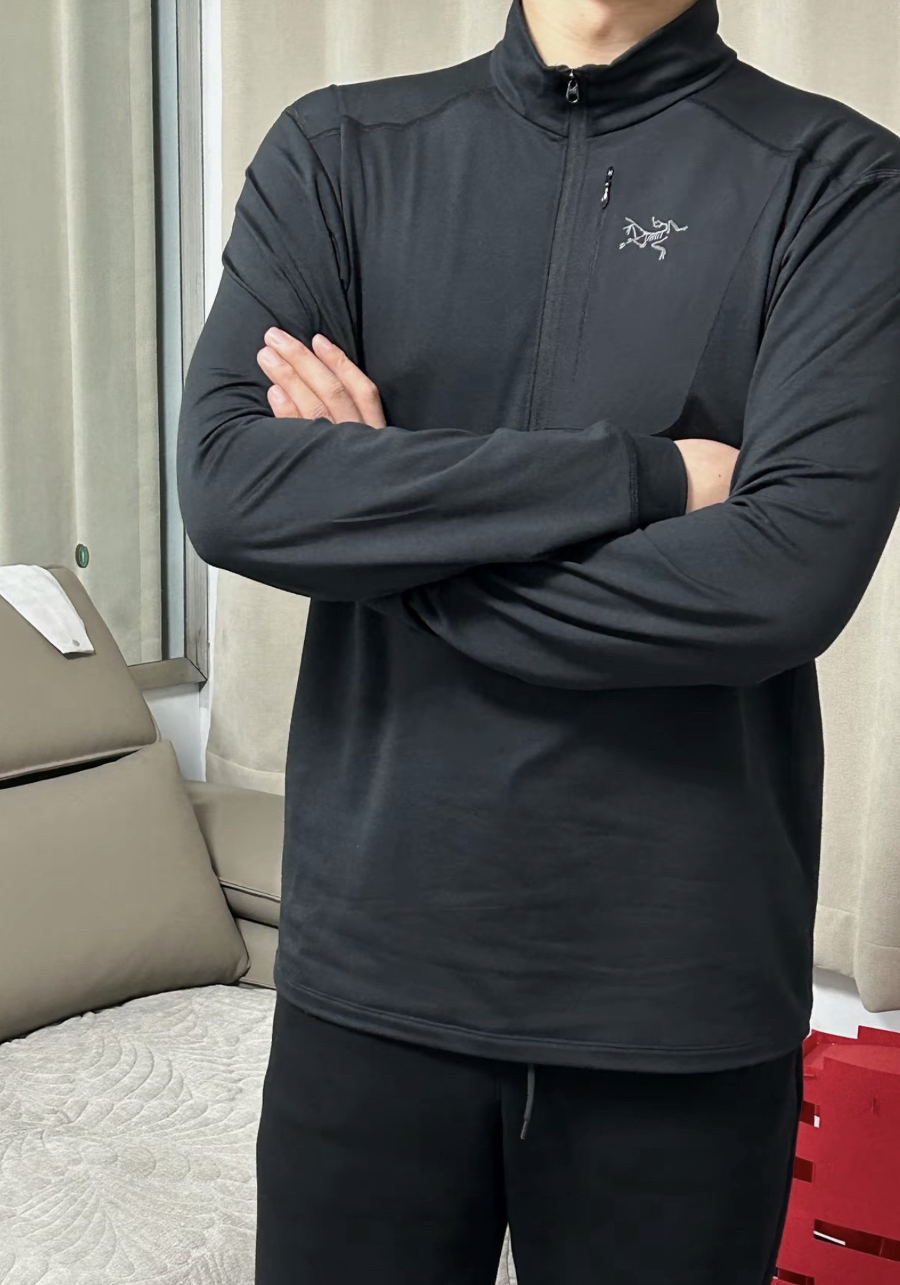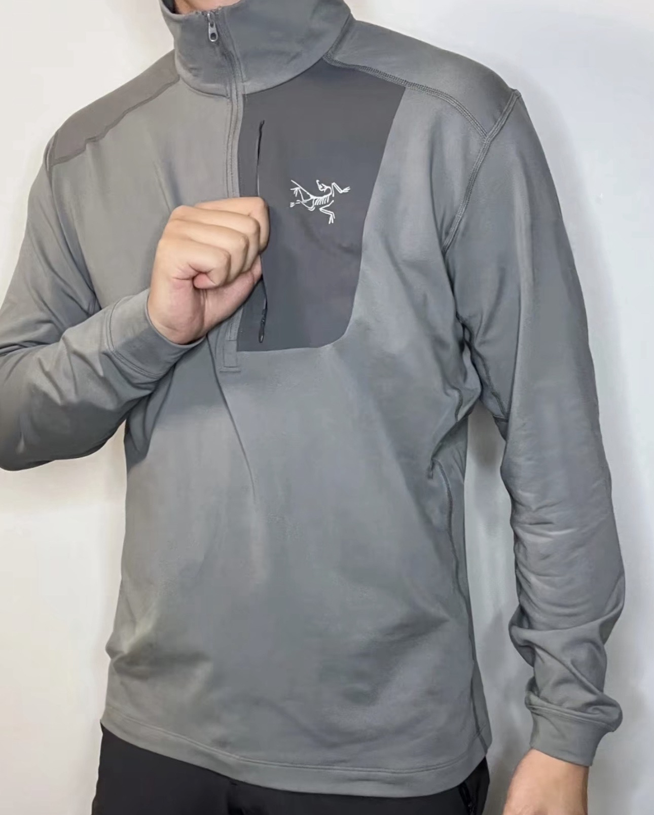 经典版半拉链 简约又不单调,胸前压胶口袋处带有logo装饰,精致优雅 非常低调大方,3D立体拼接设计 贴合男性的身材曲线,腋下有足够的余量活动空间,上身优化肩颈线条 轻松穿出好身材!春秋单穿刚刚好,冬季也能做内搭叠穿。