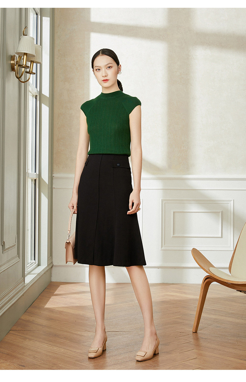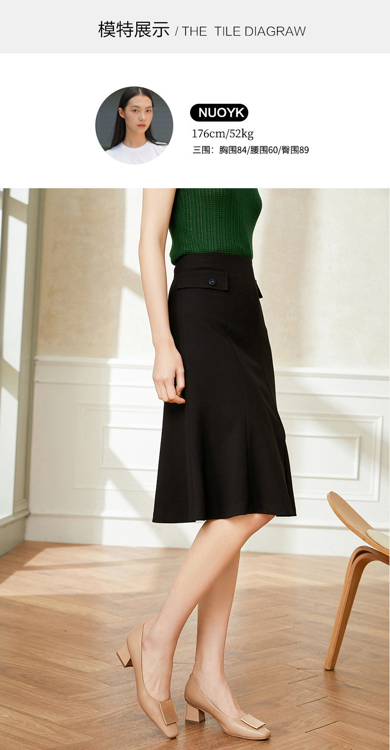 乔万尼黑色半身裙春款a裙包臀显瘦遮胯职业小香风EI1D908