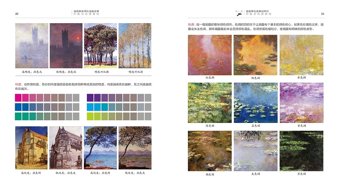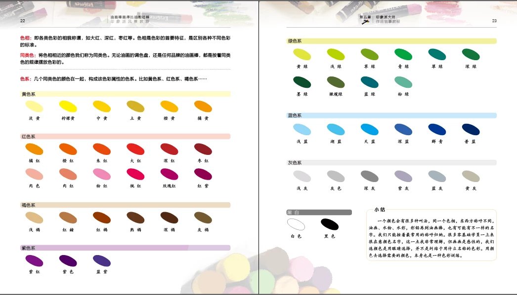 [目录] n第一章 认识印象派 01n第二章 认识油画棒 09n第三章 油画棒绘画基础知识 17n第四章 风景画中的局部绘制 27n第五章 印象派大师作品临摹教程 37n第六章 油画棒临摹作品欣赏 123
