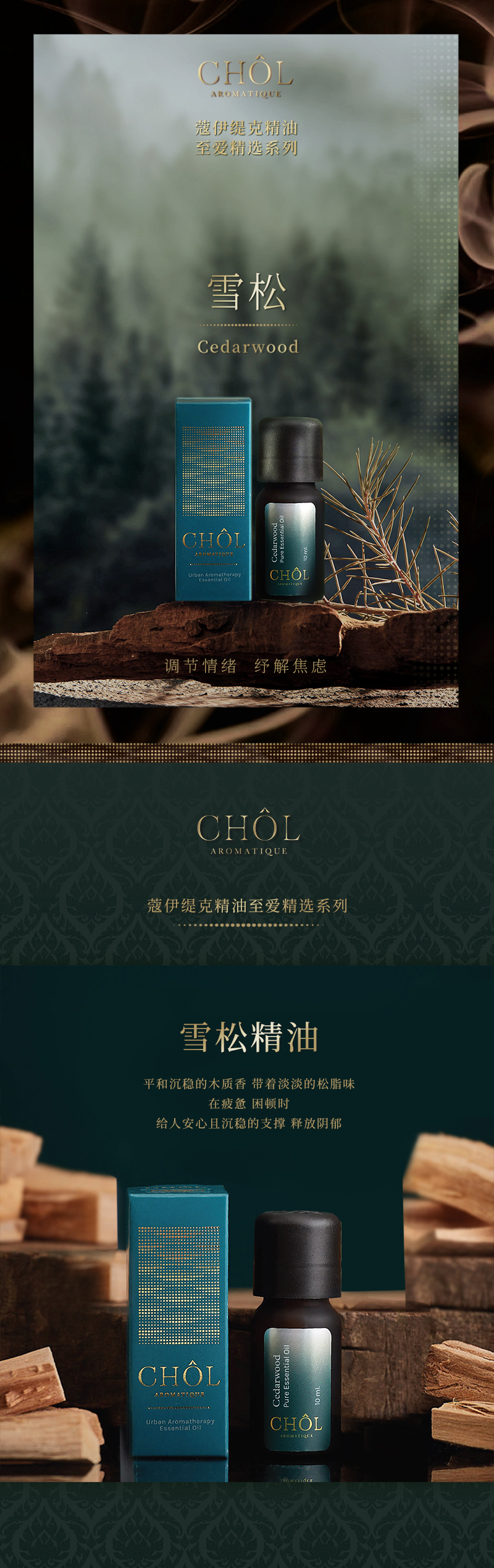 CHÔL泰国雪松精油舒缓身心天然植物香薰精油10ml