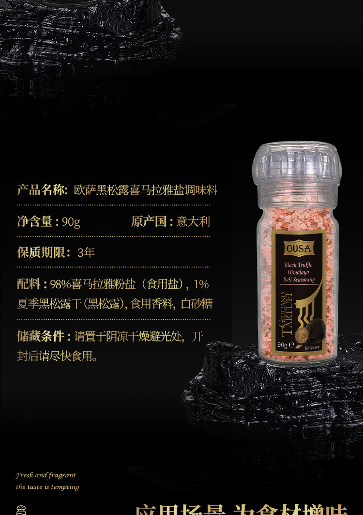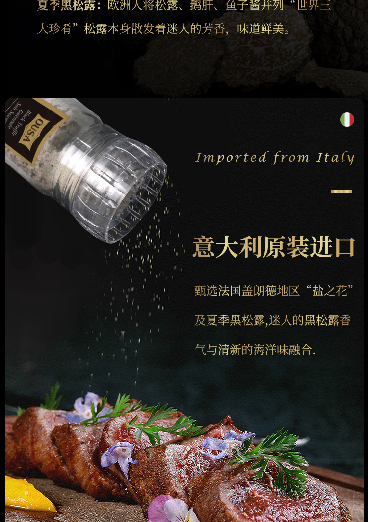 欧萨意大利进口黑松露调味盐喜马拉雅粉盐塞浦路斯盐