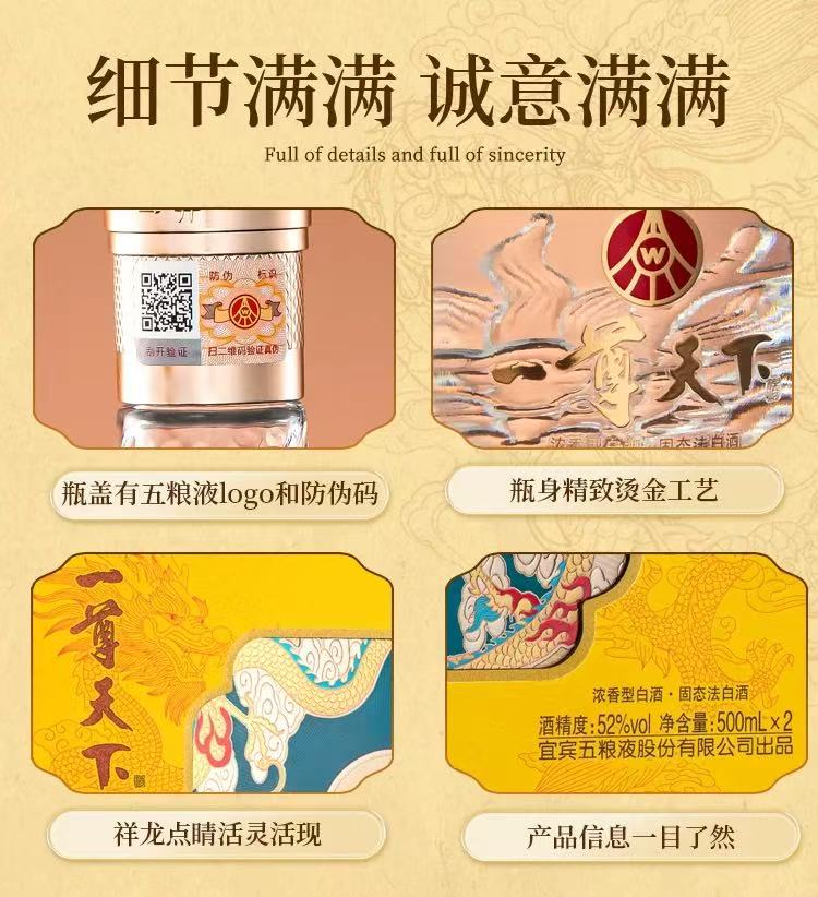 【*猫超市/*东自营同步在售 非贴牌款】 五粮液股份公司出品一尊天下盛世佳品52度浓香型礼盒白酒500ml*2/6瓶