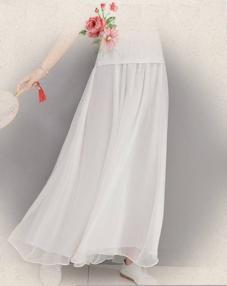 W 2020春夏民族风女仙仙飘逸双层百搭纯色雪纺裤子裙裤阔腿裤