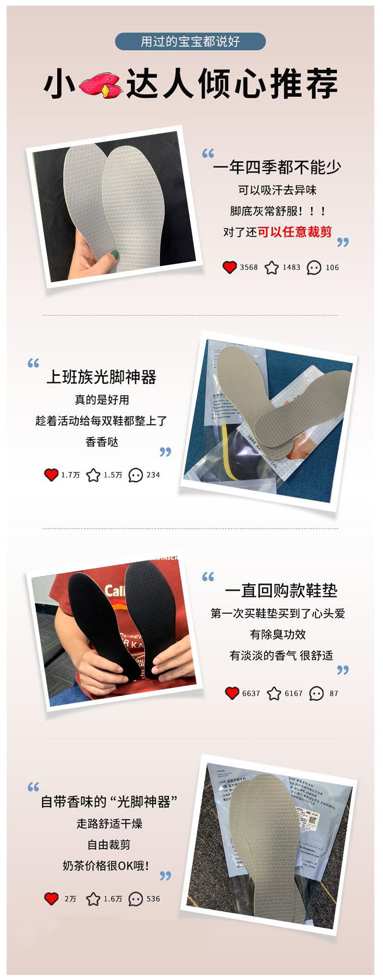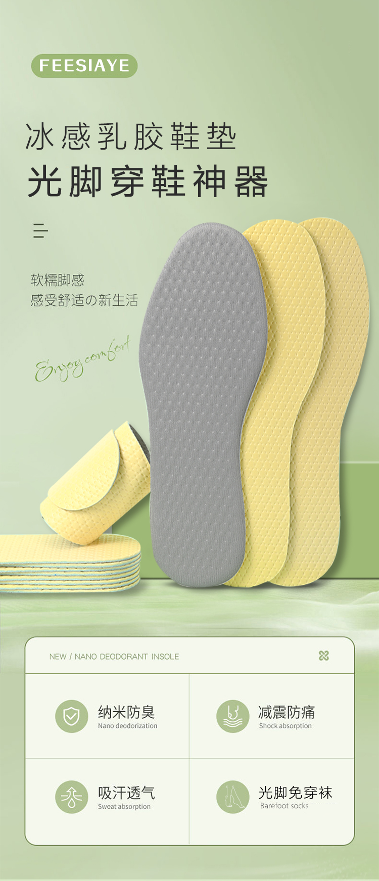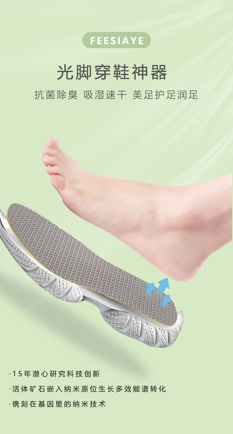 【FEESIAYE冰感乳胶鞋垫】光脚穿鞋神器纳米防臭吸汗透气可免穿袜物理除味无惧汗脚轻若无物随意裁剪