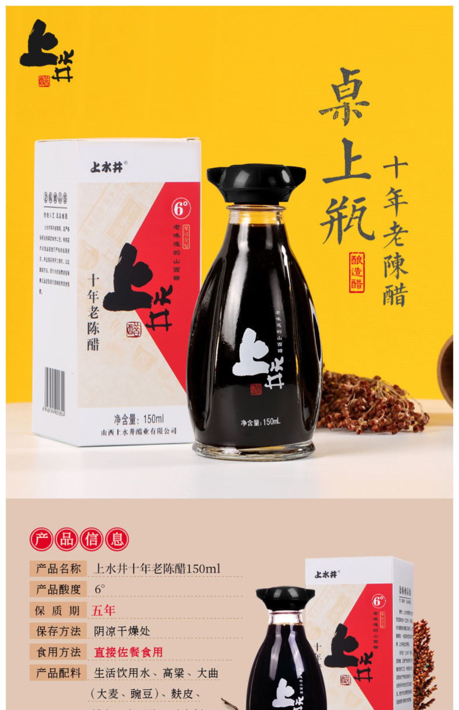 【十年6度陈酿】山西上水井老陈醋150ml 山西特产粮食酿造家用调味醋