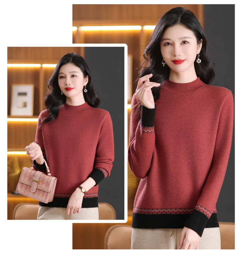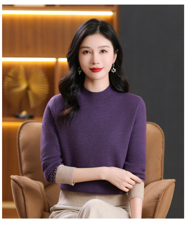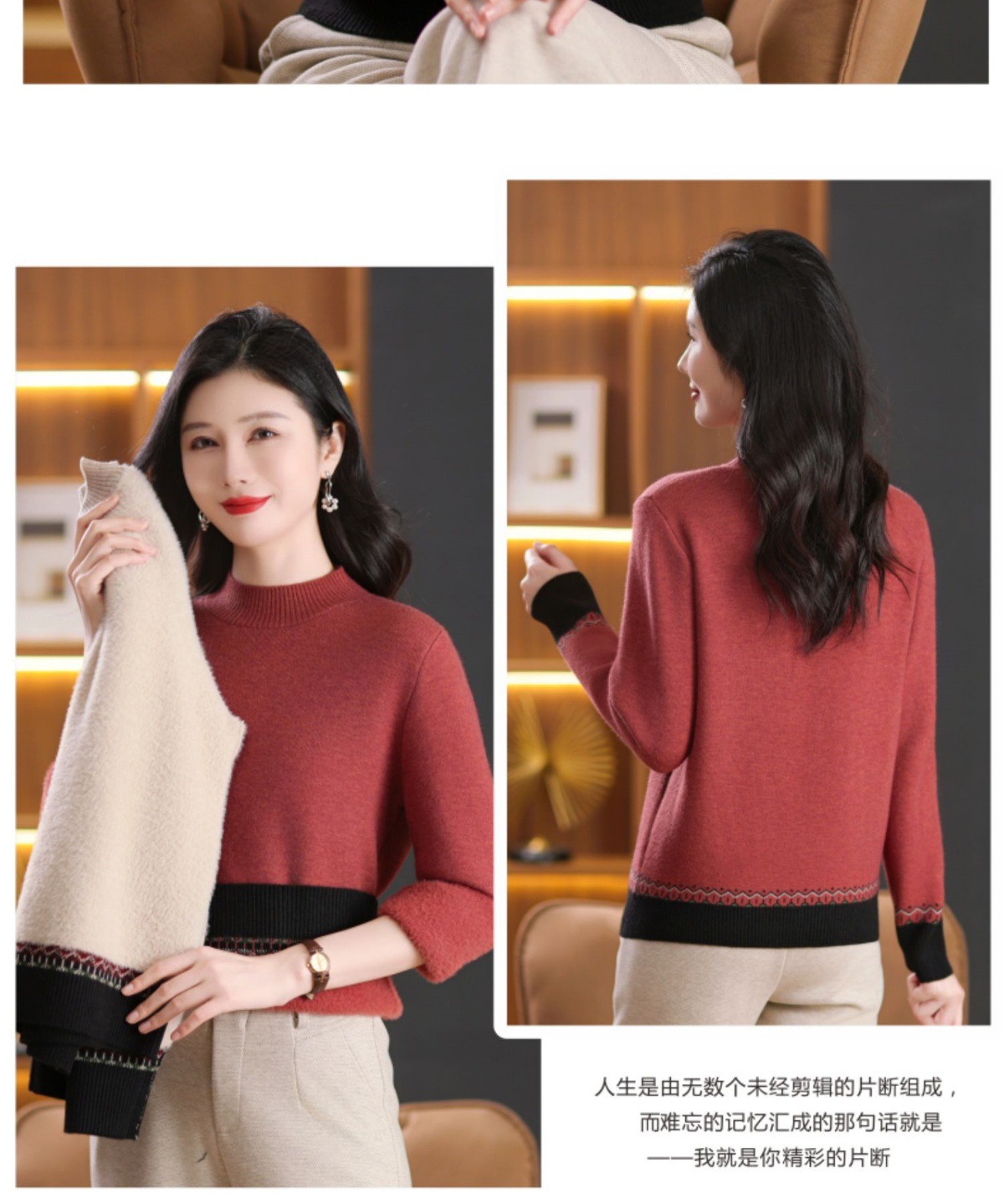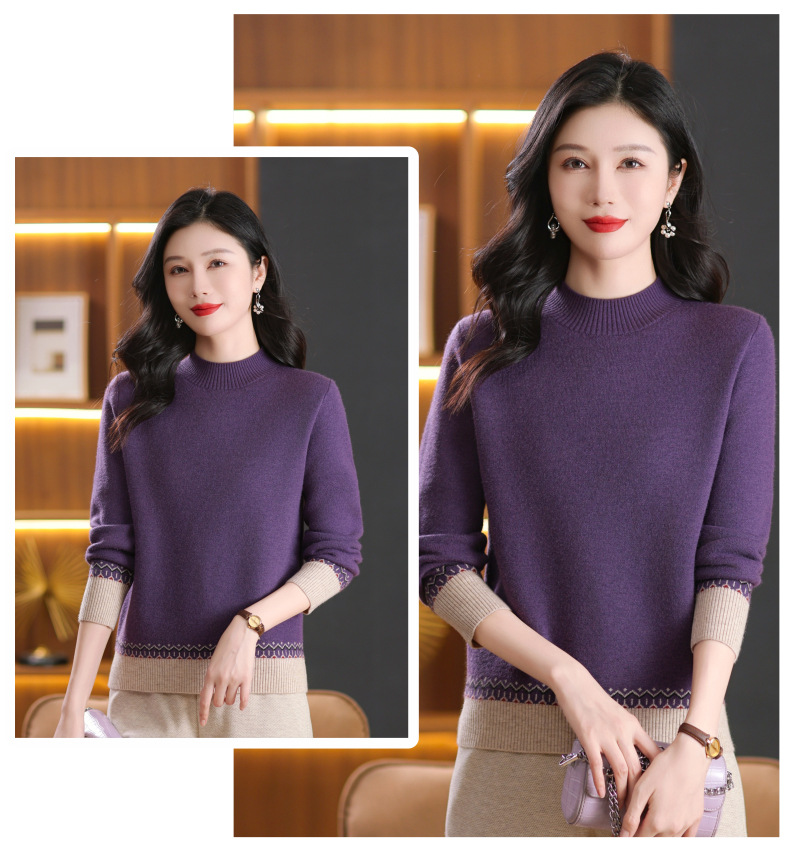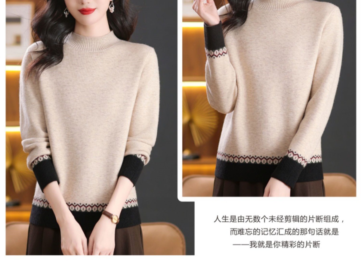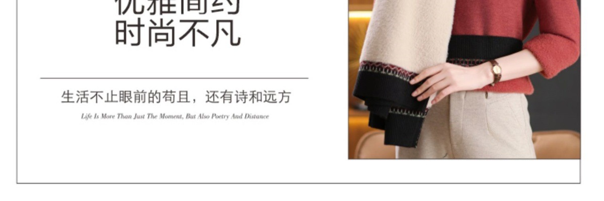 CC-103-66161秋冬季新款时髦简约拼色设计感针织一体绒打底衫毛衣通勤上衣