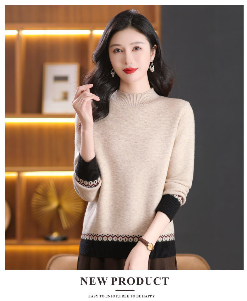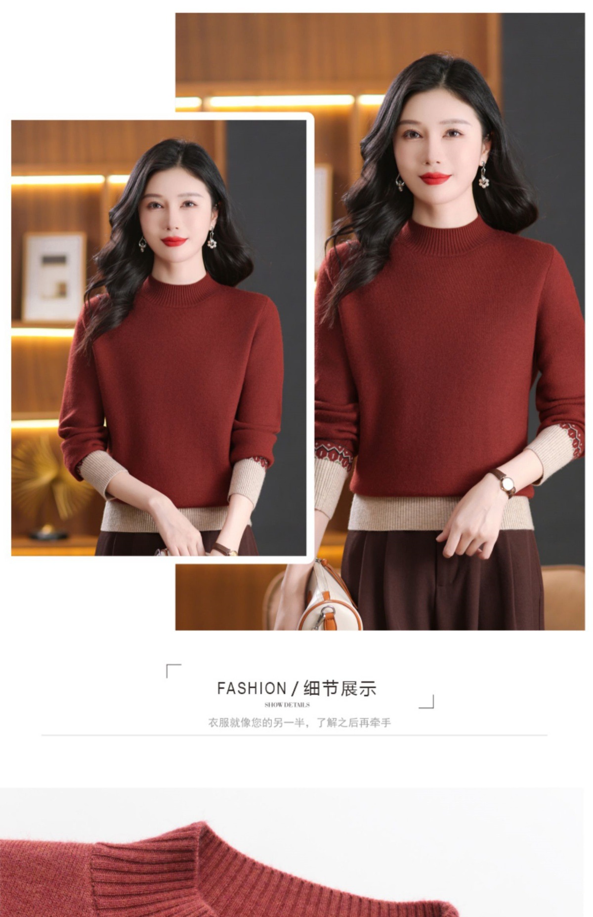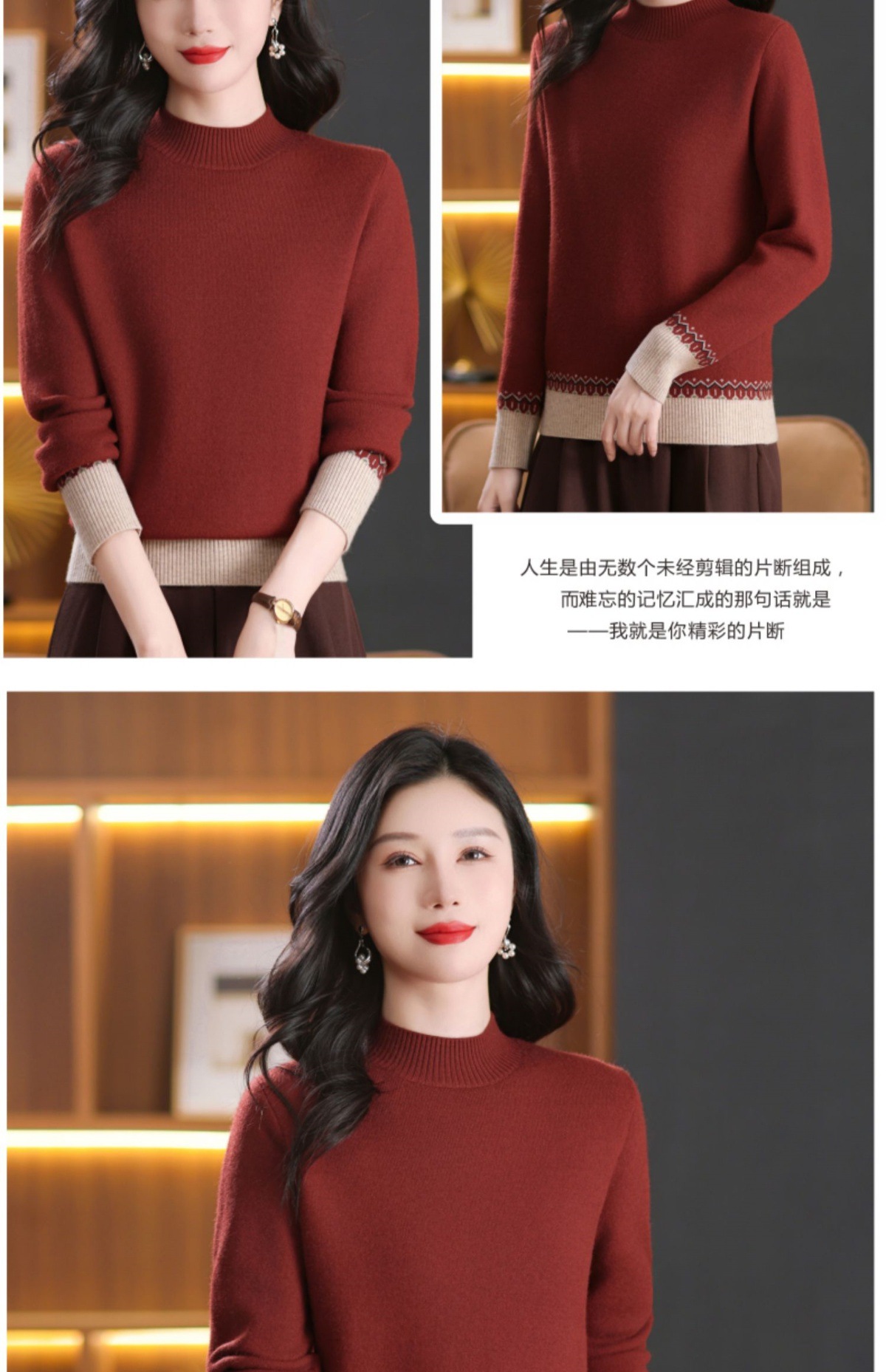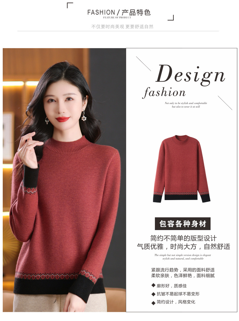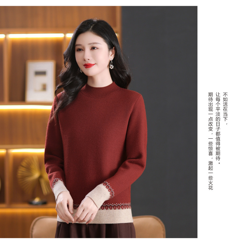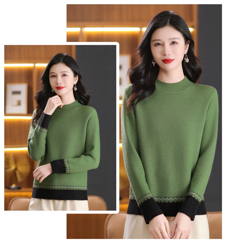 CC-103-66161秋冬季新款时髦简约拼色设计感针织一体绒打底衫毛衣通勤上衣