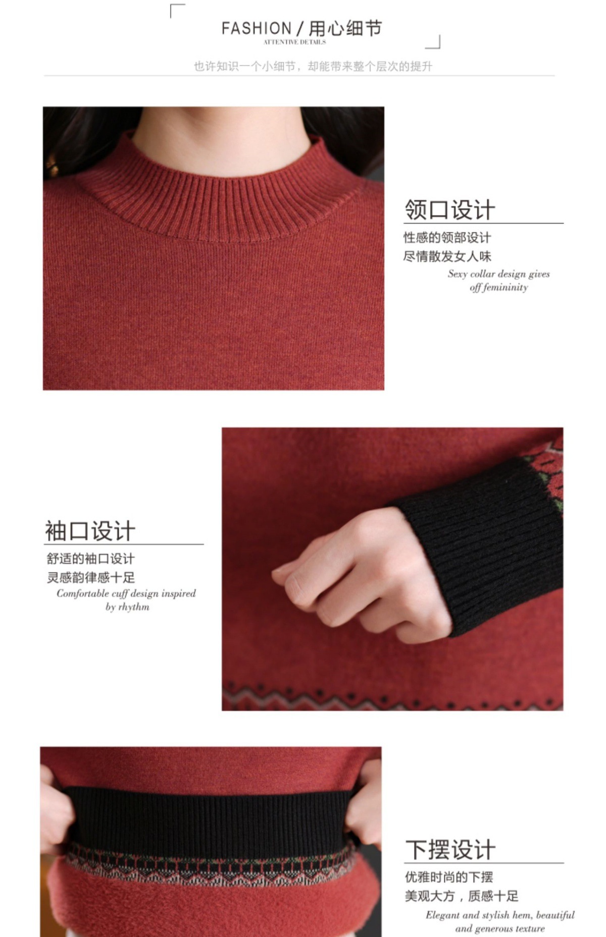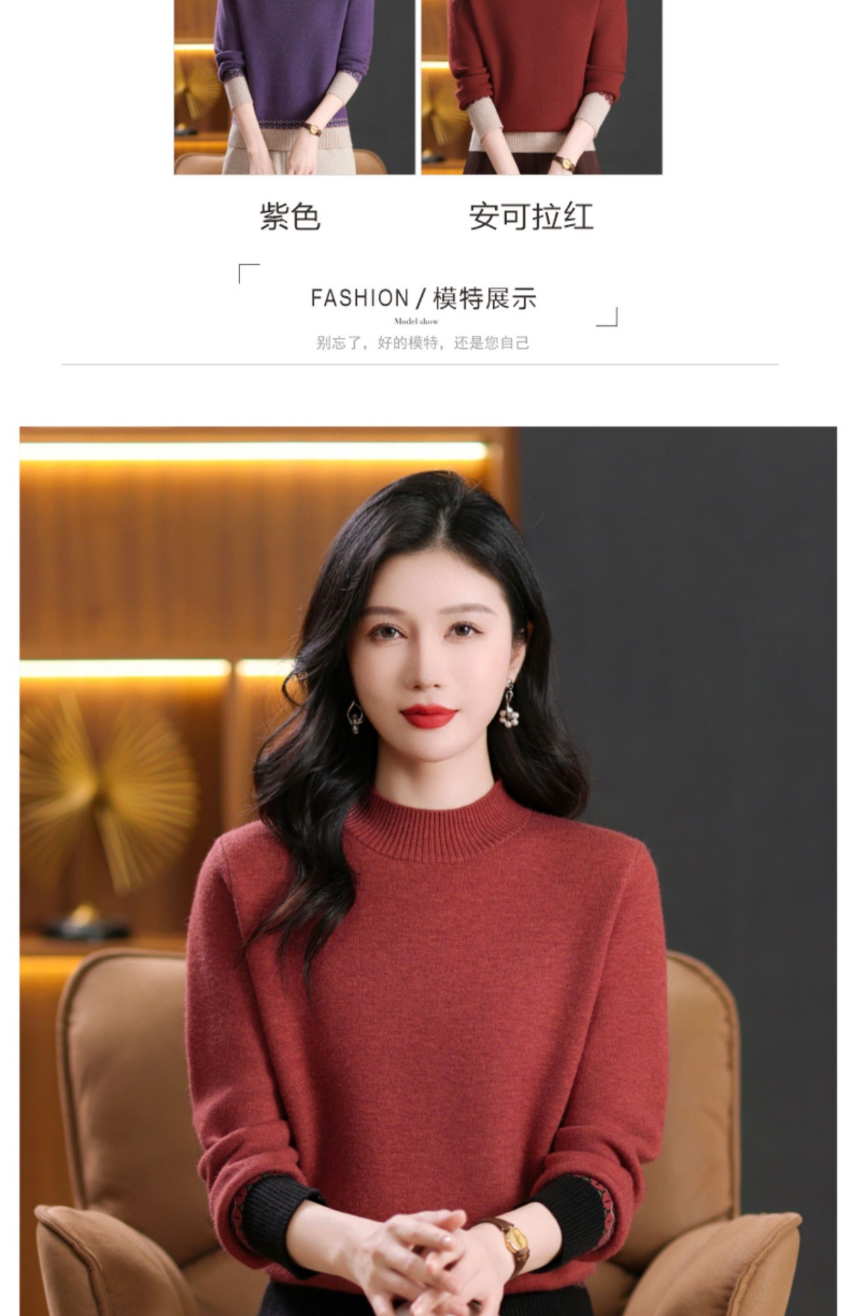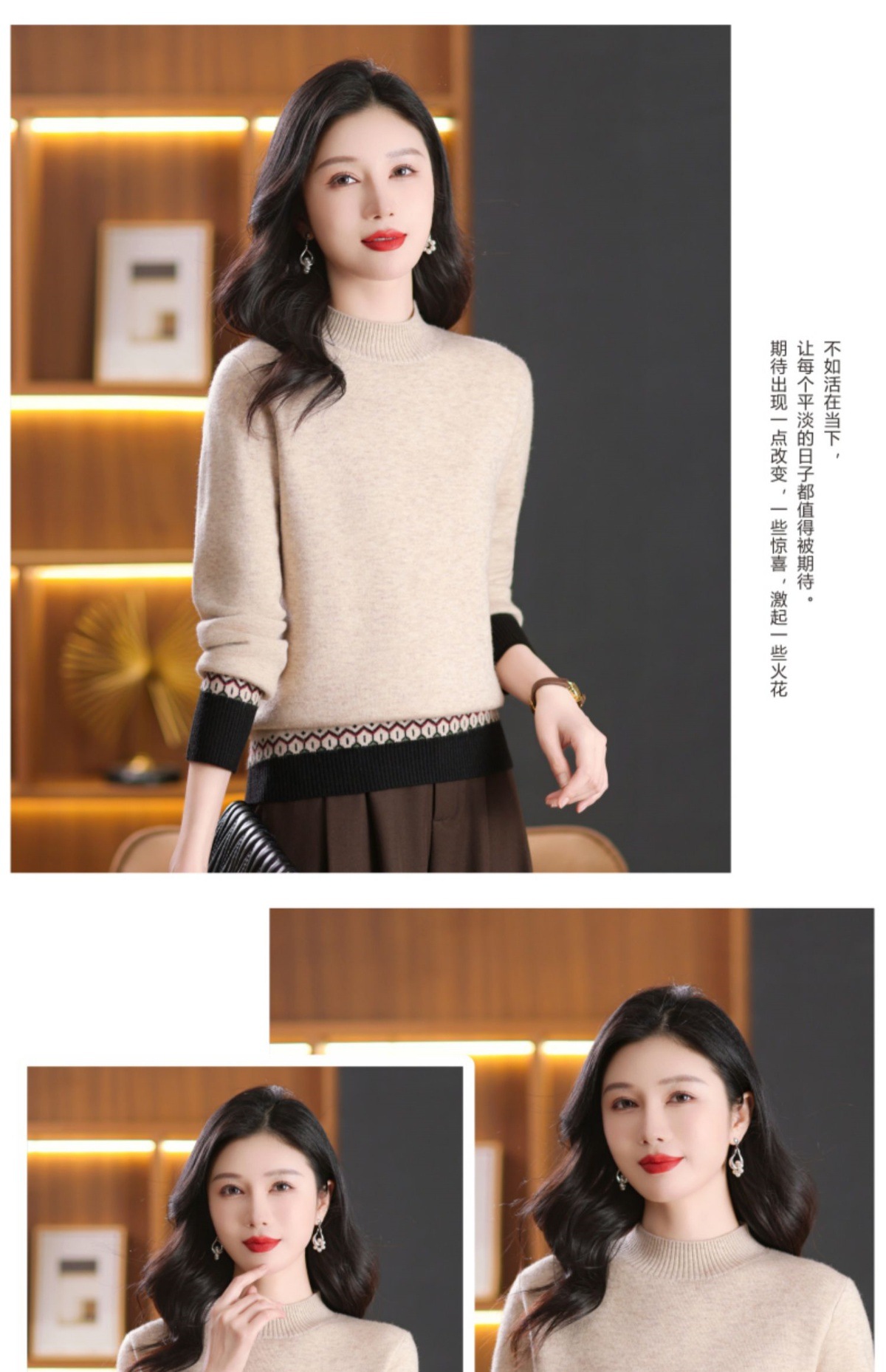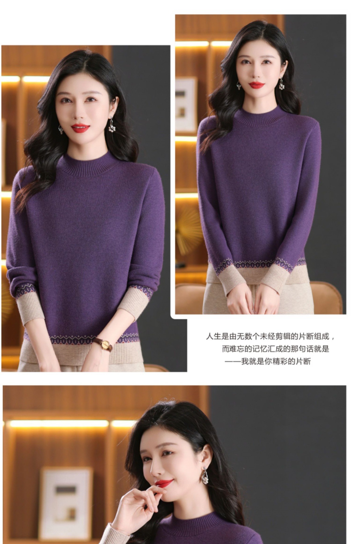 CC-103-66161秋冬季新款时髦简约拼色设计感针织一体绒打底衫毛衣通勤上衣