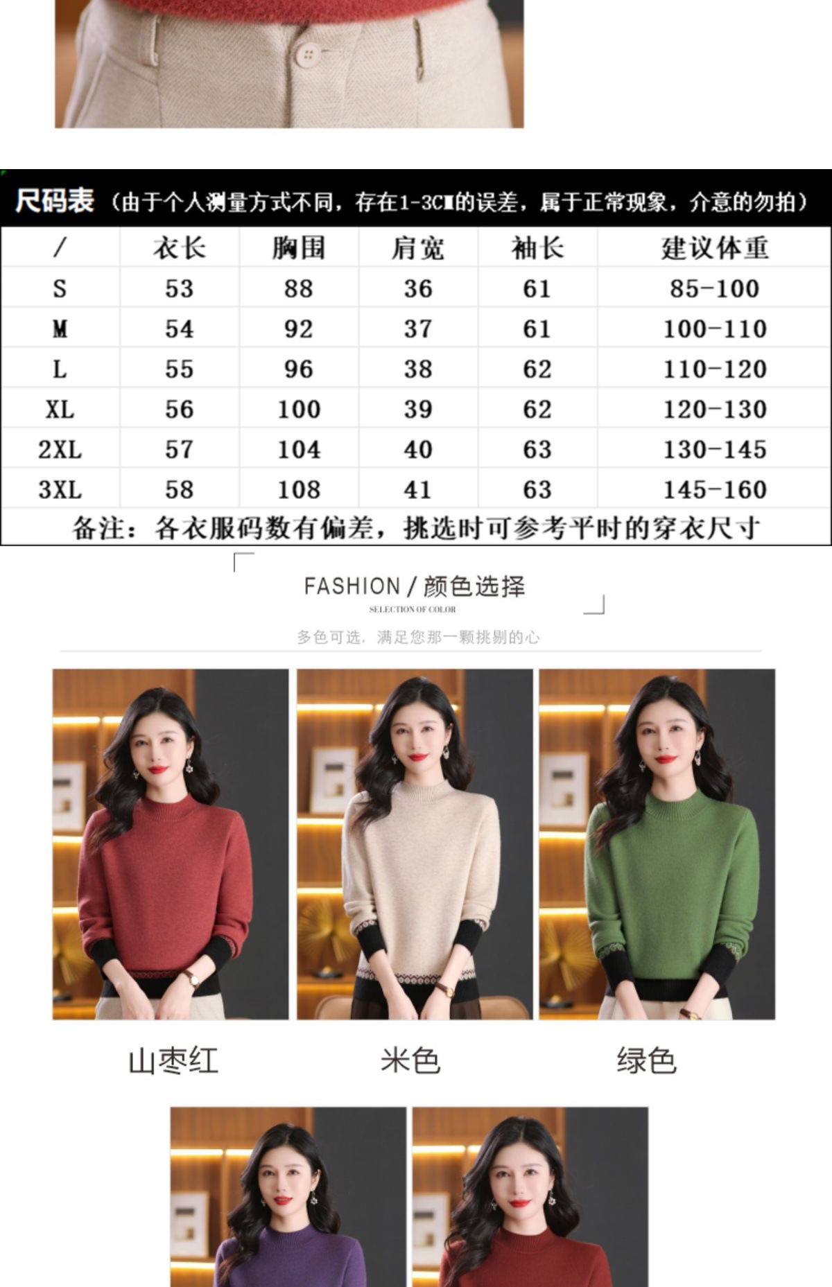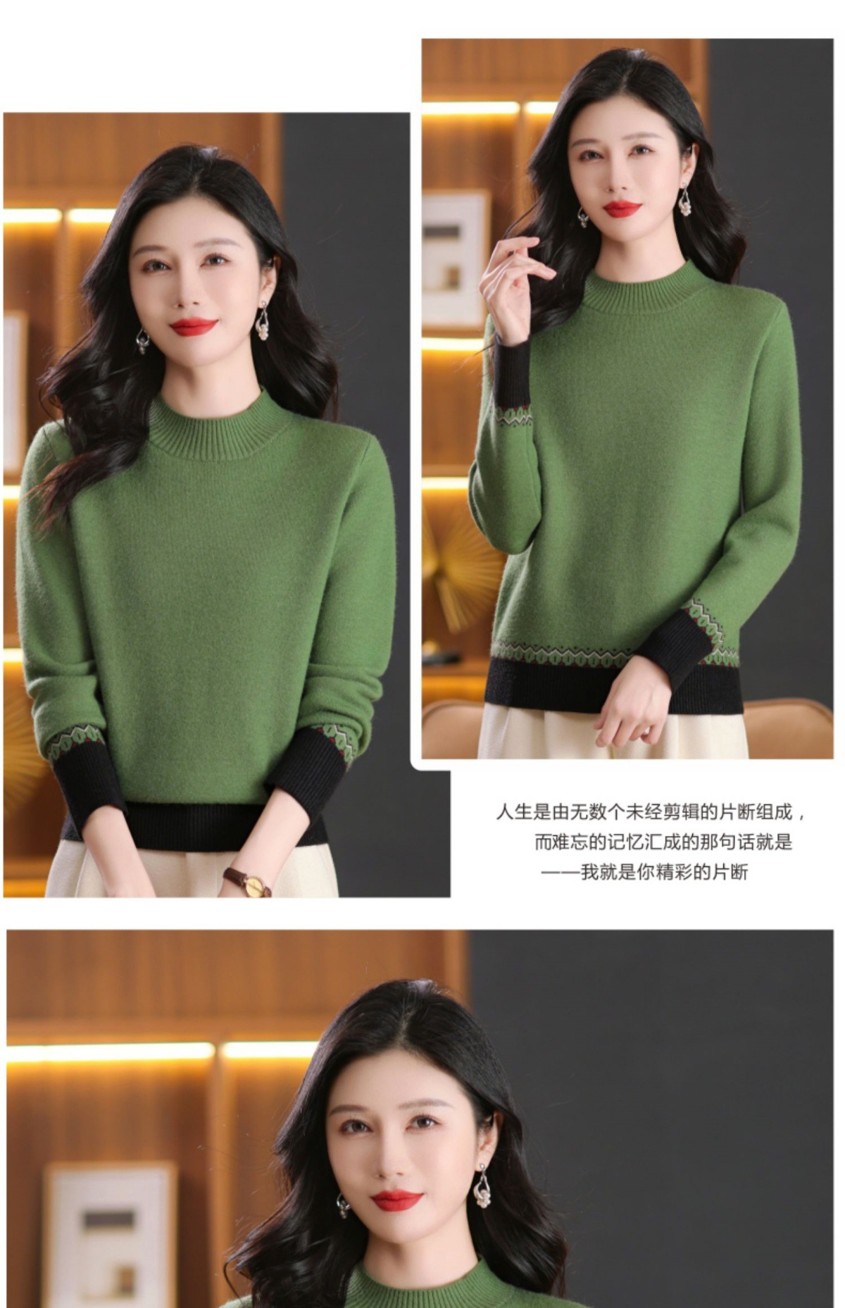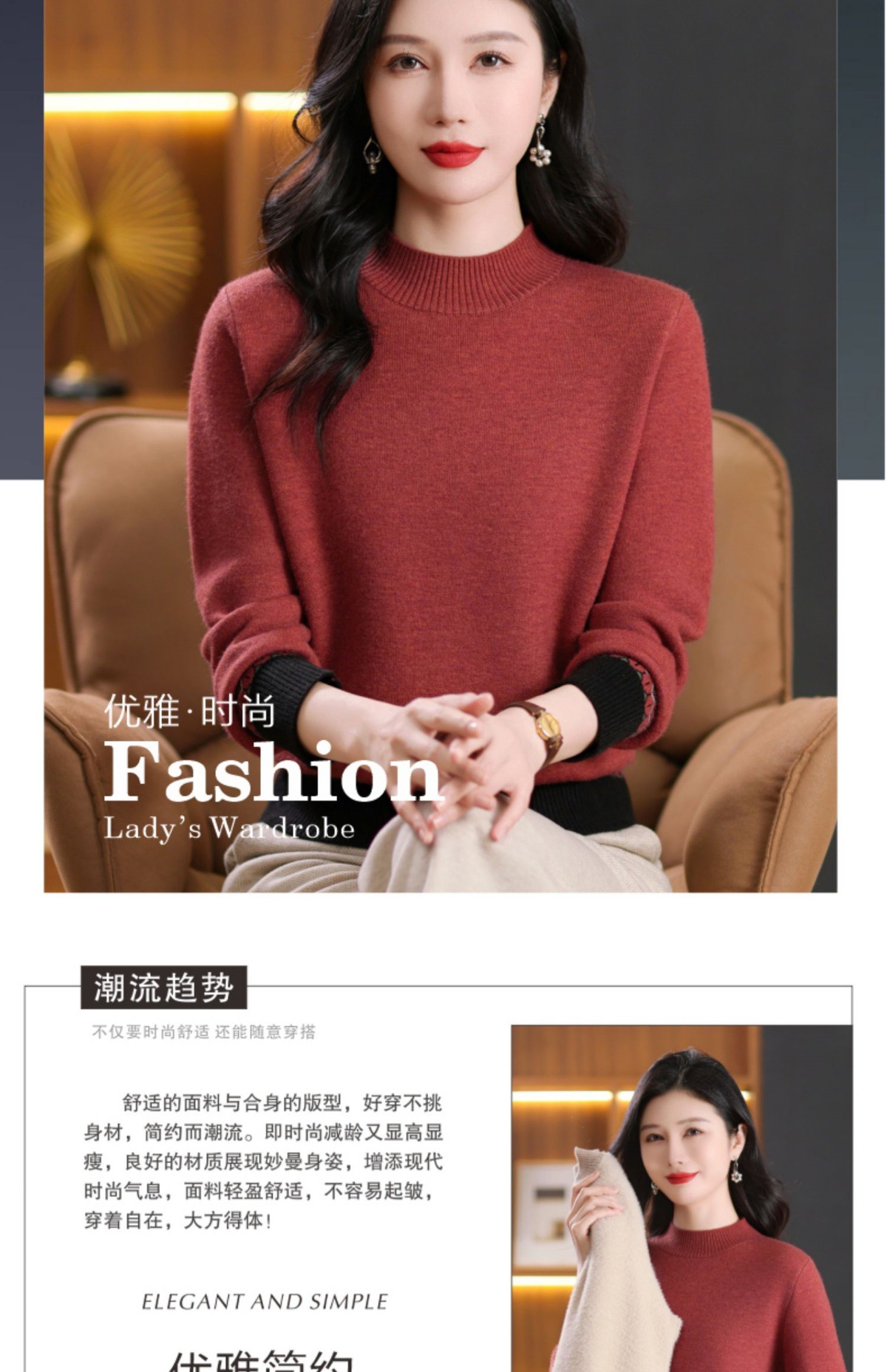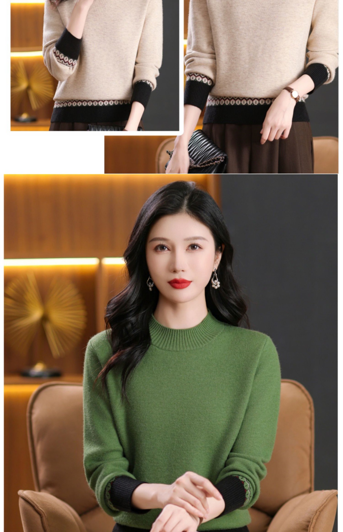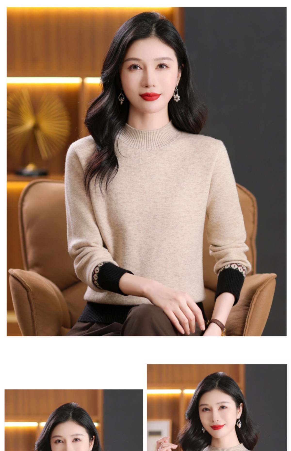 CC-103-66161秋冬季新款时髦简约拼色设计感针织一体绒打底衫毛衣通勤上衣