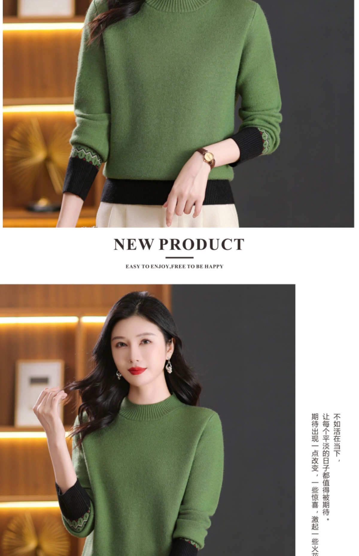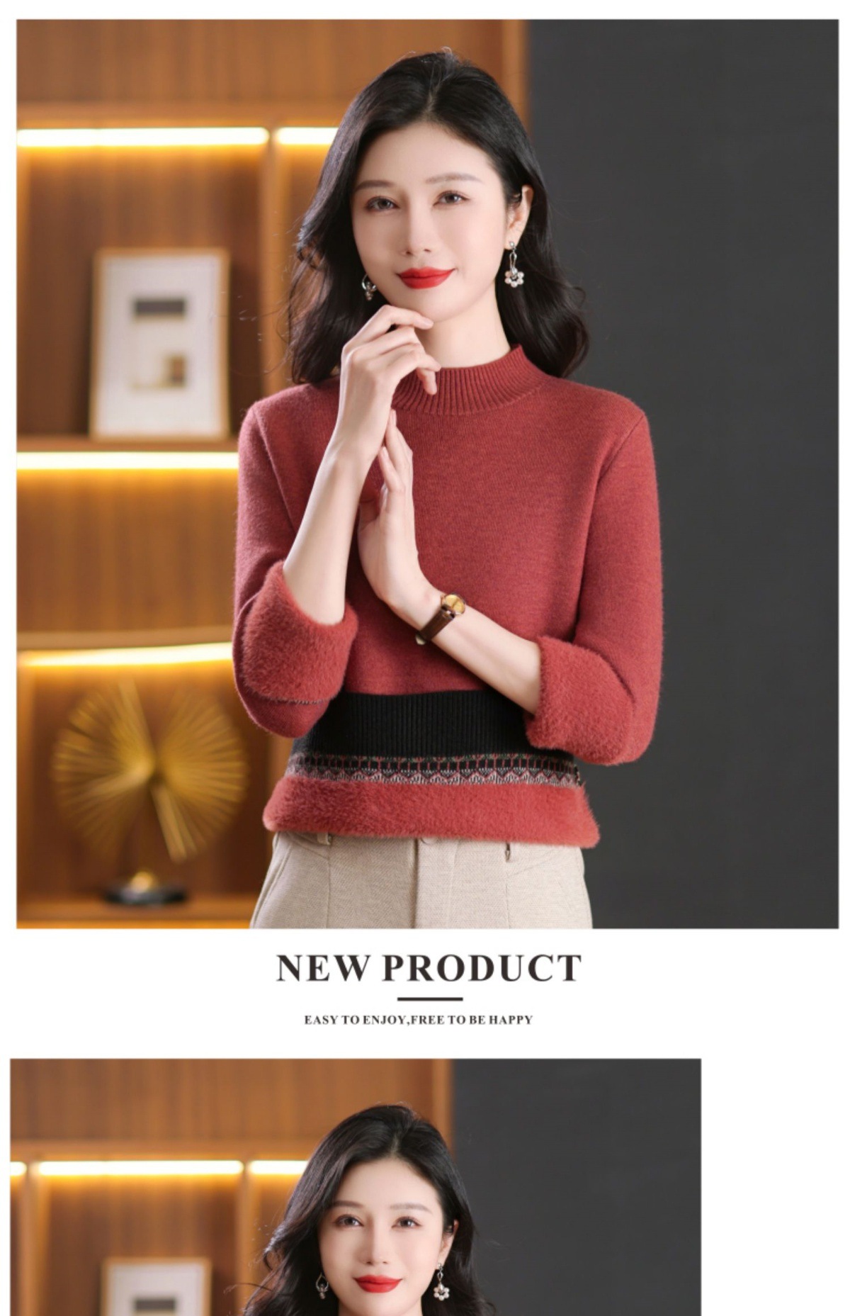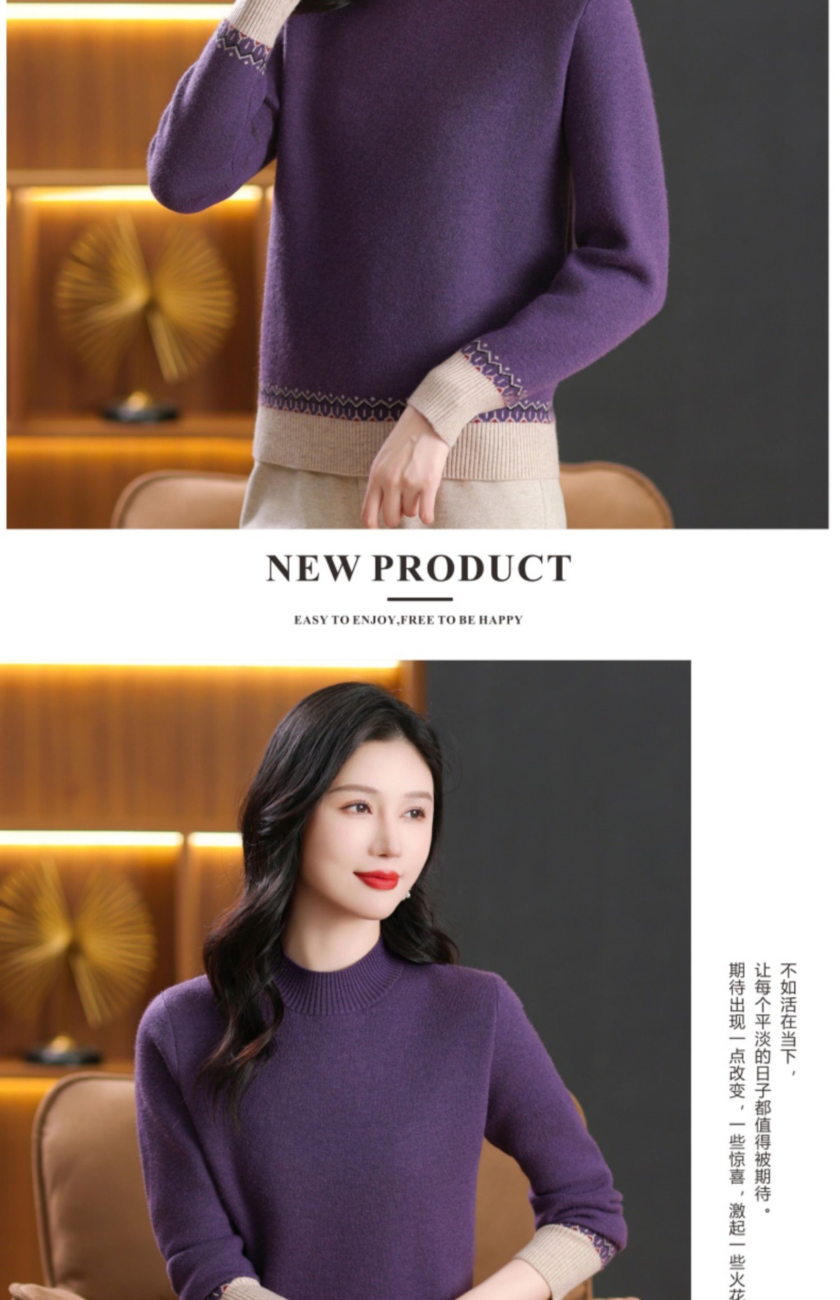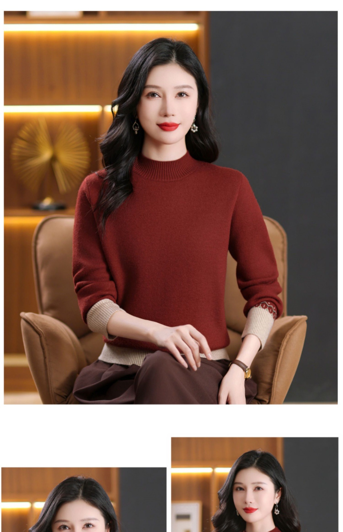 CC-103-66161秋冬季新款时髦简约拼色设计感针织一体绒打底衫毛衣通勤上衣