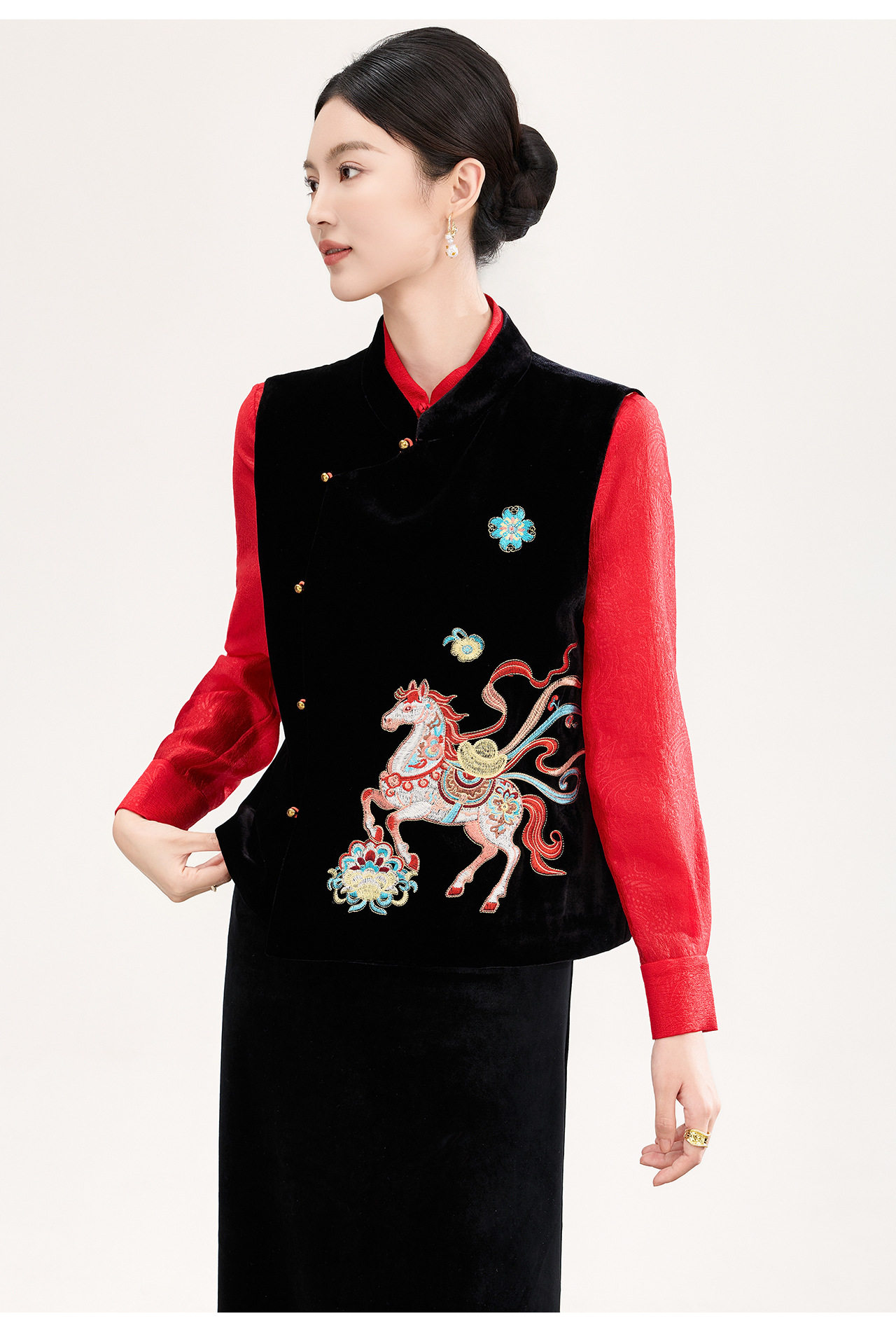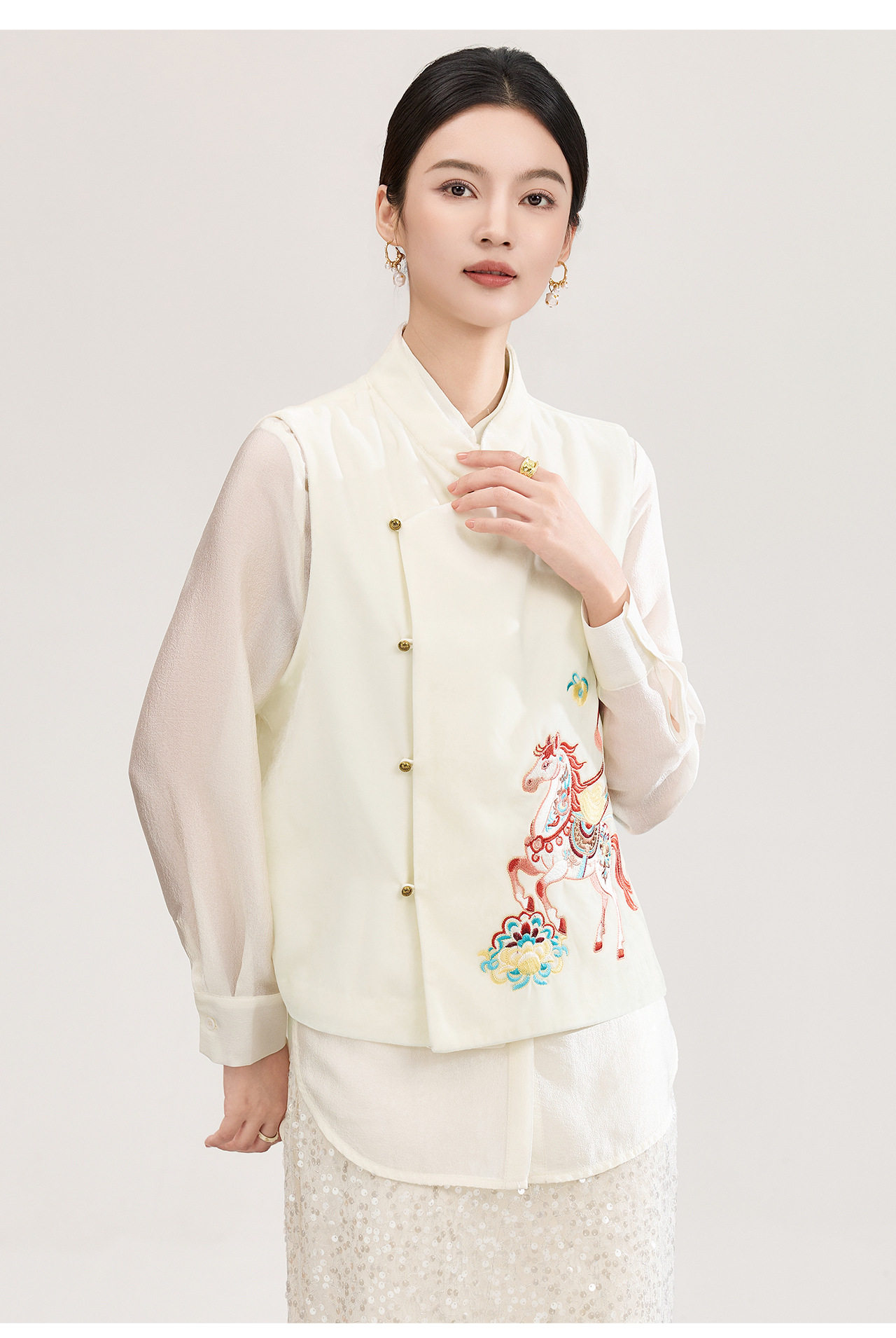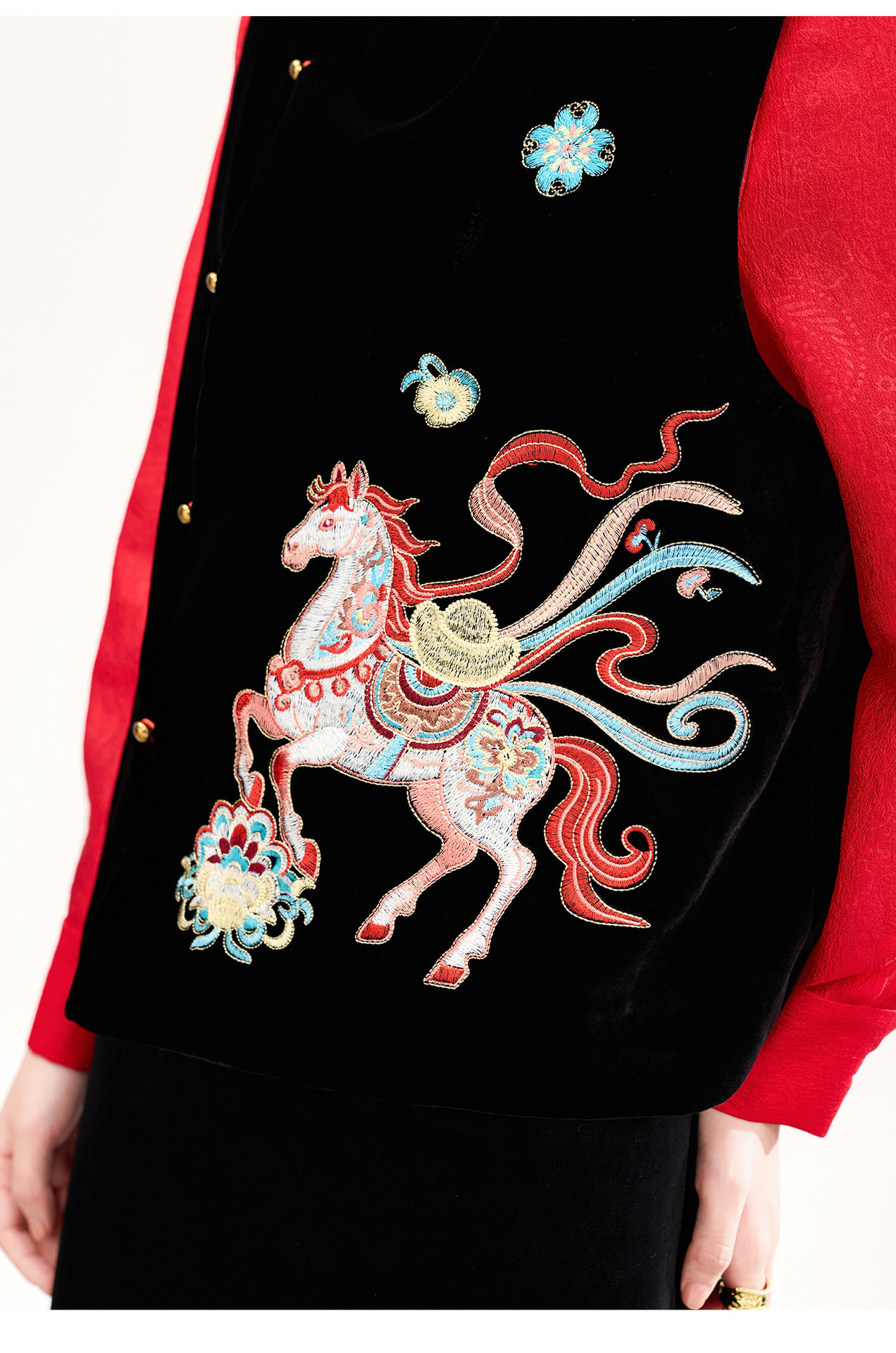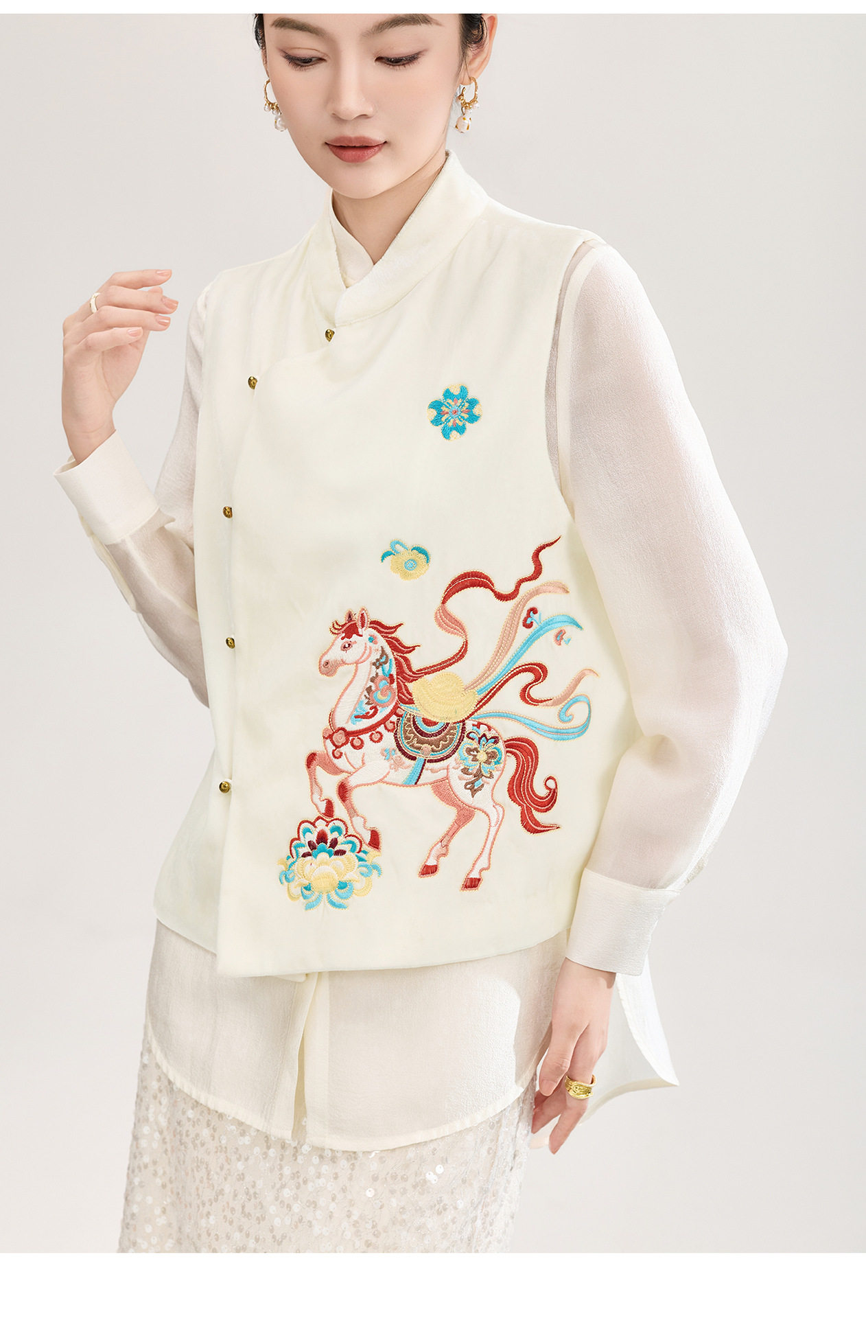 「高货wl」全新升级【铂金会员422/天猫569/差价147】(73606)洛诗琳新中式真丝丝绒马甲2026春季重工刺绣斜襟国风上衣