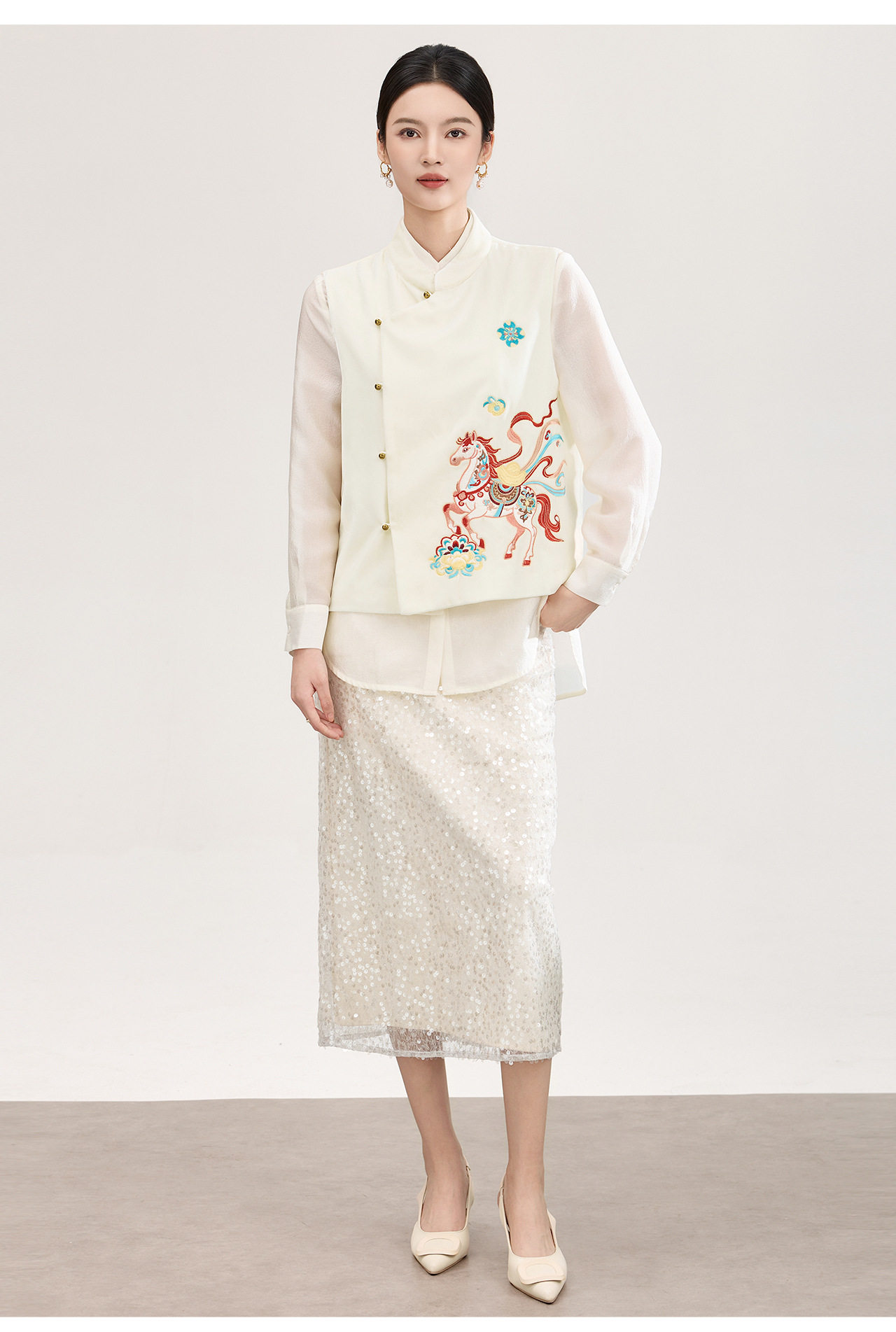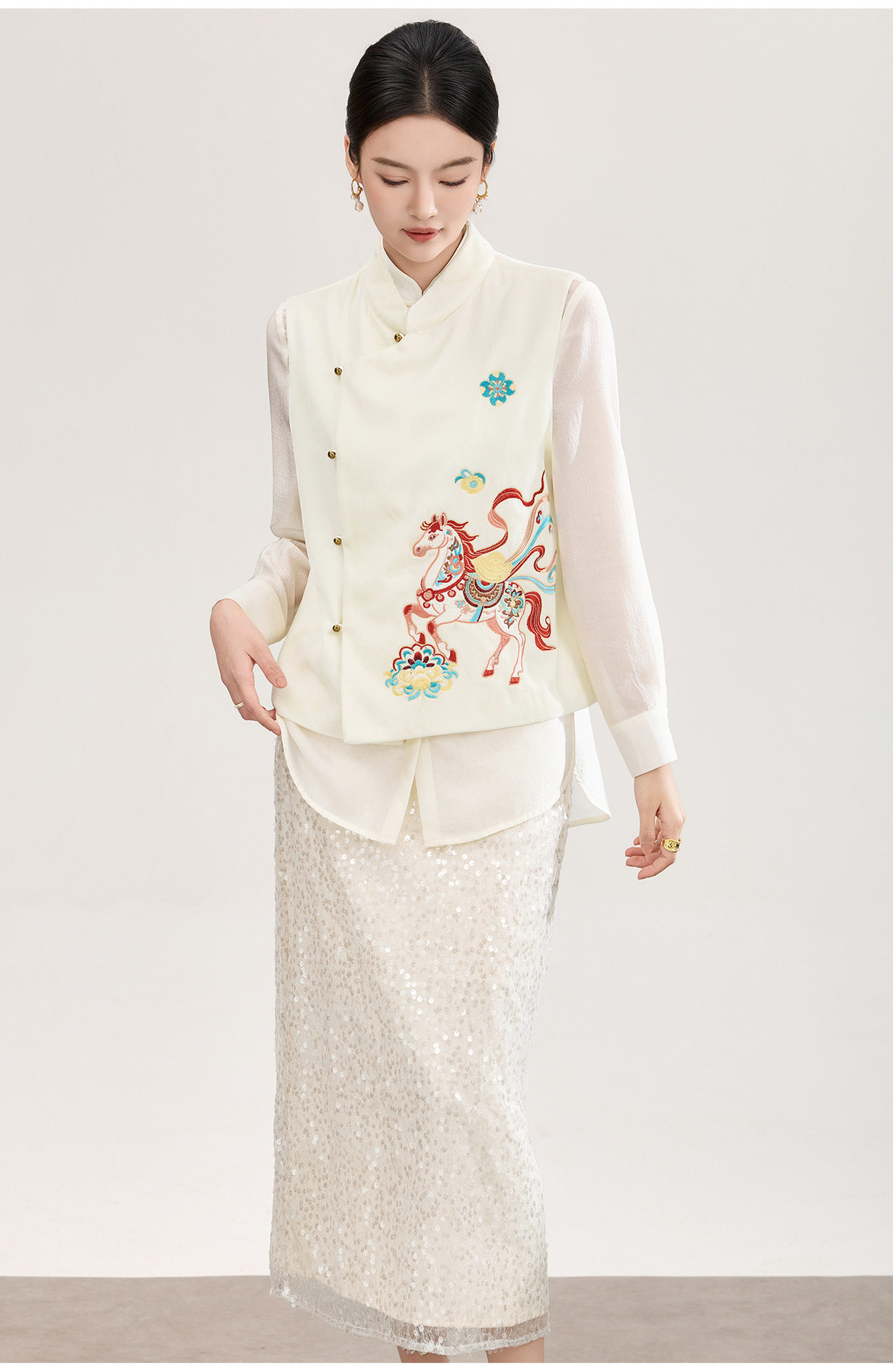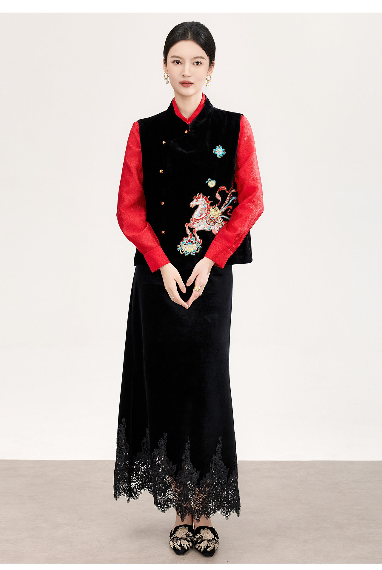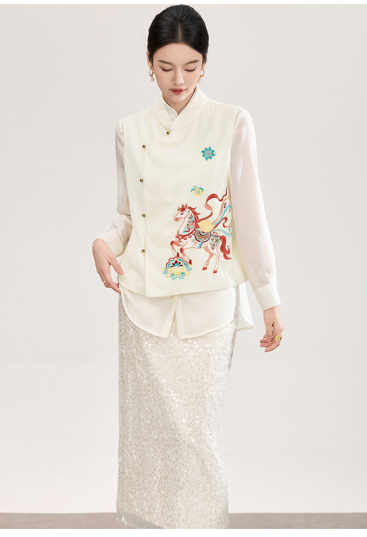 「高货wl」全新升级【铂金会员422/天猫569/差价147】(73606)洛诗琳新中式真丝丝绒马甲2026春季重工刺绣斜襟国风上衣