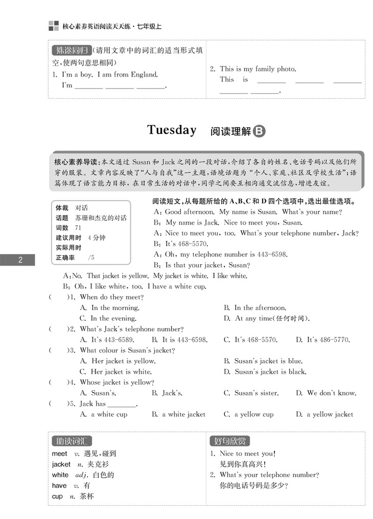 同步实际教学进度,综合不同版本教材所体现的主题语境搜集素材,适合不同地区、使用不同版本教材的所有学生课外学习和训练提升。
