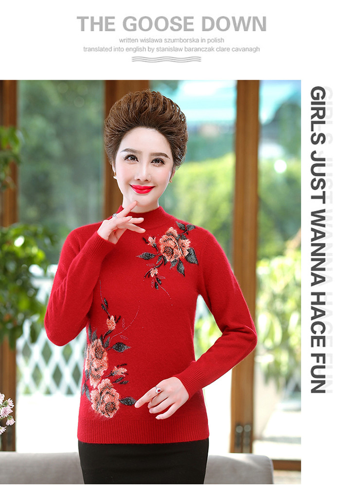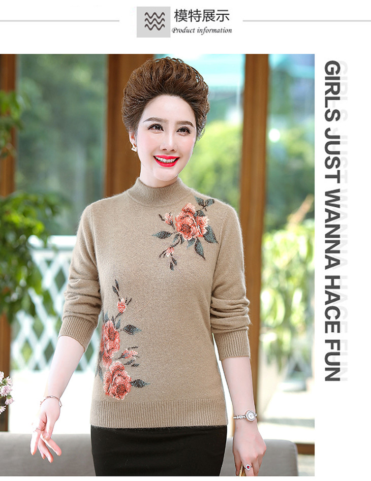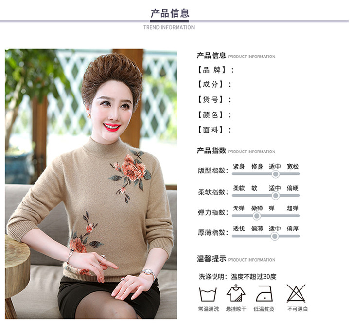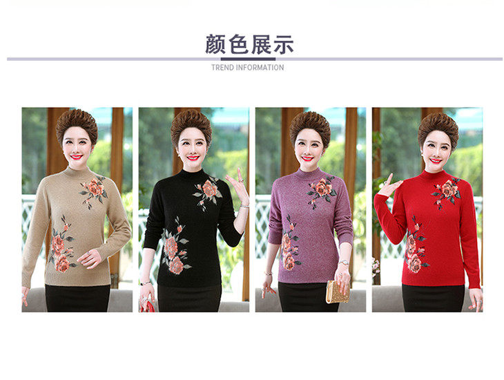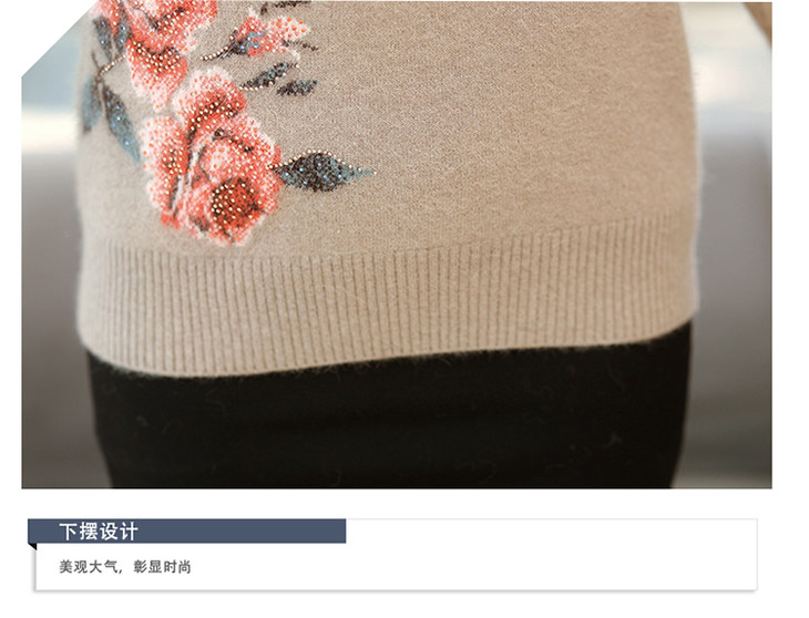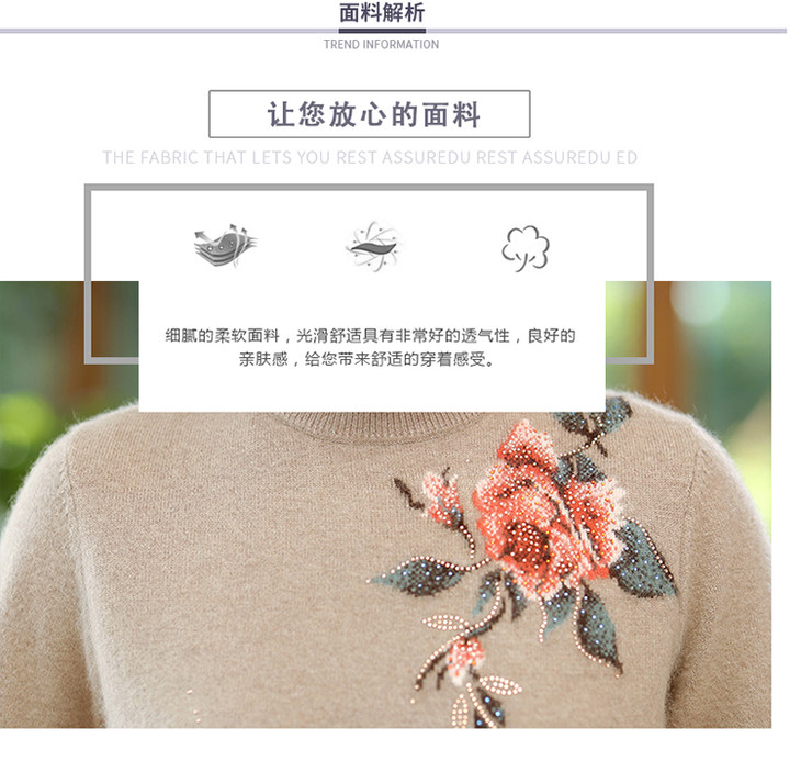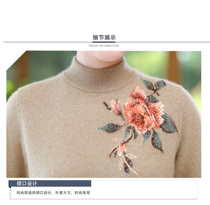 XX 13089羊绒羊毛镶钻印花半高领针织衫