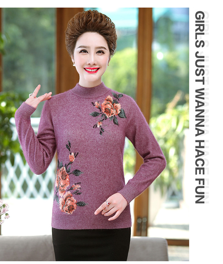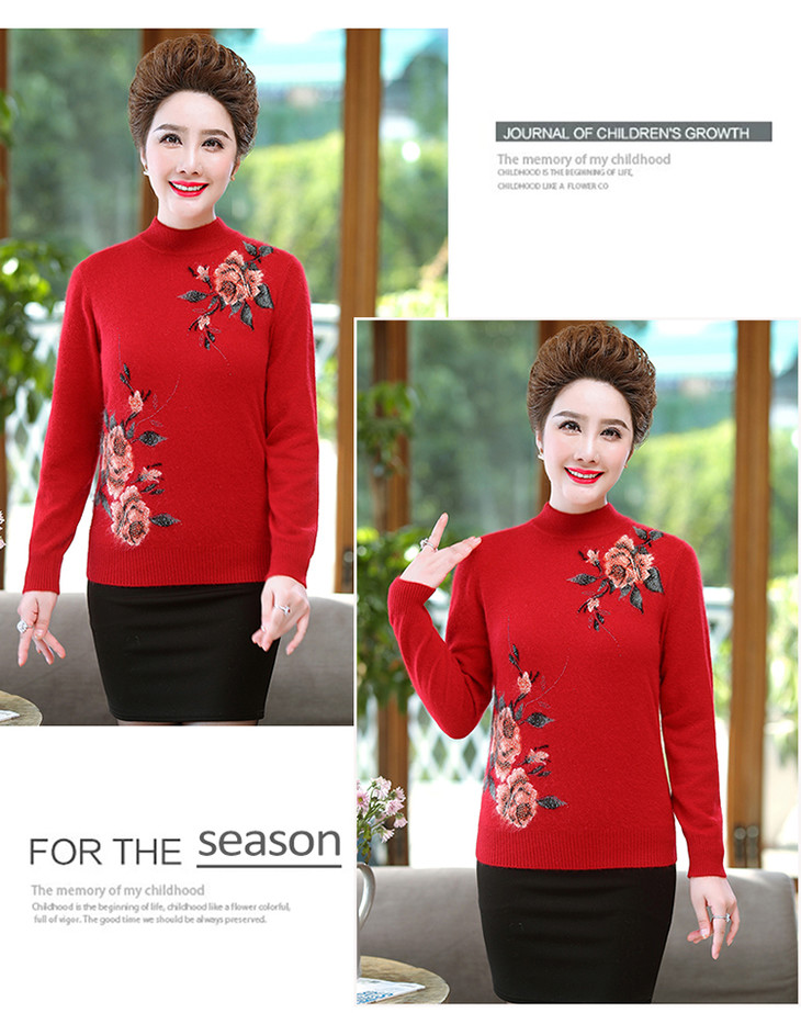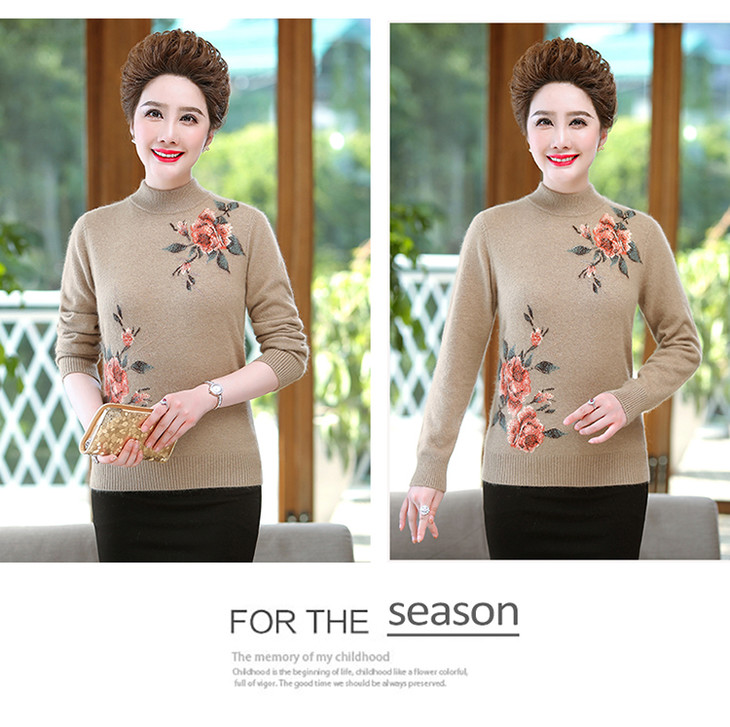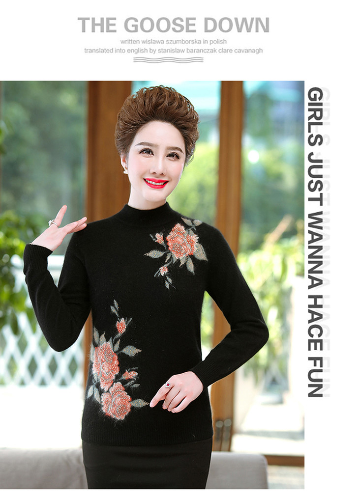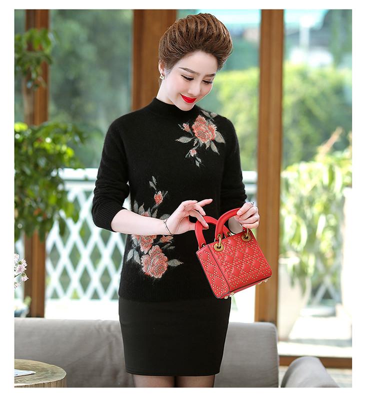 XX 13089羊绒羊毛镶钻印花半高领针织衫
