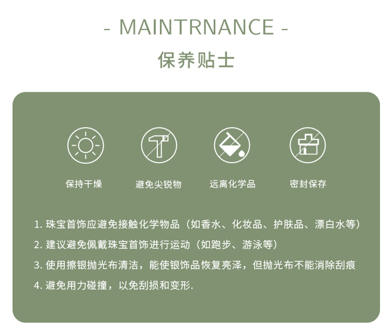 ①如果平时不佩戴的话,可以存放我们赠送的饰品盒中;