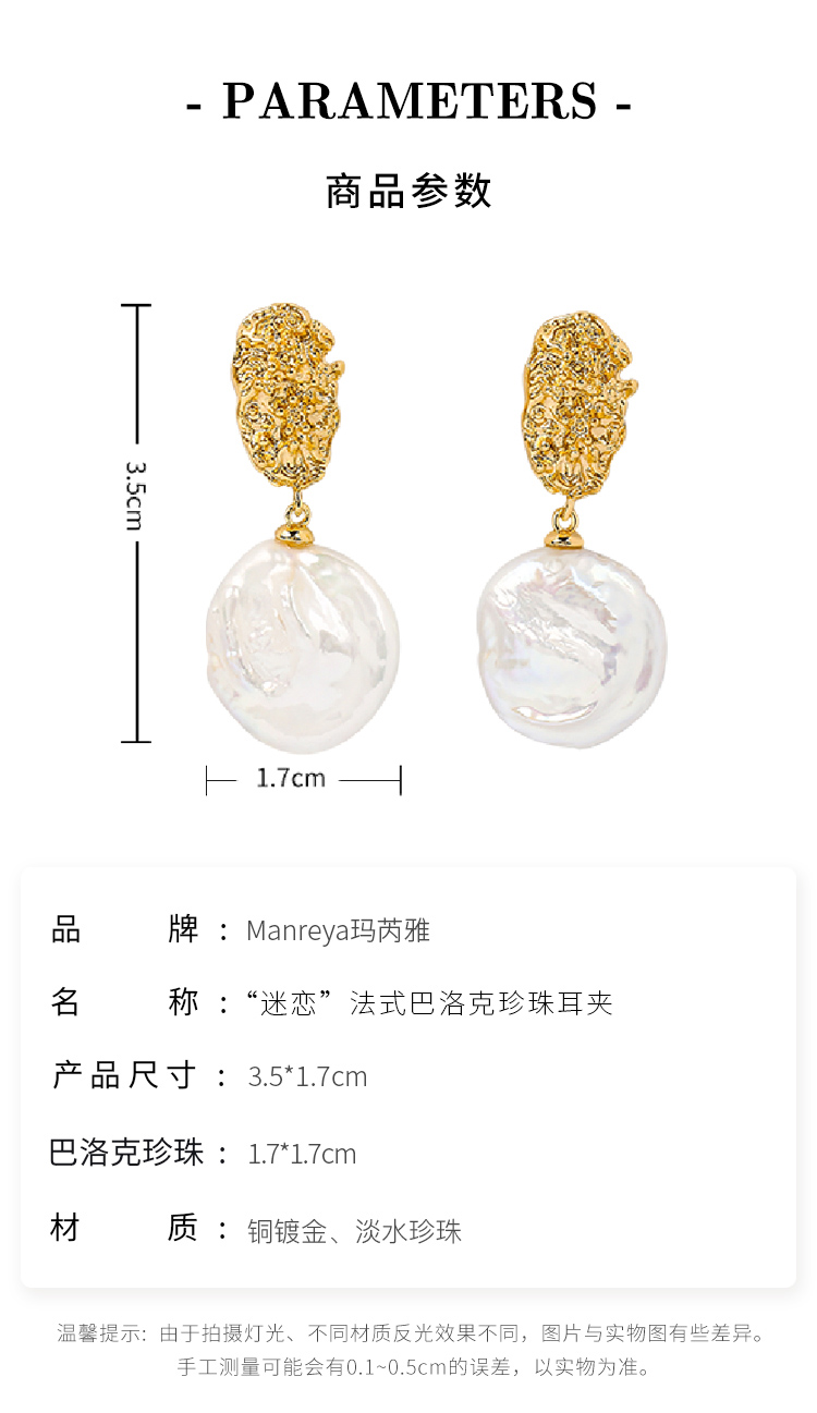 ②淡水珍珠,由于天然生物的过程,会存在形状不规则、珍珠坑,生长斑等情况,不属于质量售后范围。