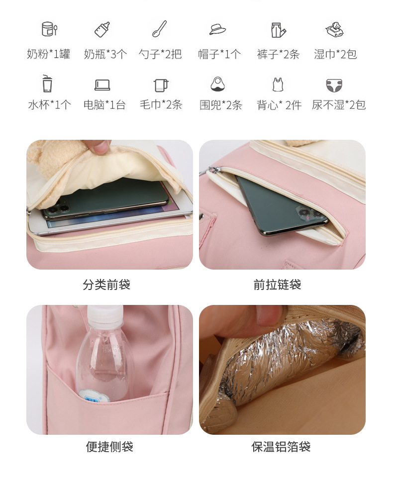 【多功能妈咪包!一包搞定】妈咪包百搭双肩包大容量,母婴外出便捷背包收纳包宝妈旅行,轻便易携带 可背可提,实用高颜值 满足多日出行所需-QQ