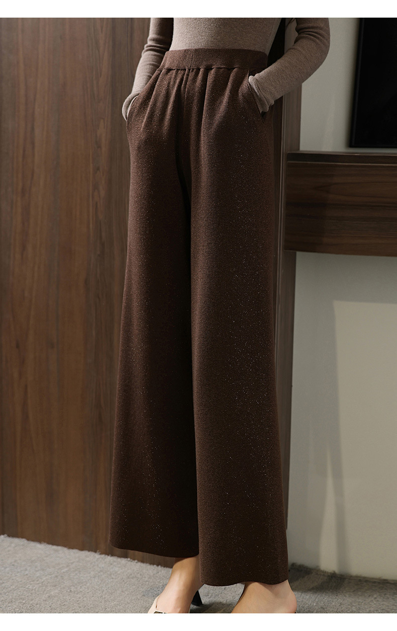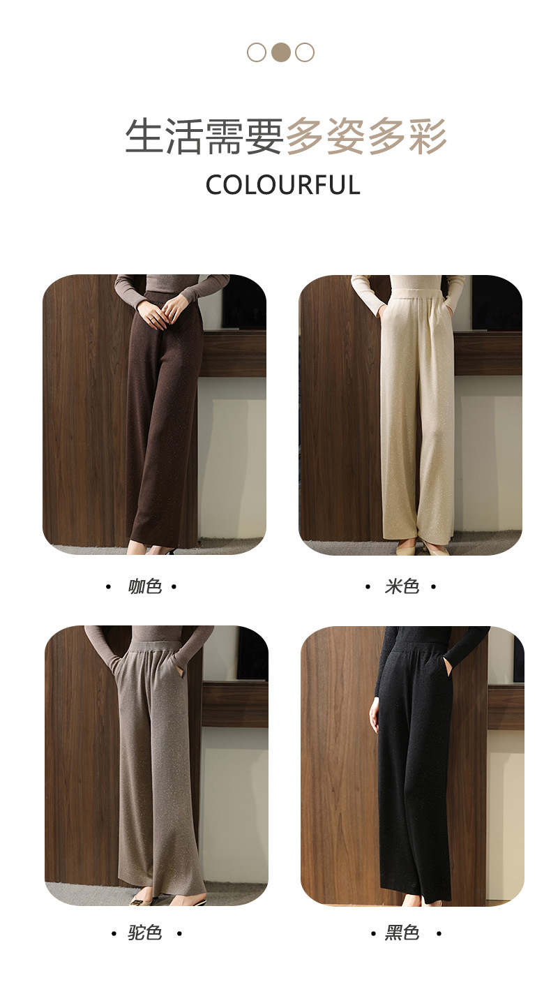 丁摩 绵羊毛女宽松高腰阔腿裤休闲直筒裤