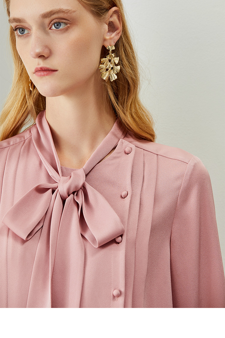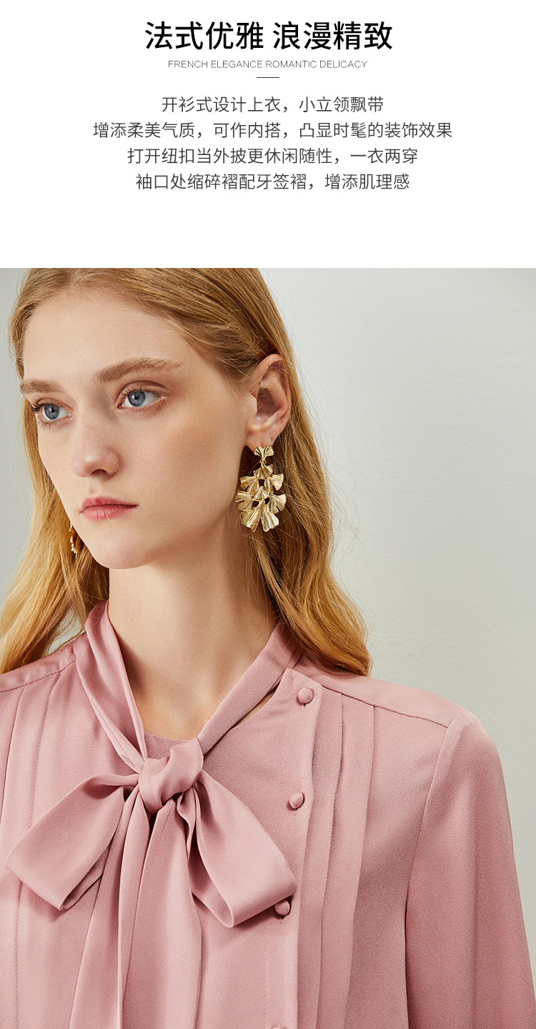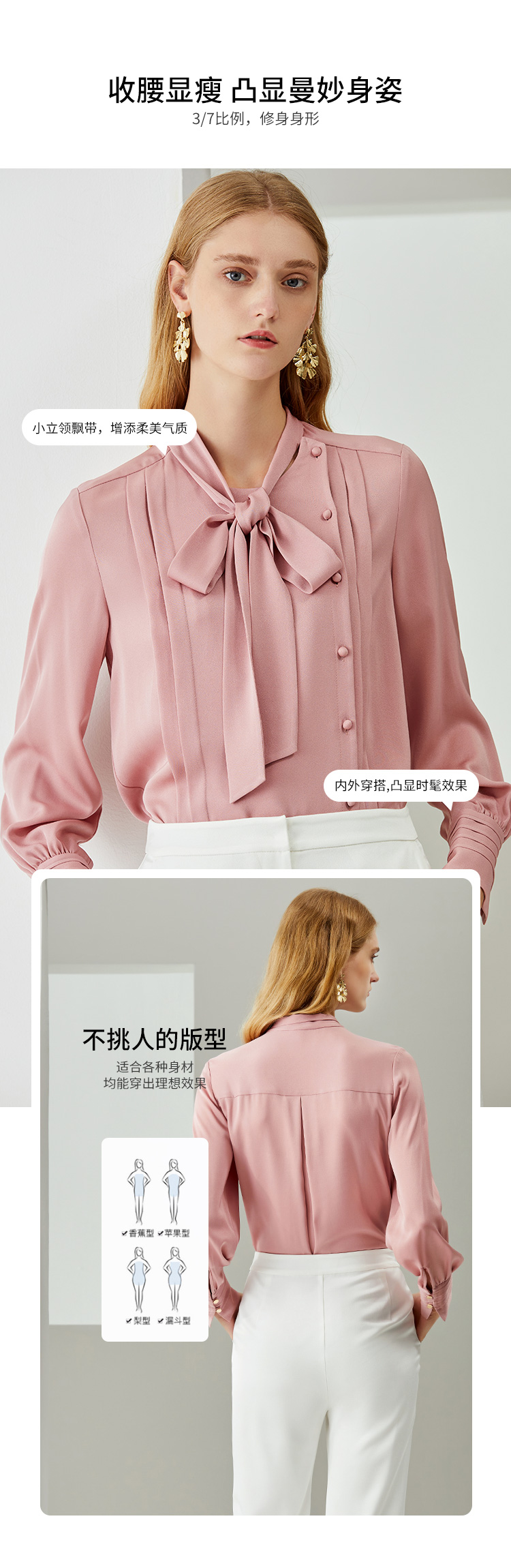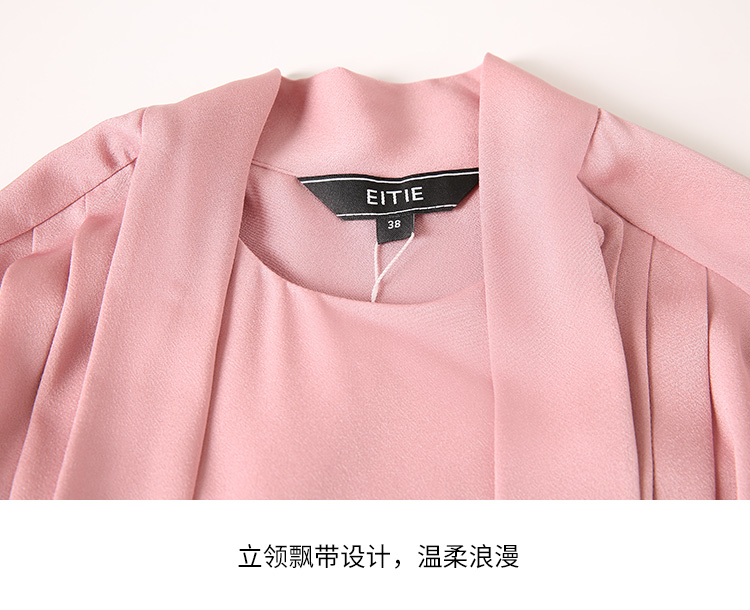EITIE爱特爱秋款飘带修身显瘦纯色上衣雪纺衫女6709411