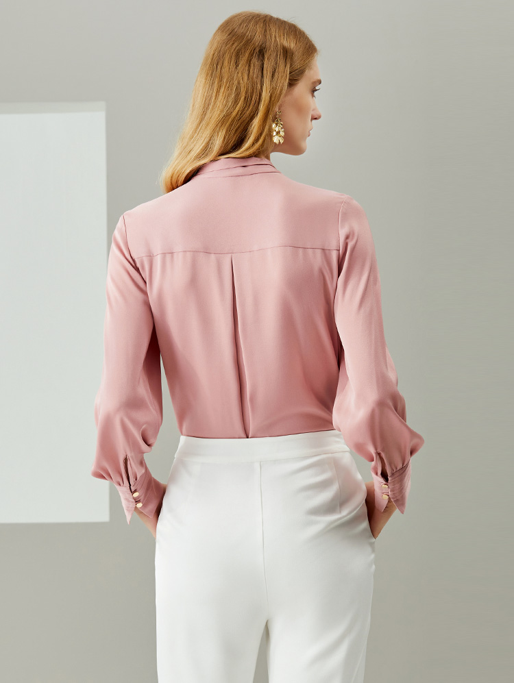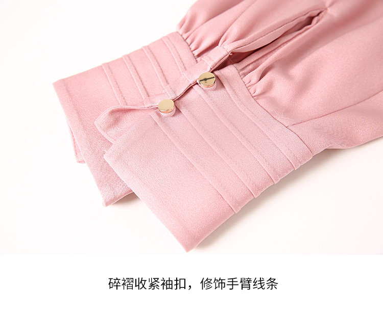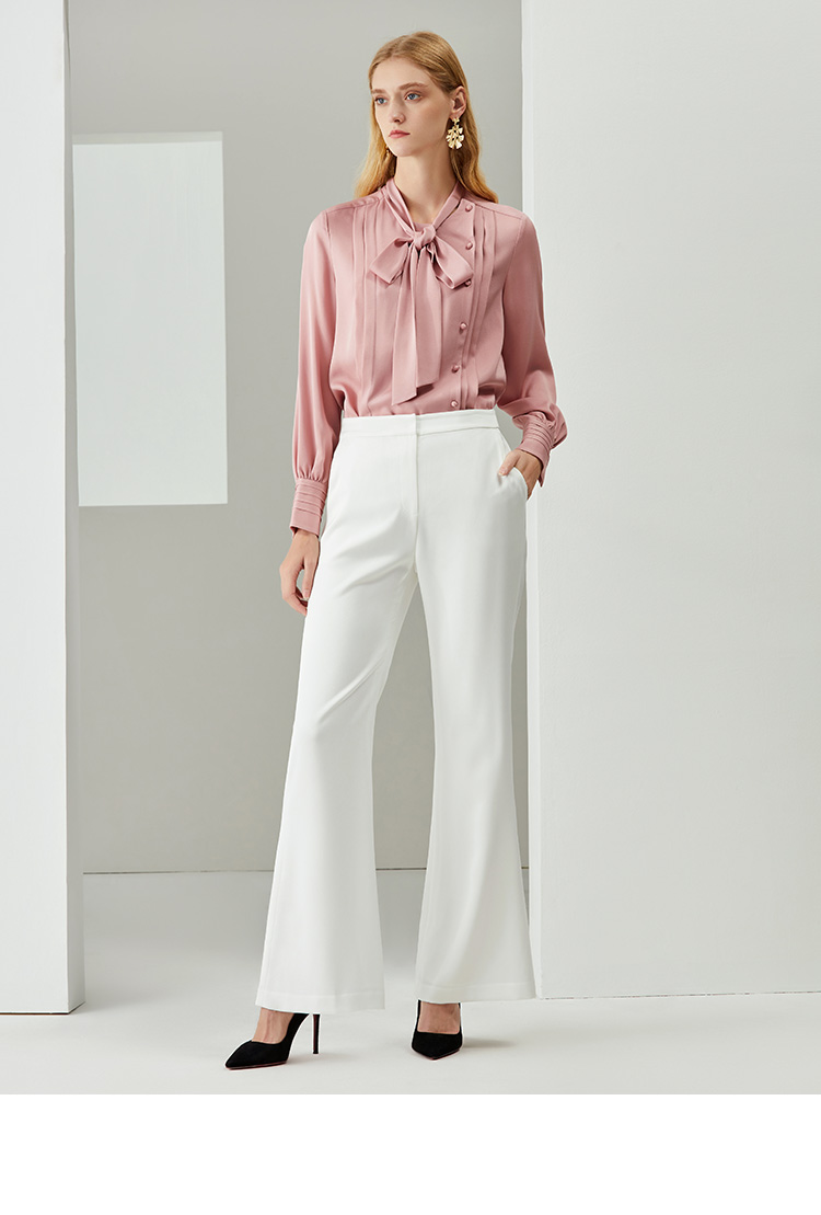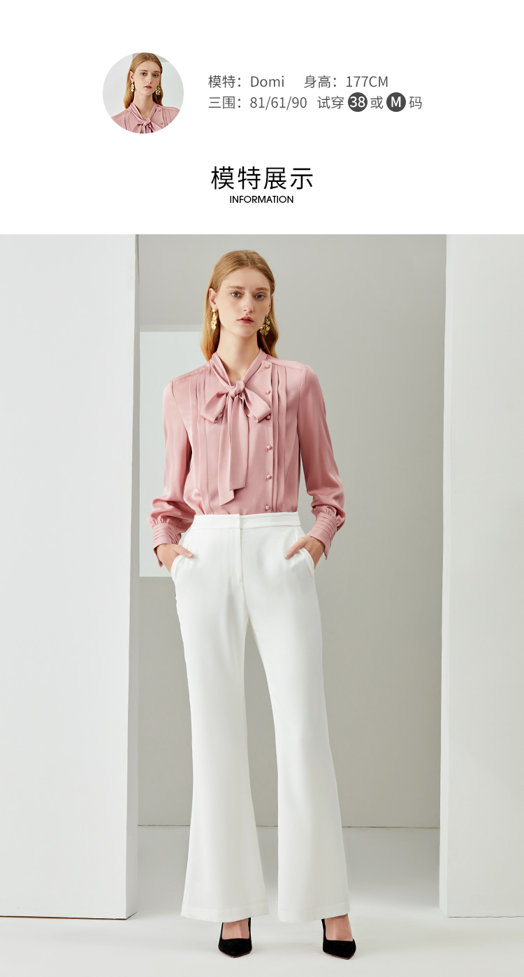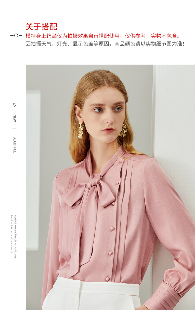 EITIE爱特爱秋款飘带修身显瘦纯色上衣雪纺衫女6709411
